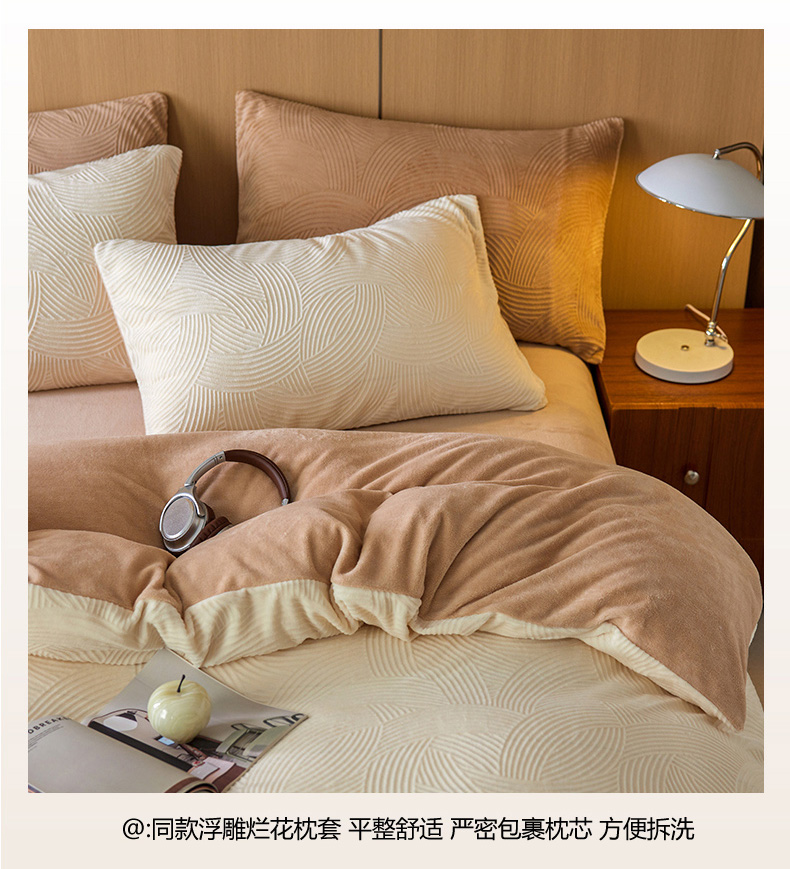 当前位置: 91家纺网 > 商品网购 > 床品套件 > 四件套 > 牛奶绒四件套 > 眠博士 2025新款浮雕款烂花牛奶绒加厚保暖莱伊和赛纳四件套 浮雕款-莱伊奶白+咖