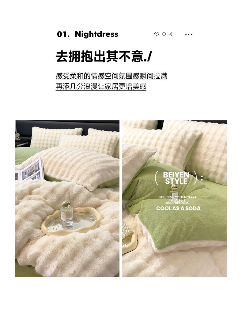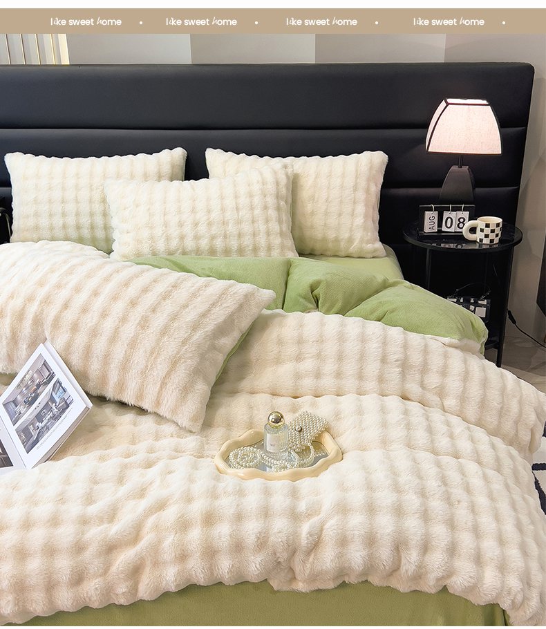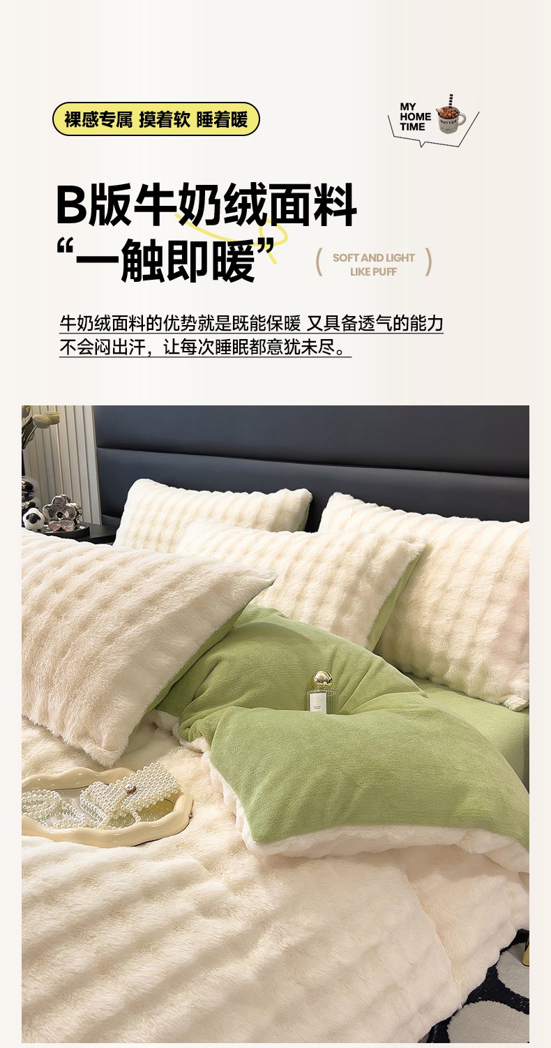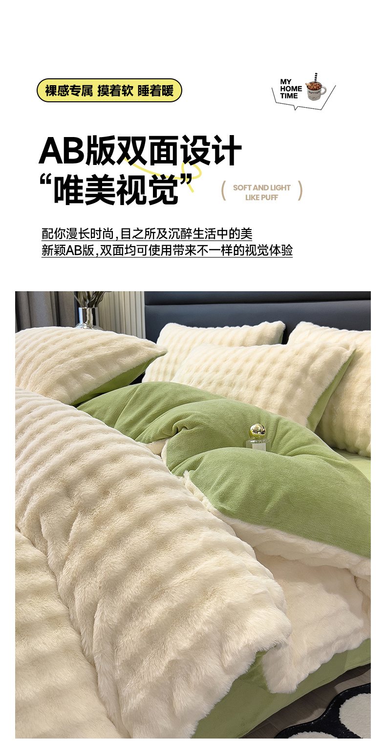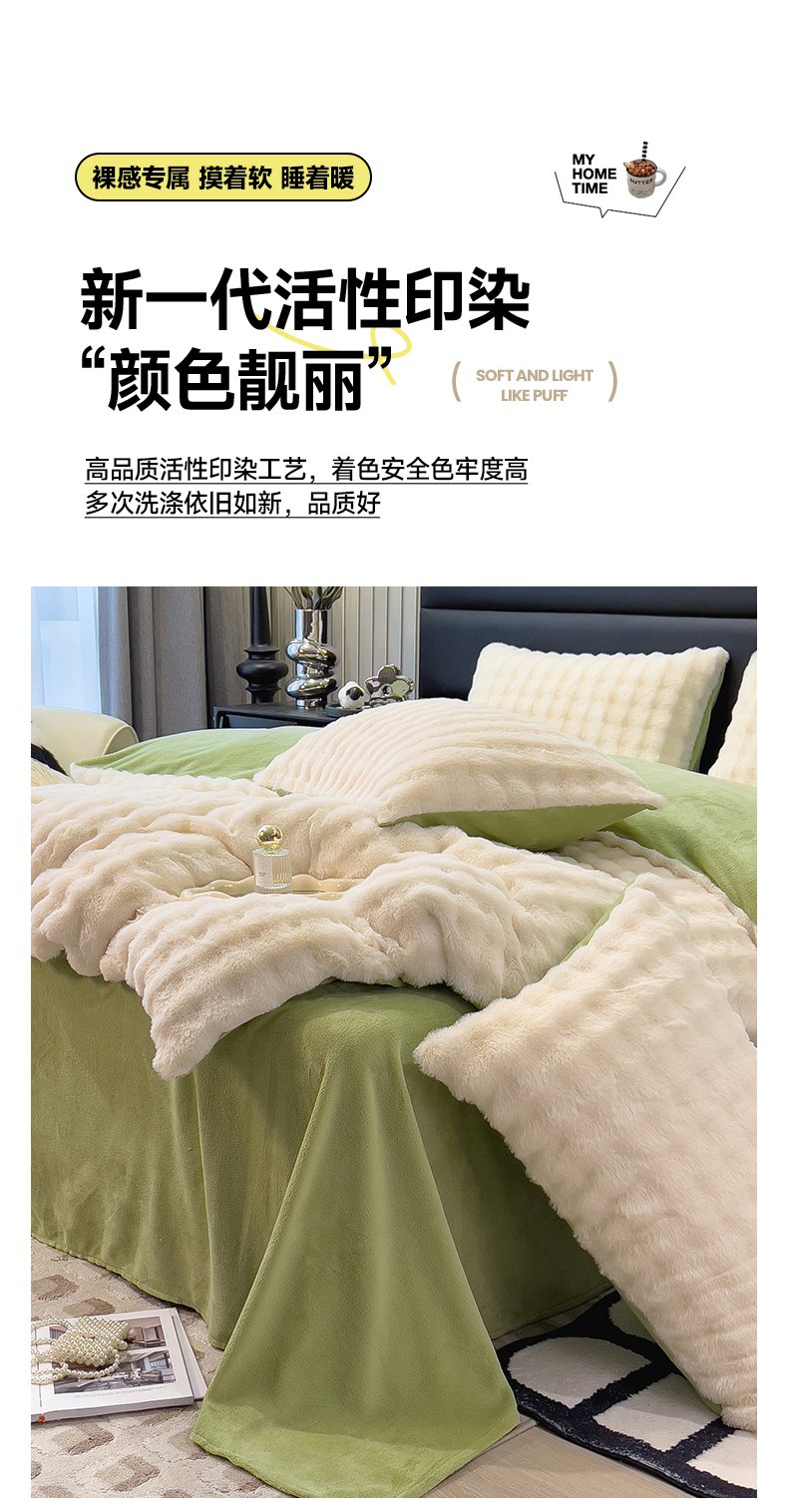 (总)摩妮卡 2025新款加厚大泡泡兔毛牛奶绒四件套,暖白+暗苔绿,暗苔绿,伽罗咖,槿紫,暖白+伽罗咖,韶粉