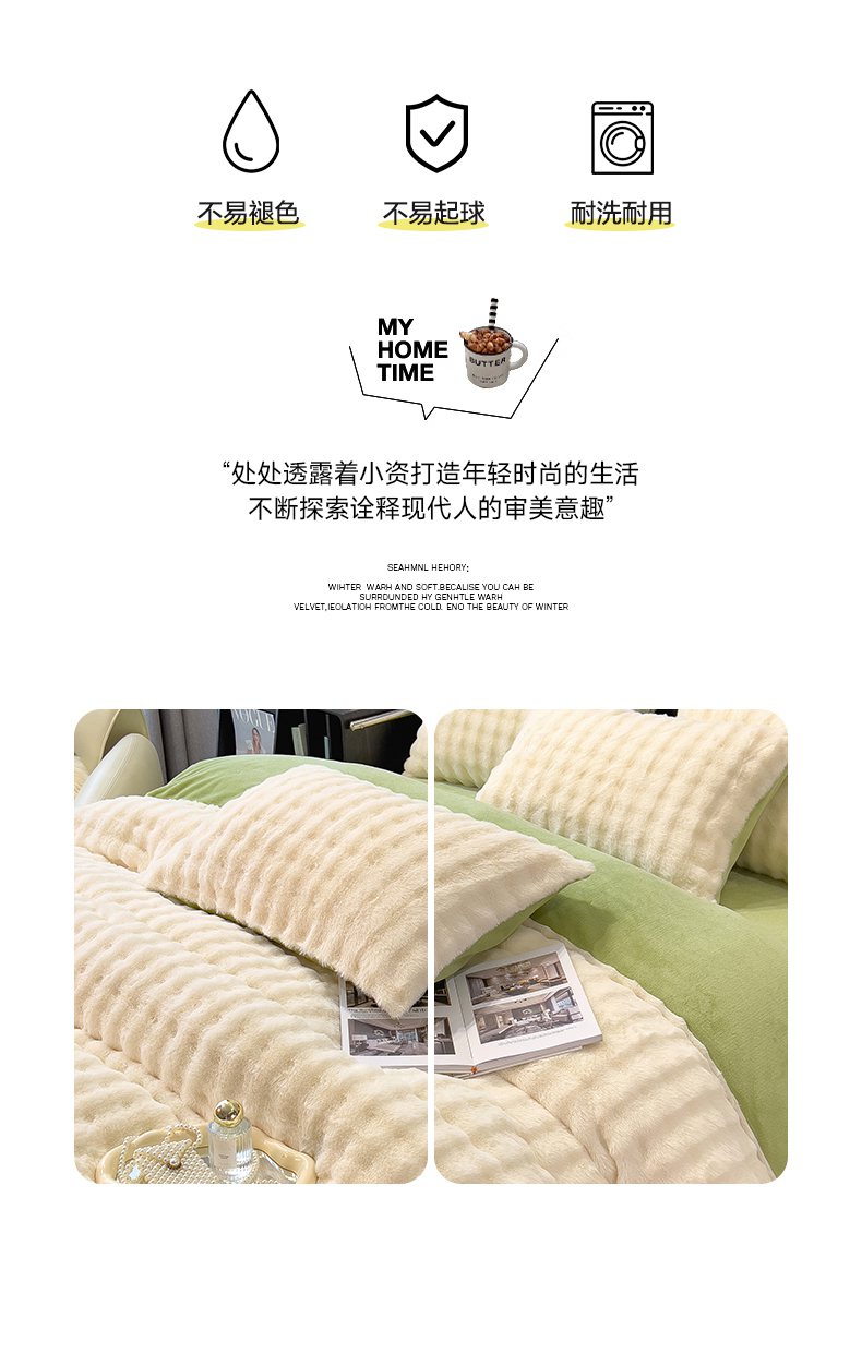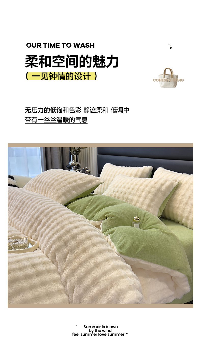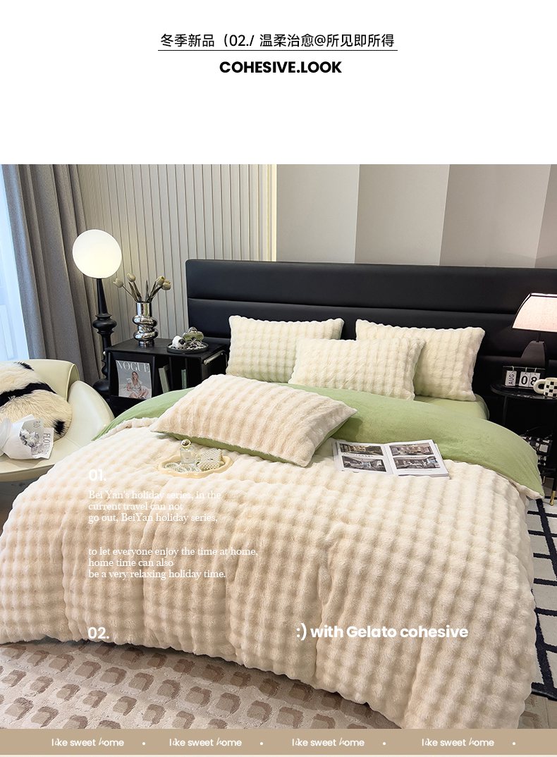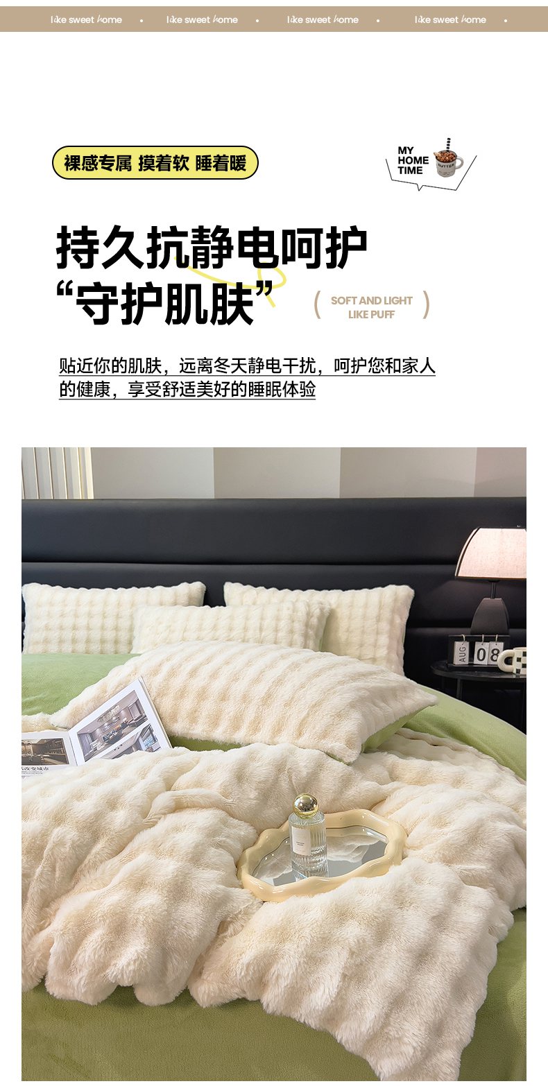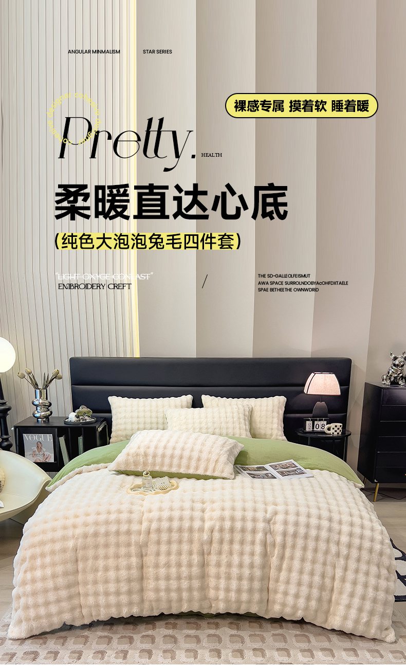(总)摩妮卡 2025新款加厚大泡泡兔毛牛奶绒四件套,暖白+暗苔绿,暗苔绿,伽罗咖,槿紫,暖白+伽罗咖,韶粉