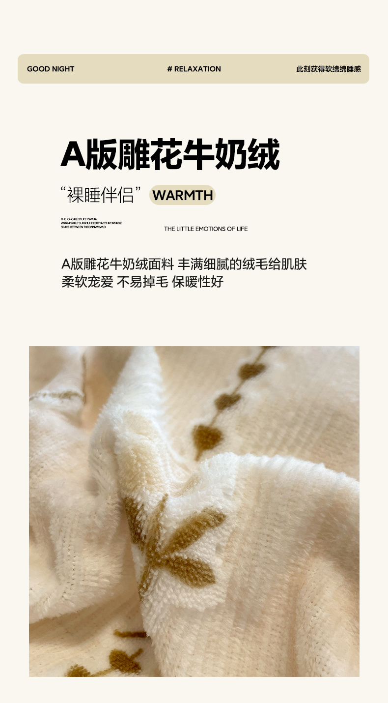 商品名称:利欧 2025新款褶皱边雕花牛奶绒四件套 玫影-橙