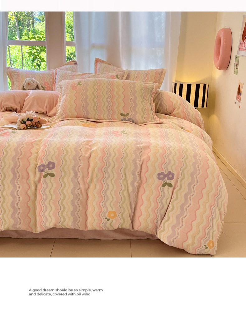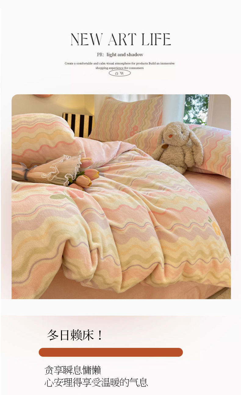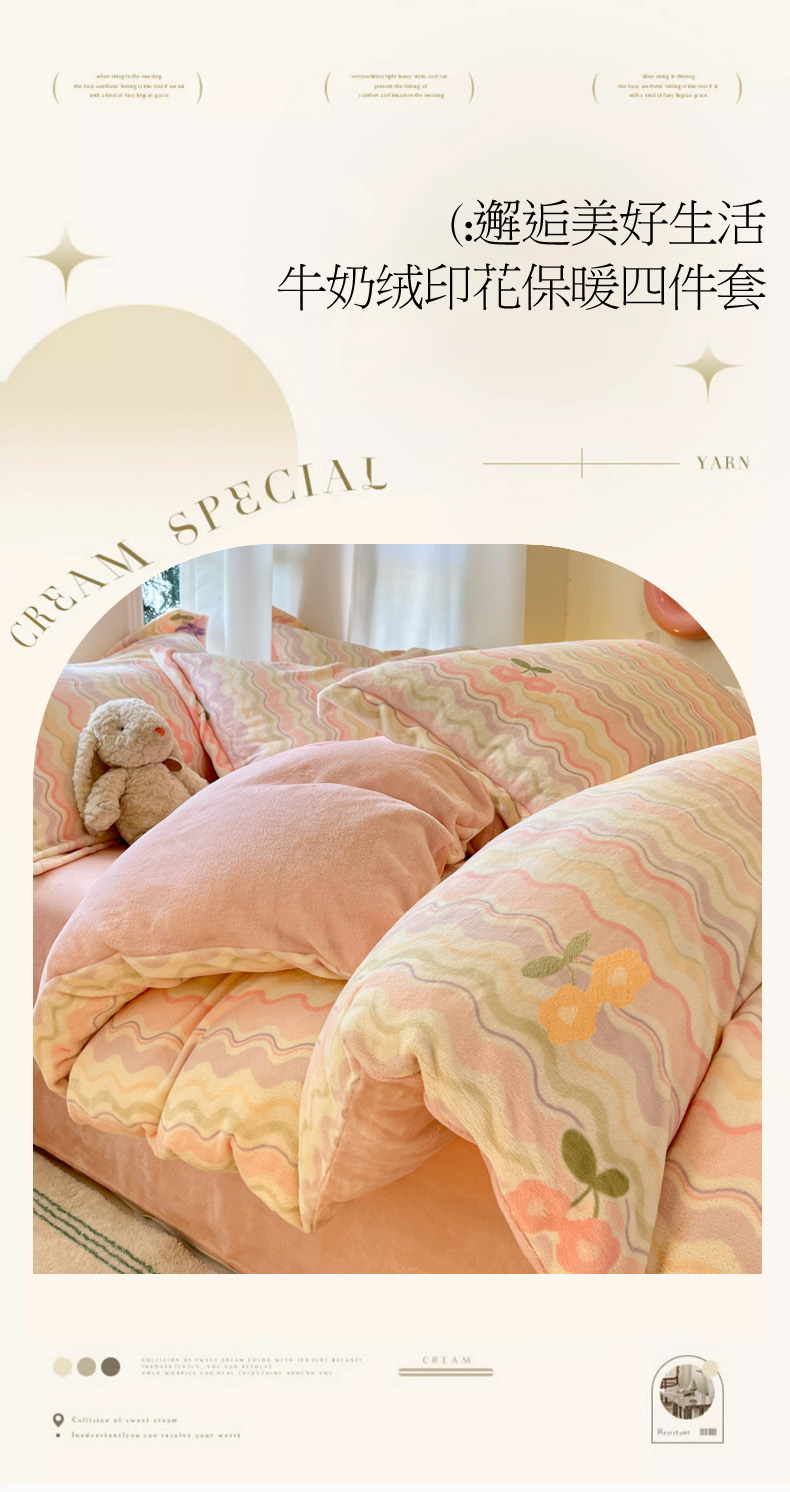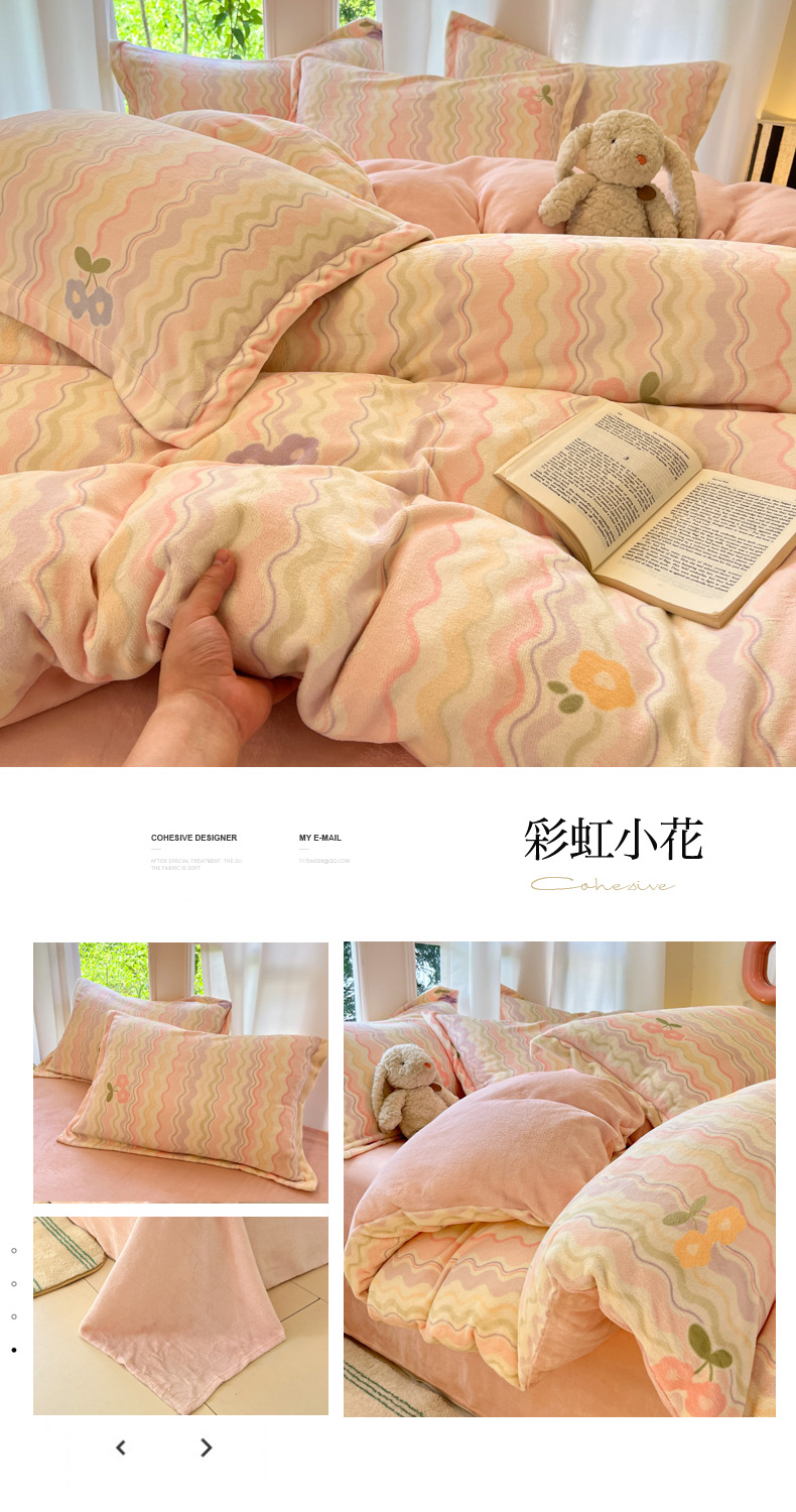当前位置: 91家纺网 > 商品网购 > 床品套件 > 四件套 > 牛奶绒四件套 > 柒月家居 2025新款加厚200克牛奶绒四件套 彩虹小花