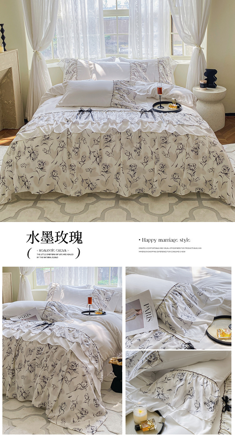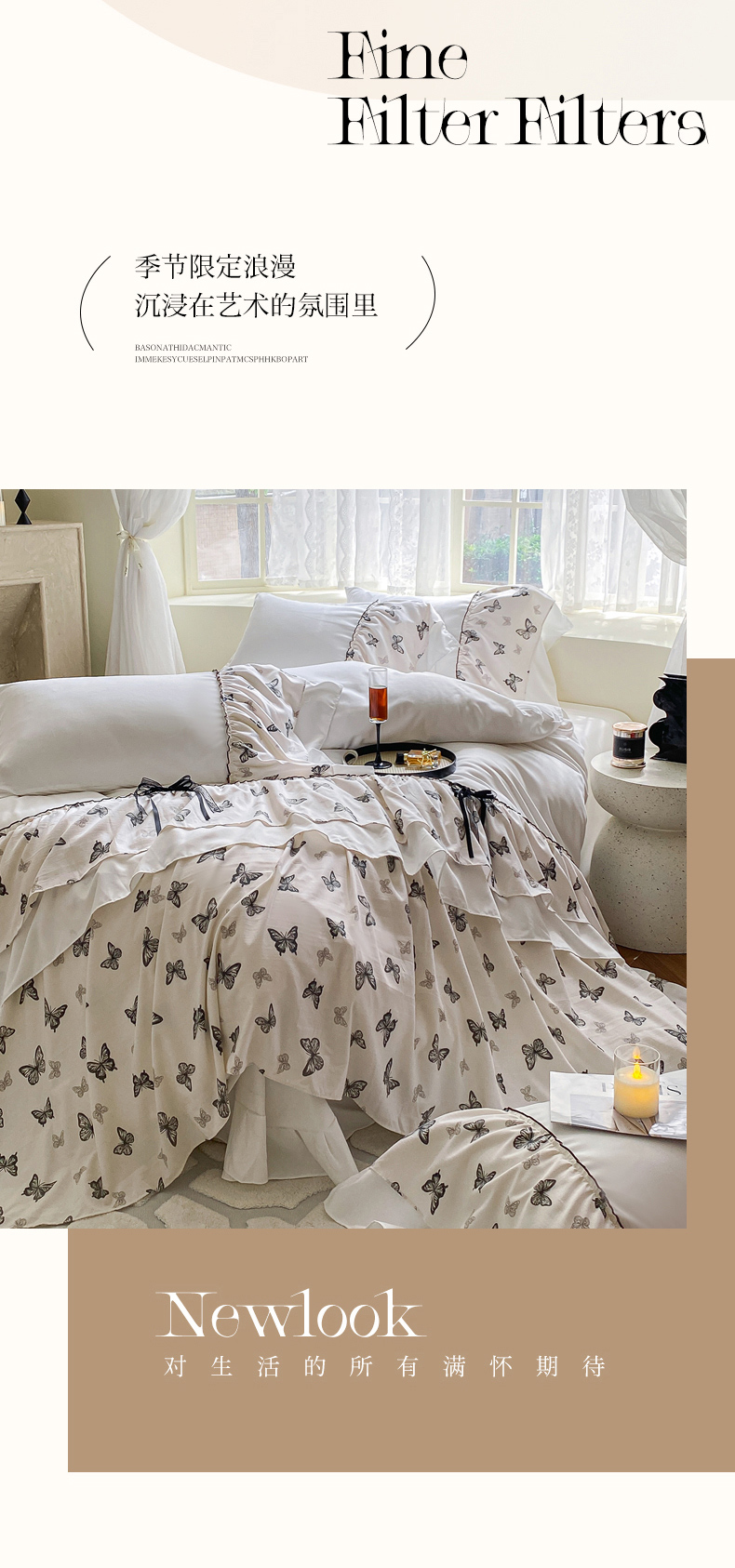 (总)庭笙 2025新款法式复古公主风花边四件套,复古樱桃,翩翩蝶舞,水墨玫瑰