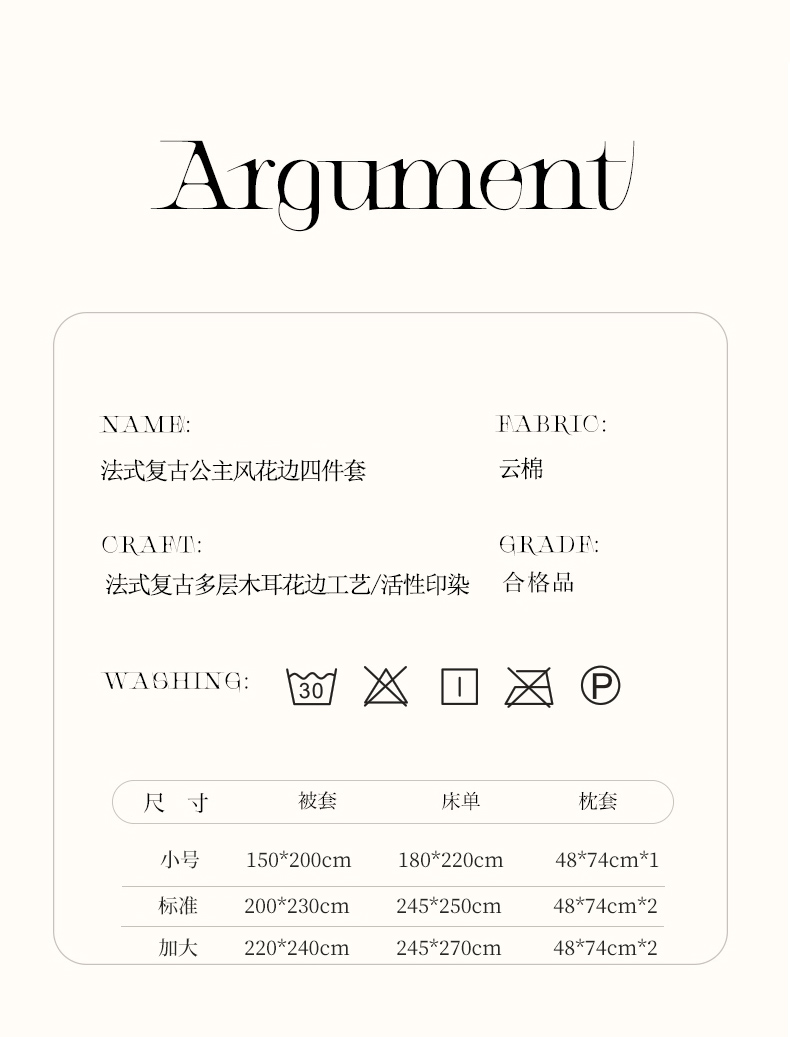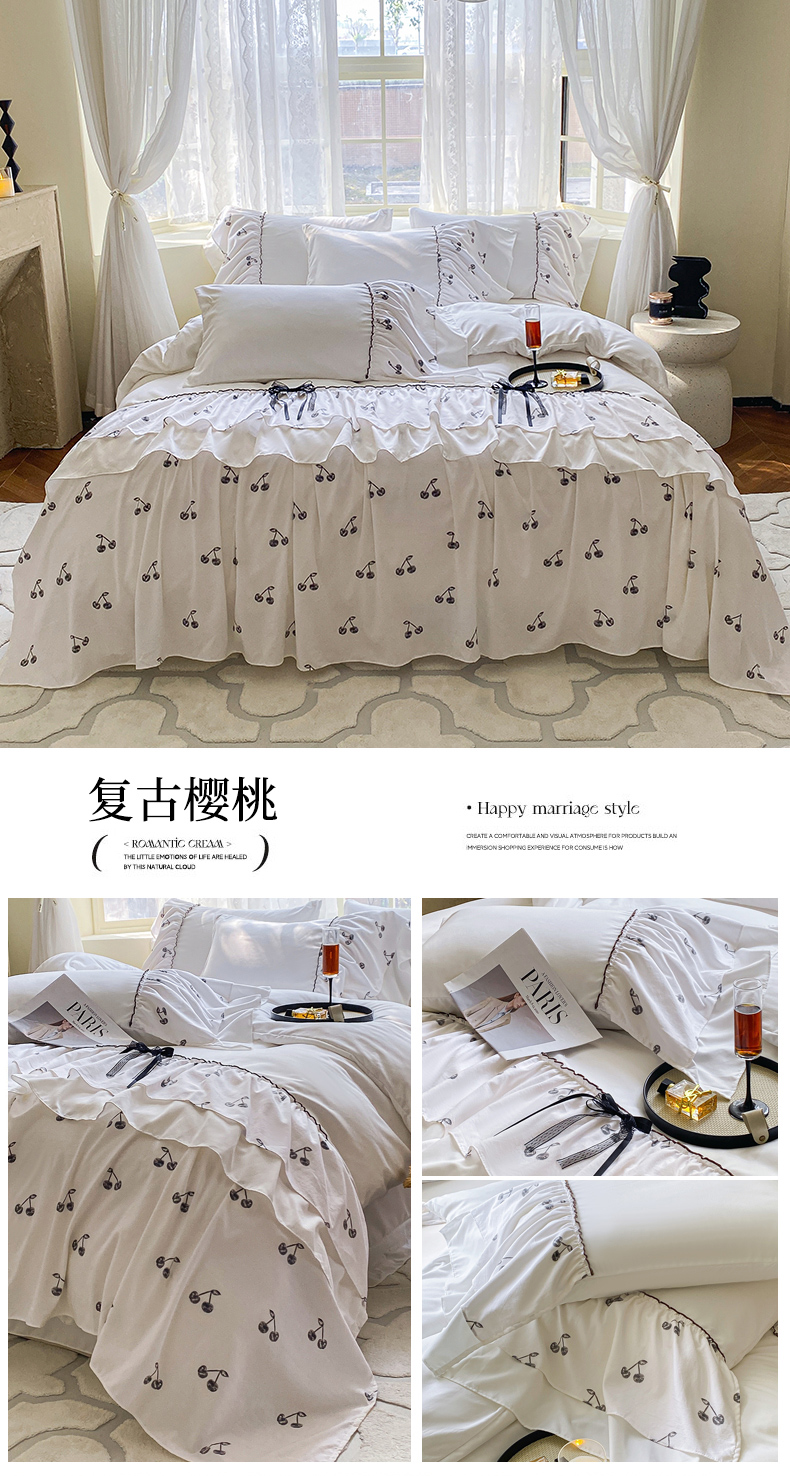 商品名称:庭笙 2025新款法式复古公主风花边四件套 复古樱桃
