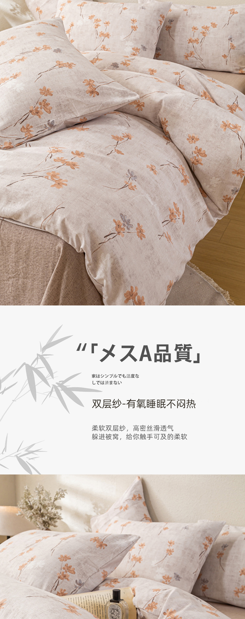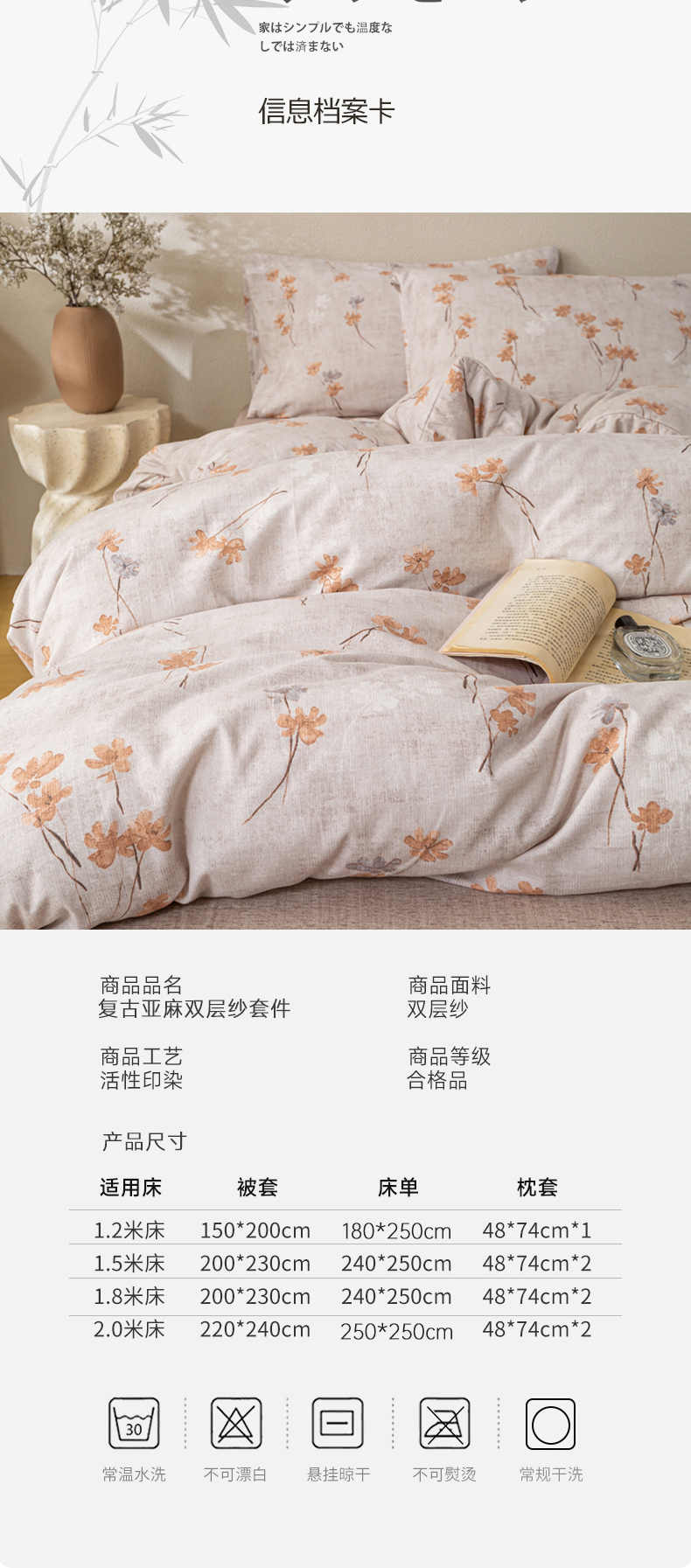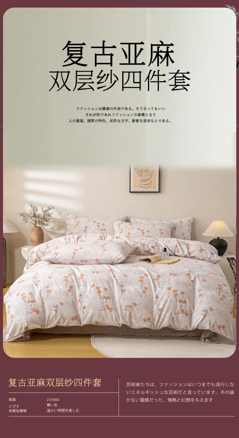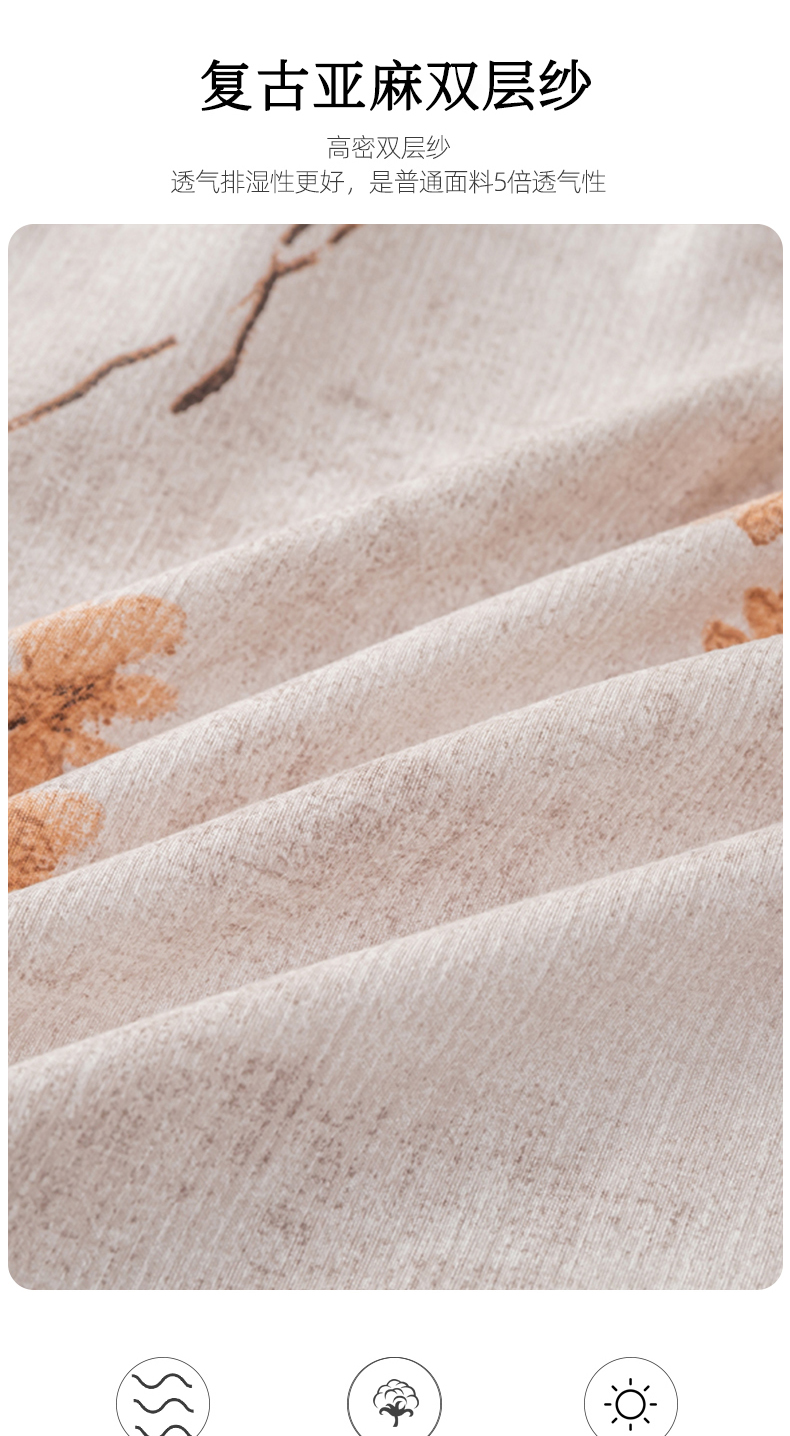 商品名称:漫仙阁家纺 2025新款加厚高克重原麻复古风印花四件套 金枝玉叶