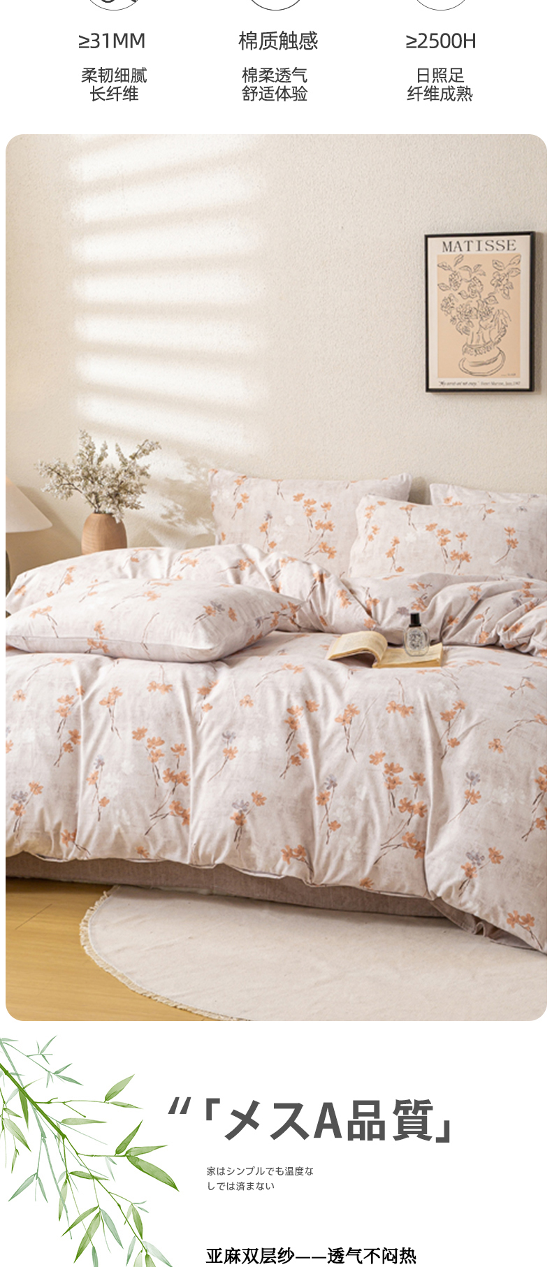 (总)漫仙阁家纺 2025新款加厚高克重原麻复古风印花四件套,布袋子,粉黛,花蕾-咖,花蕾-绿,金枝玉叶,锦簇,盛夏,素锦,向阳花开,一抹香,绽放