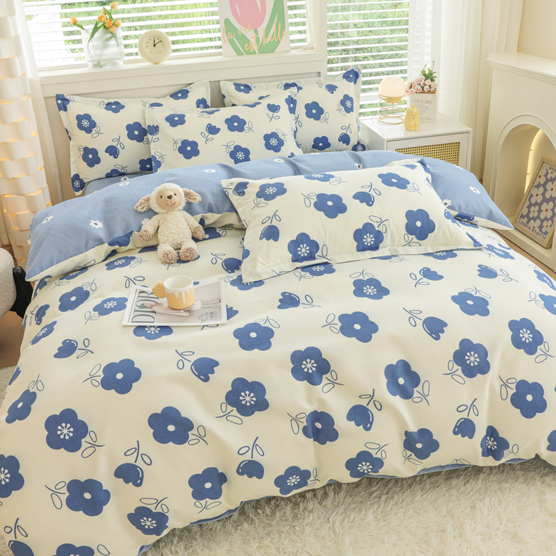 当前位置: 91家纺网 > 商品网购 > 床品套件 > 四件套 > 其它四件套 > 优纤家纺 2025新款120克磨毛斜纹卡通花卉印花植物羊绒四件套 春风恋情