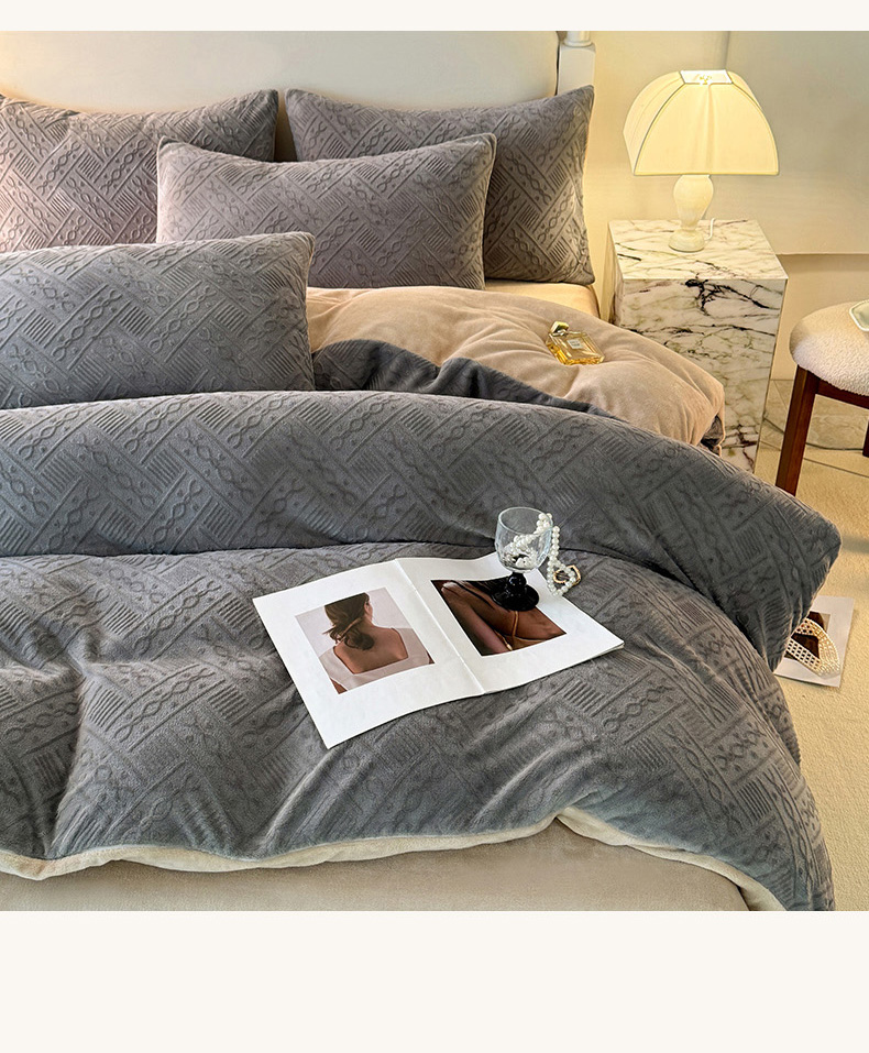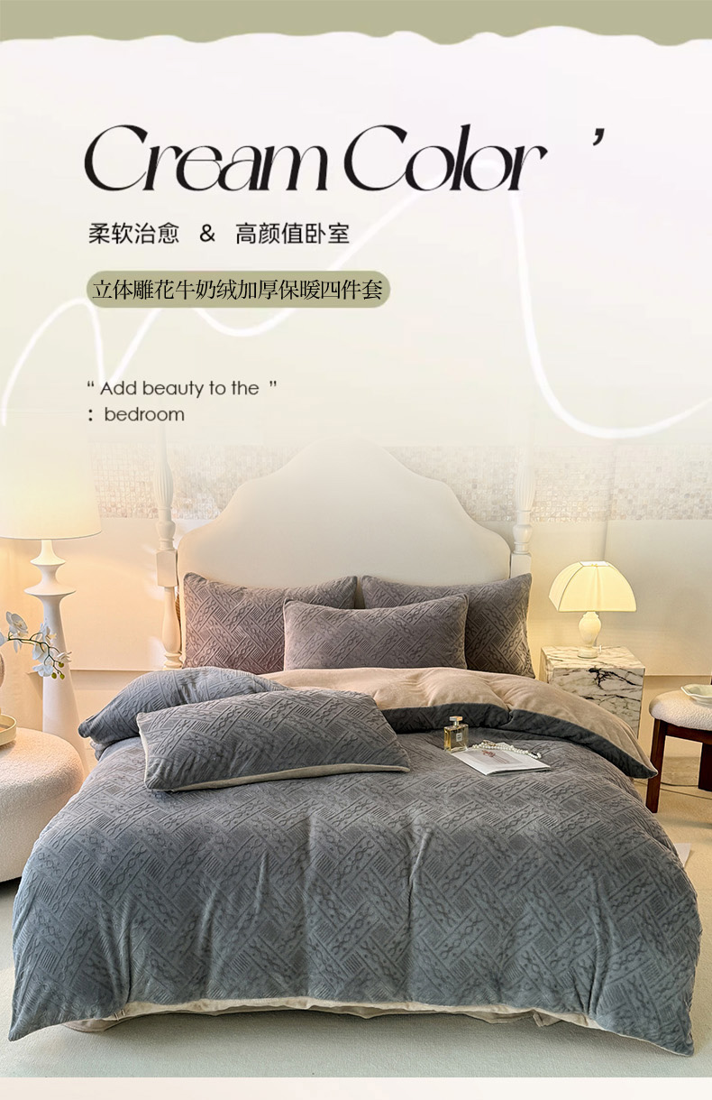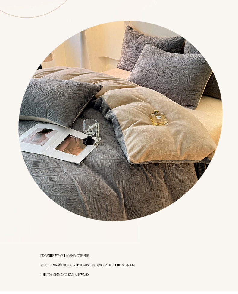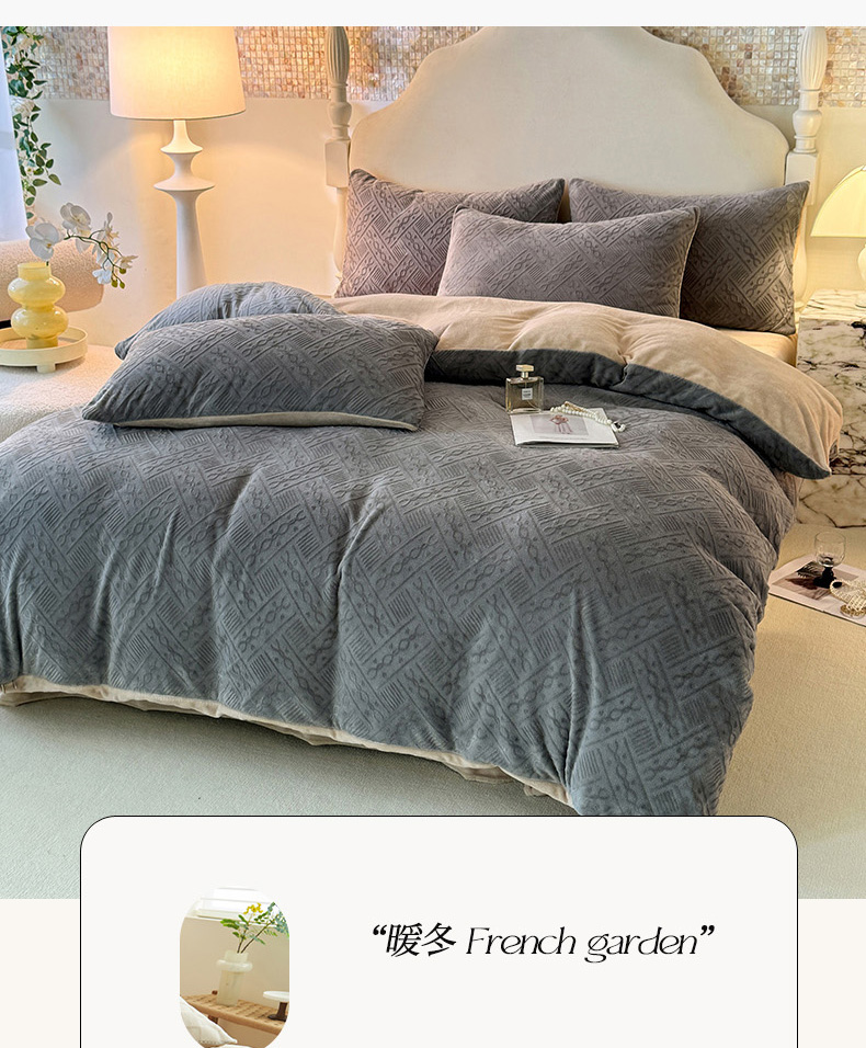 当前位置: 91家纺网 > 商品网购 > 床品套件 > 四件套 > 牛奶绒四件套 > 眠博士 2025新款立体雕花牛奶绒加厚保暖四件套-安吉拉-芙蔓-赛琳 浮雕绒-安吉拉灰咖