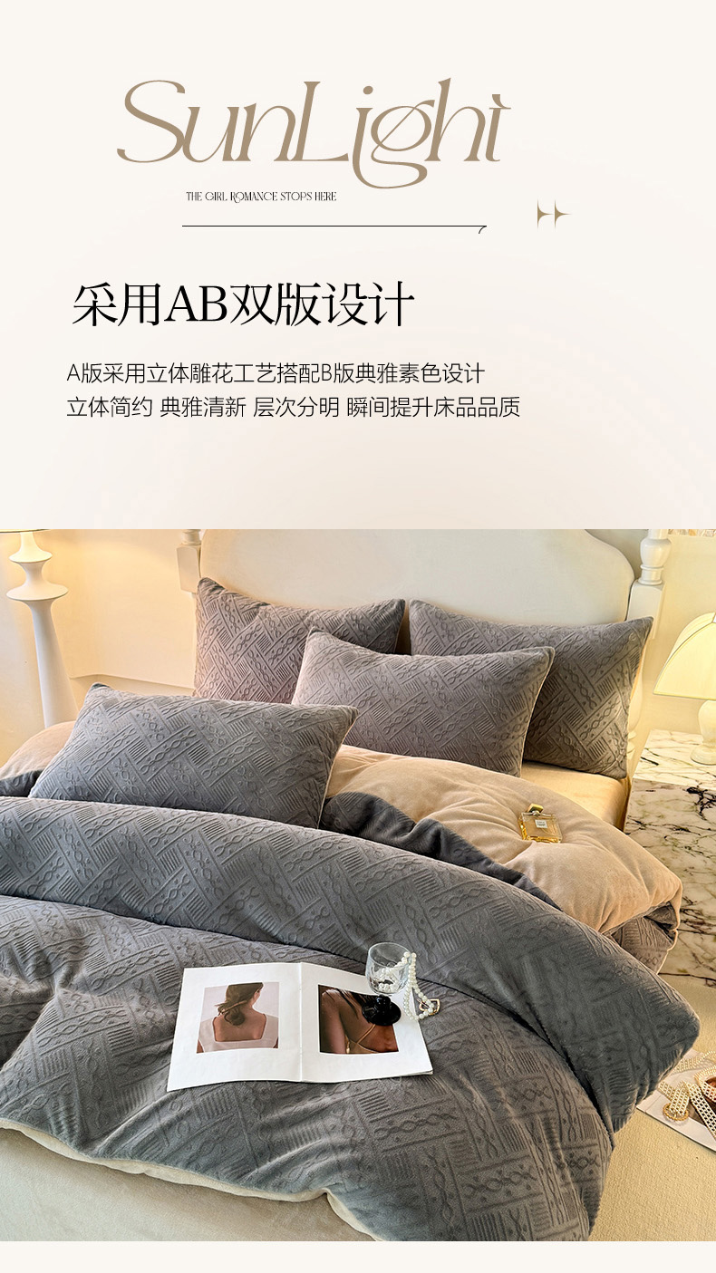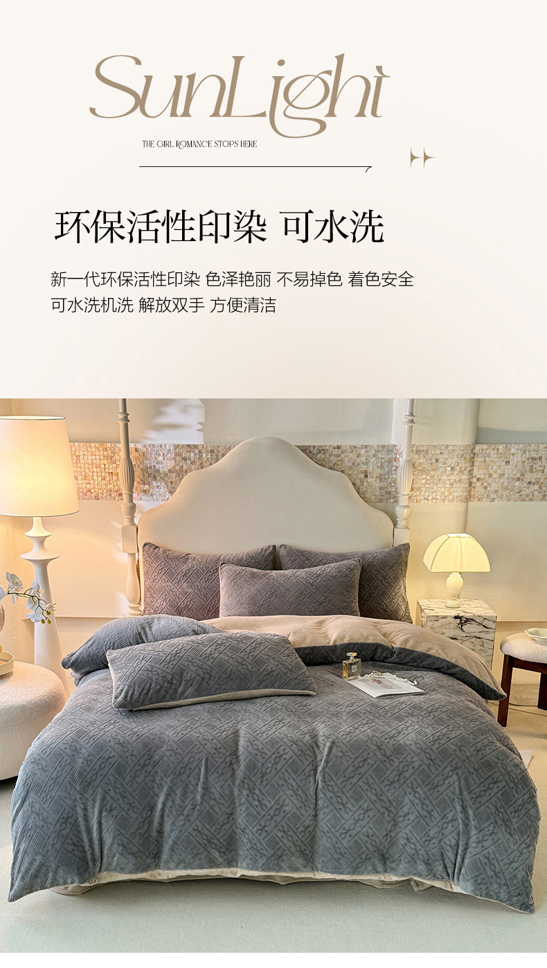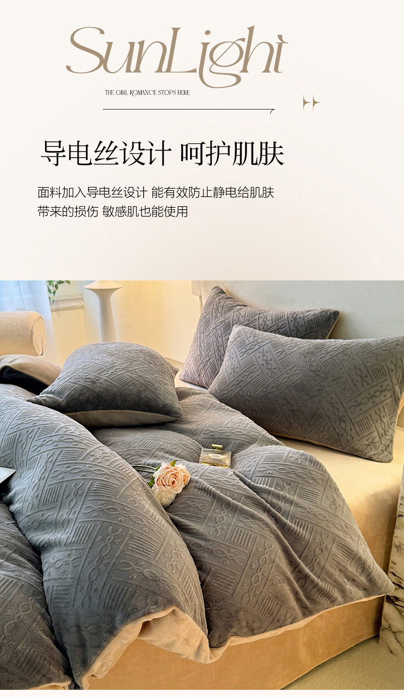 当前位置: 91家纺网 > 商品网购 > 床品套件 > 四件套 > 牛奶绒四件套 > 眠博士 2025新款立体雕花牛奶绒加厚保暖四件套-安吉拉-芙蔓-赛琳 浮雕绒-安吉拉灰咖