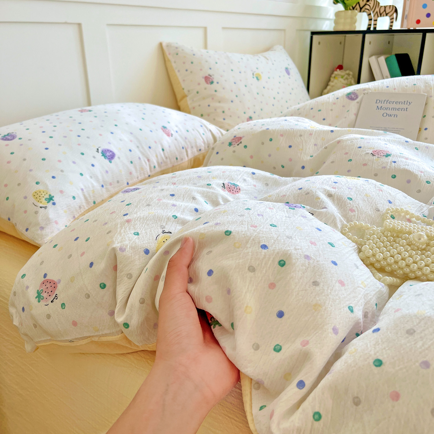 当前位置: 91家纺网 > 商品网购 > 床品套件 > 四件套 > 双层纱四件套 > 王朝国际 2025新款爆款云感亚麻有氧双层纱皱皱双层纱四件套 芝士莓莓