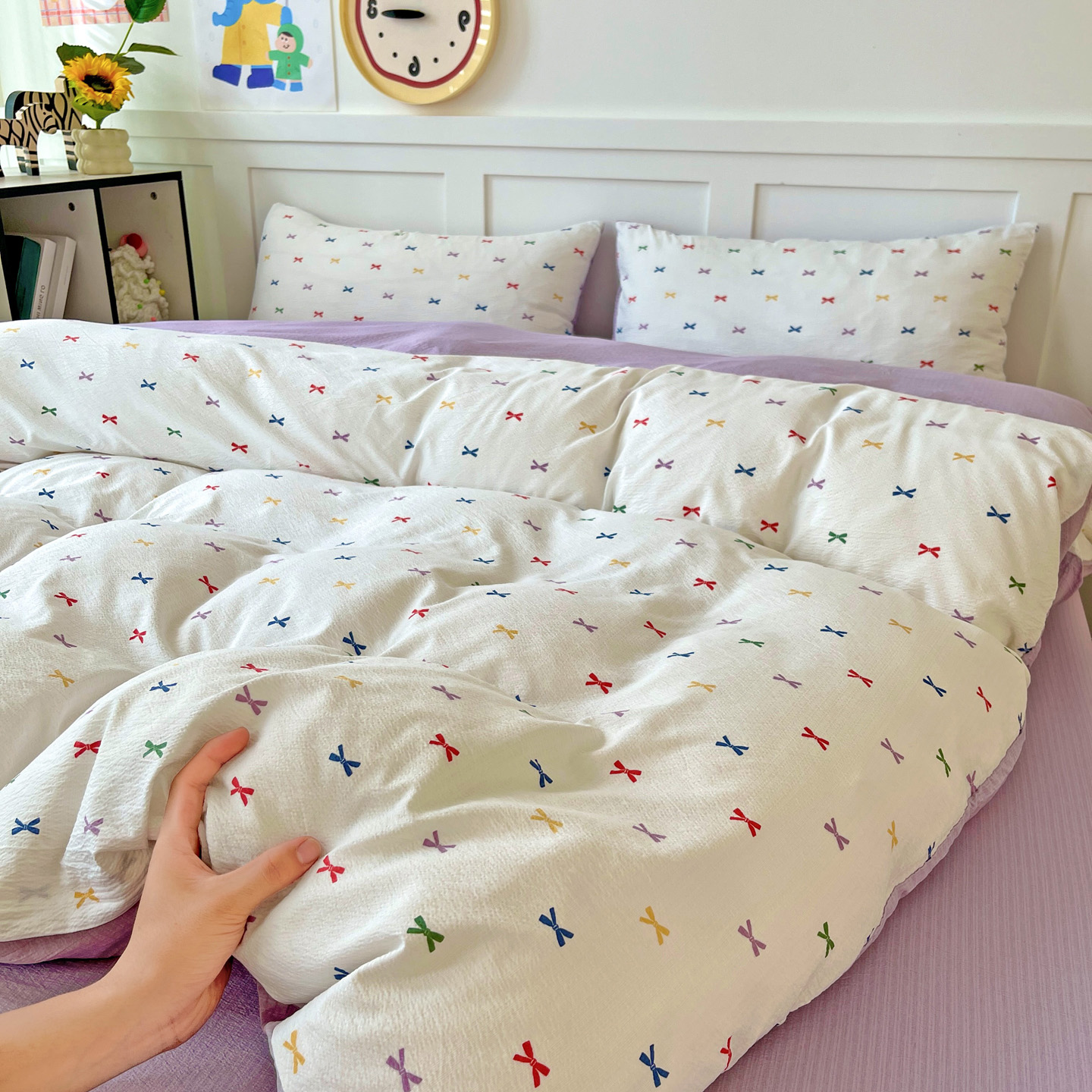 当前位置: 91家纺网 > 商品网购 > 床品套件 > 四件套 > 双层纱四件套 > 王朝国际 2026新款爆款云感亚麻有氧双层纱皱皱双层纱四件套 蝴蝶结