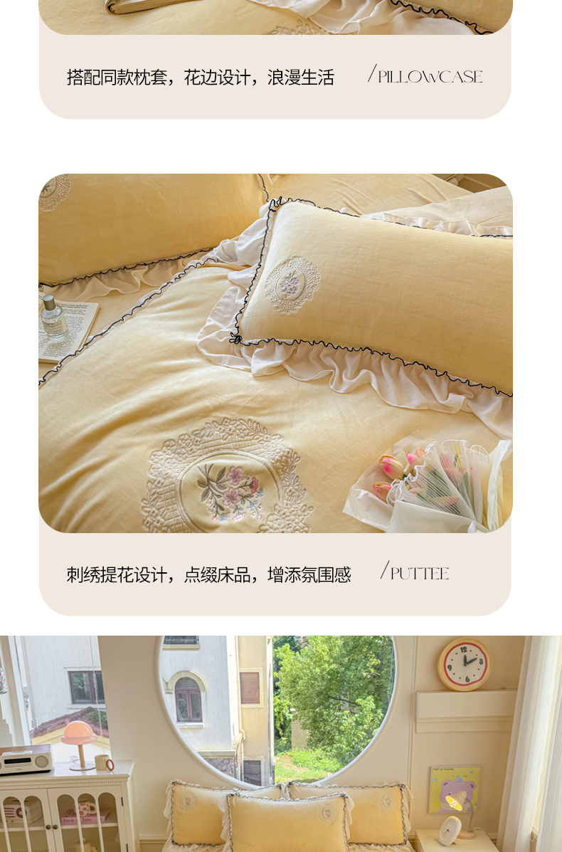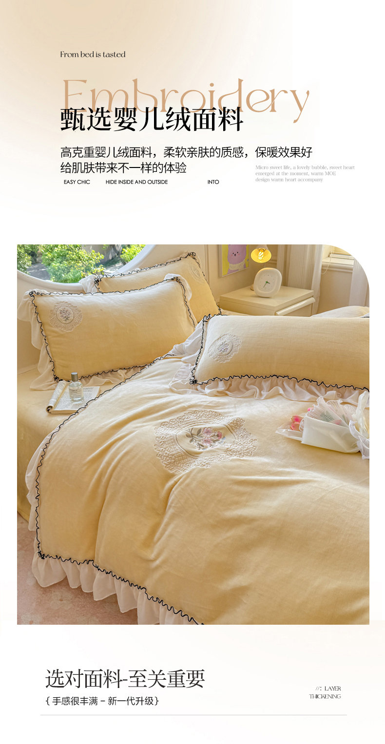 (总)橘子家 2025轻奢法式花边公主风婴儿绒牛奶绒高克重四件套,爱恋,安妮,茶野,风铃草,花间梦,花间梦,花满园,花香,幻蝶,可可草莓,蔓可,蜜桔,浅夕,乔依,甜梦,甜心,晚风,小熊抱抱,云漫,枝蔓,心动
