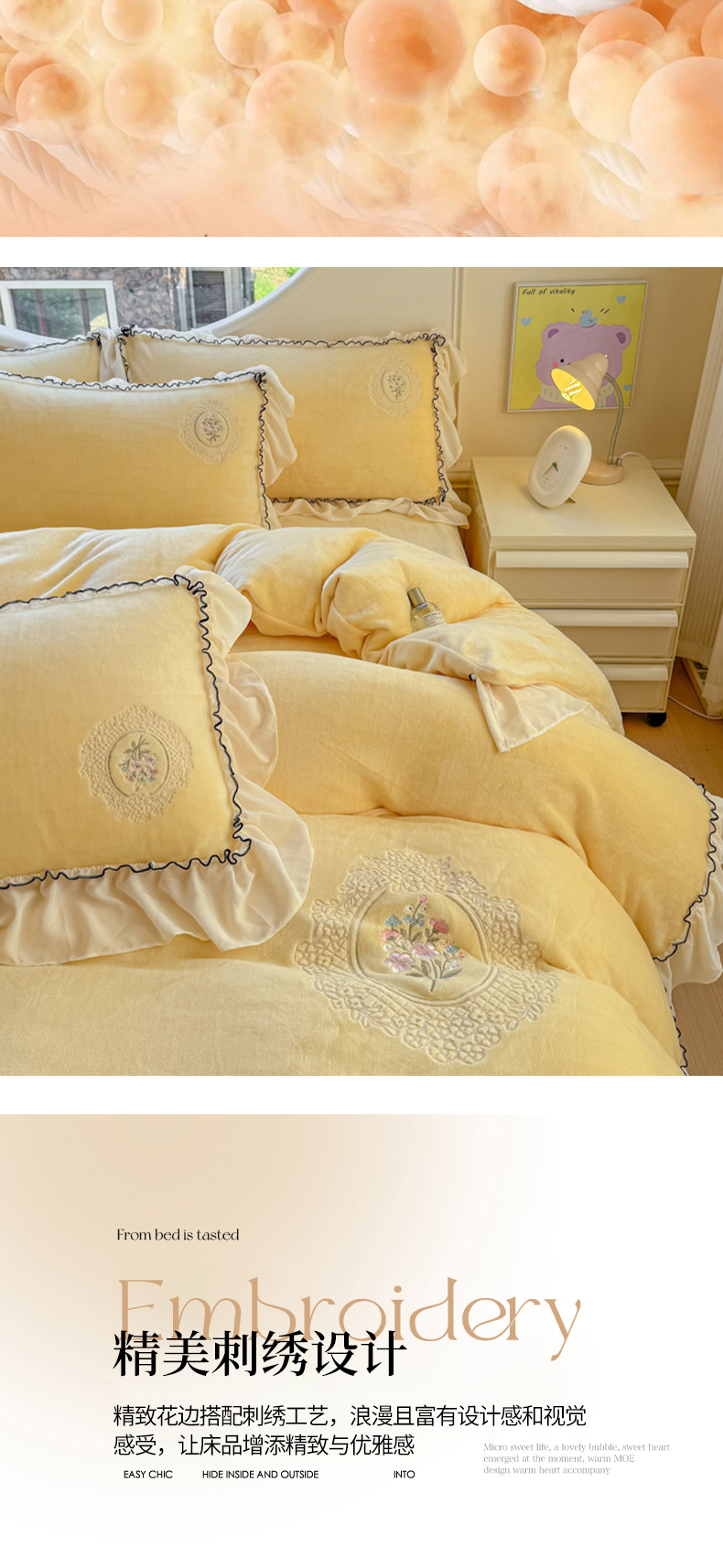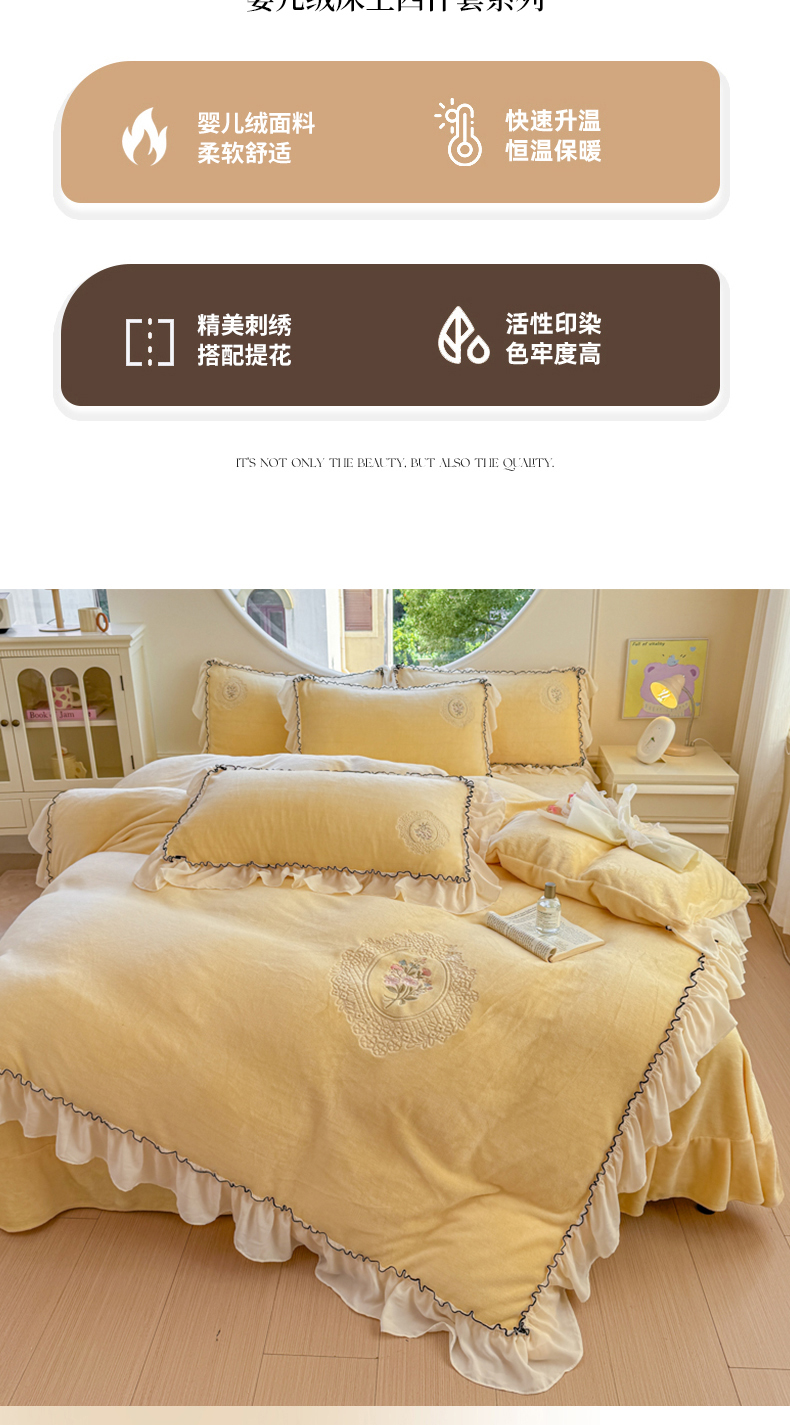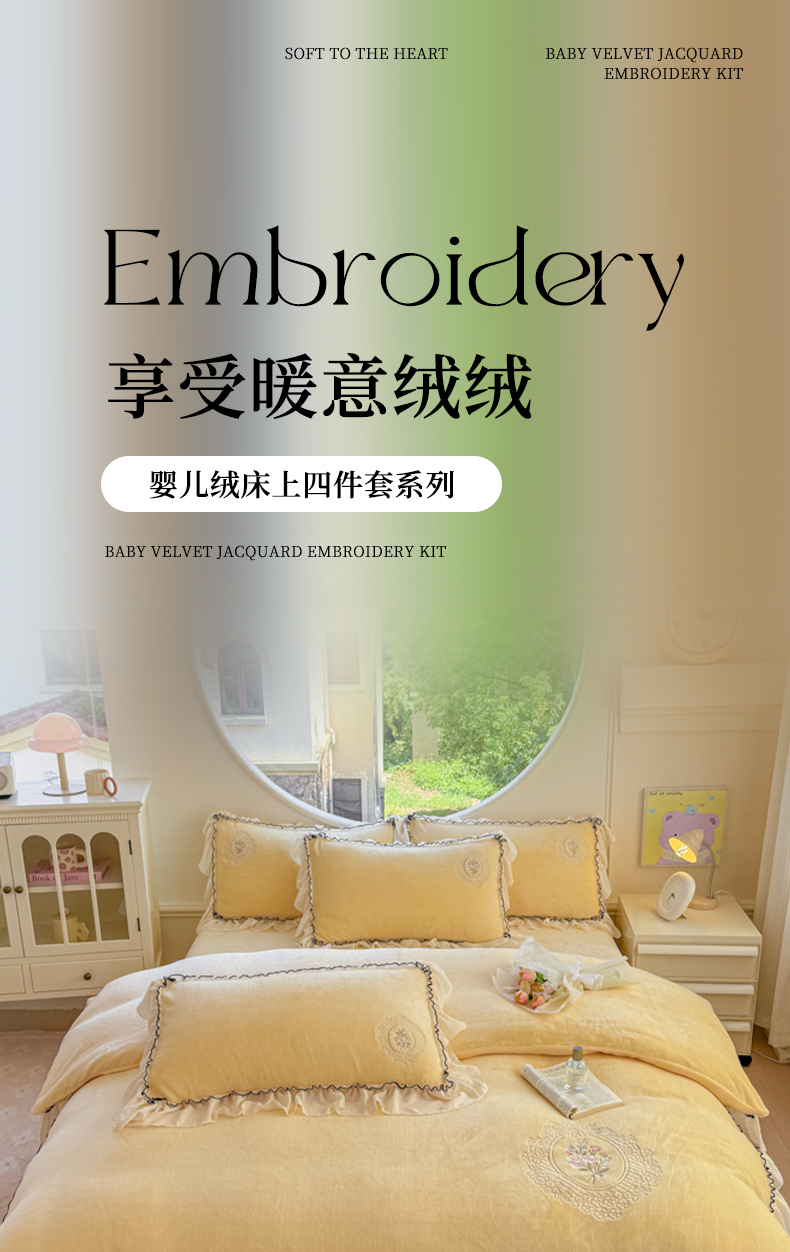 商品名称:橘子家 2025新款婴儿绒床上四件套系列-维纳斯 维纳斯-鹅黄