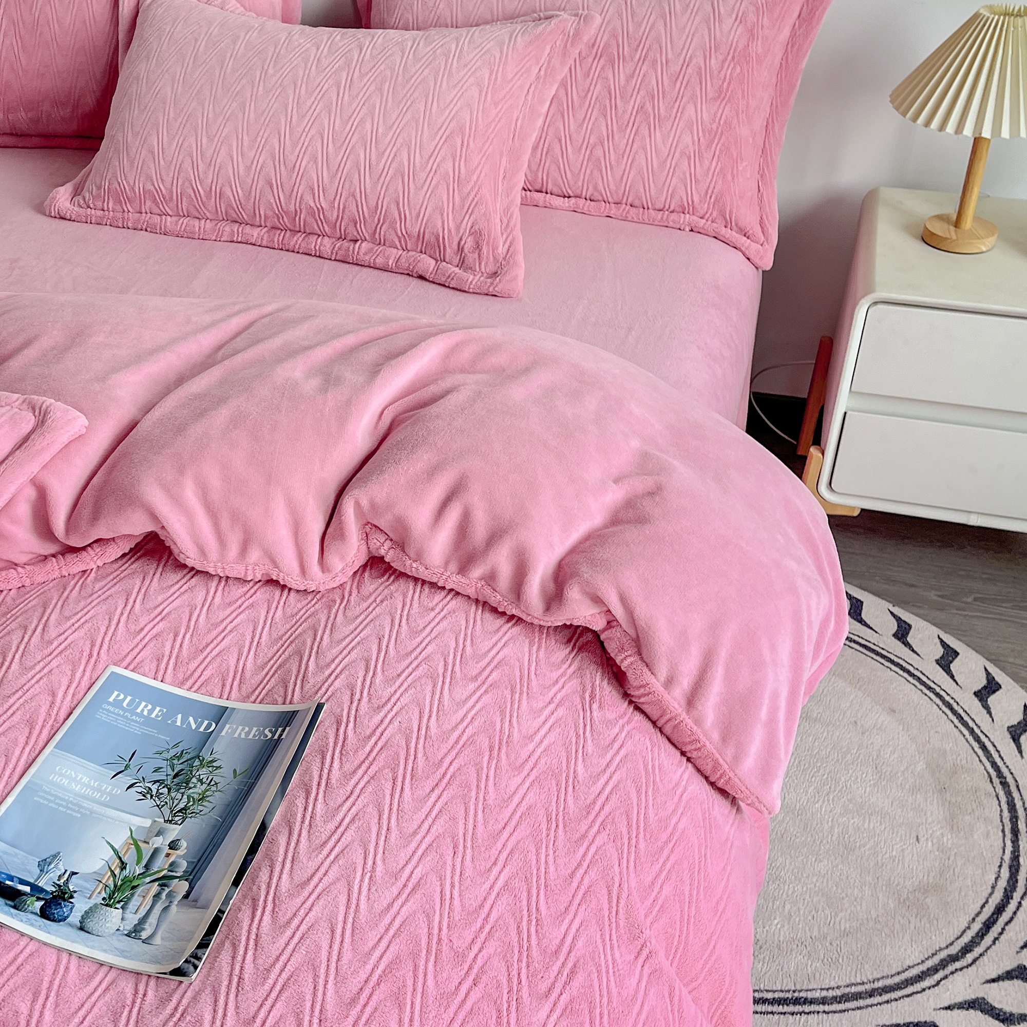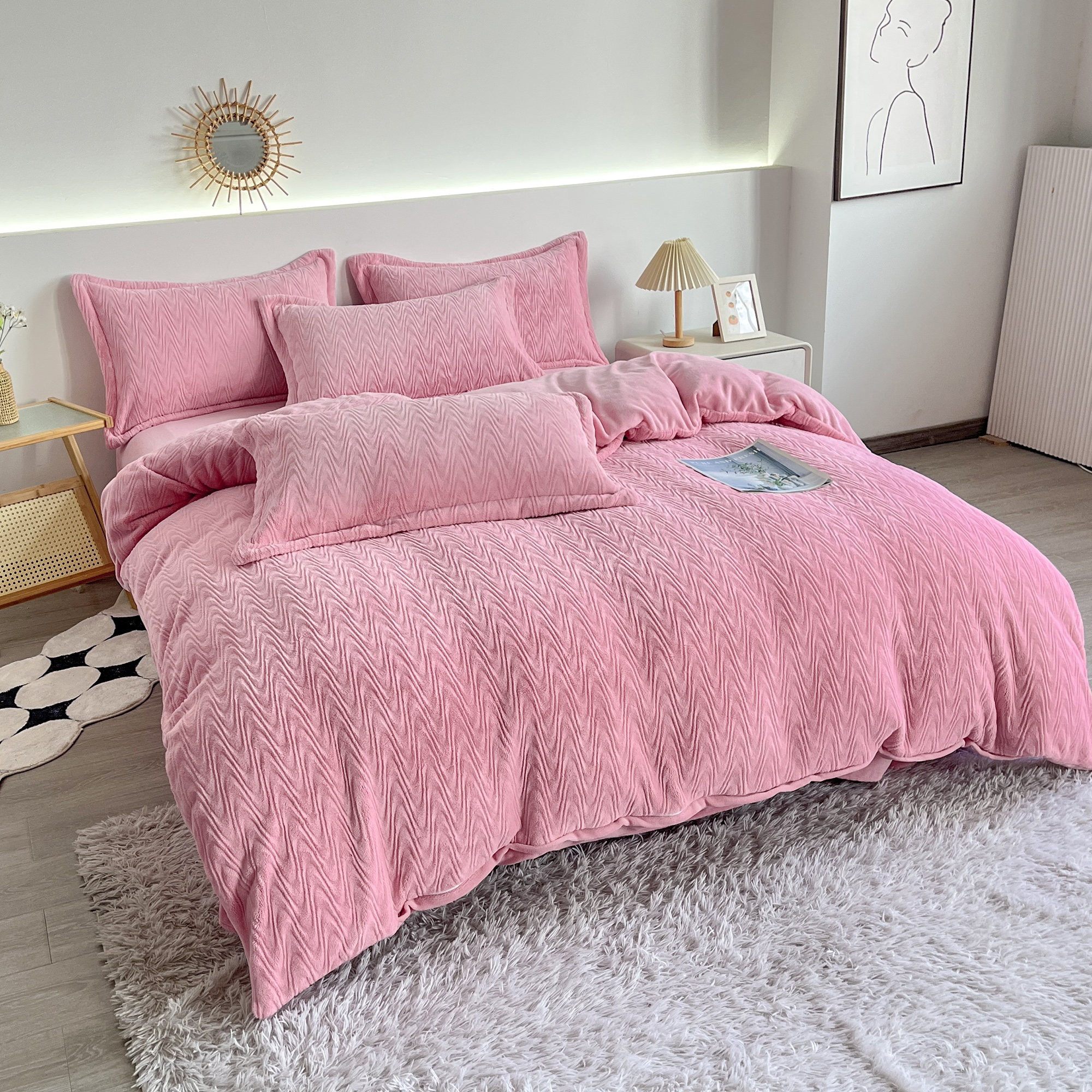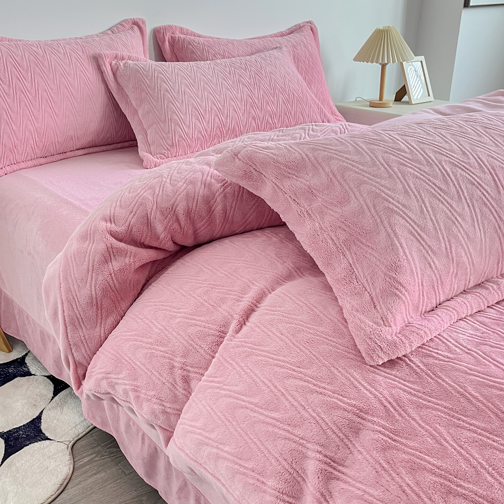 2025新款全消光皮草绒纯色高克重四件套(赠送拎袋)——波纹 仙女粉