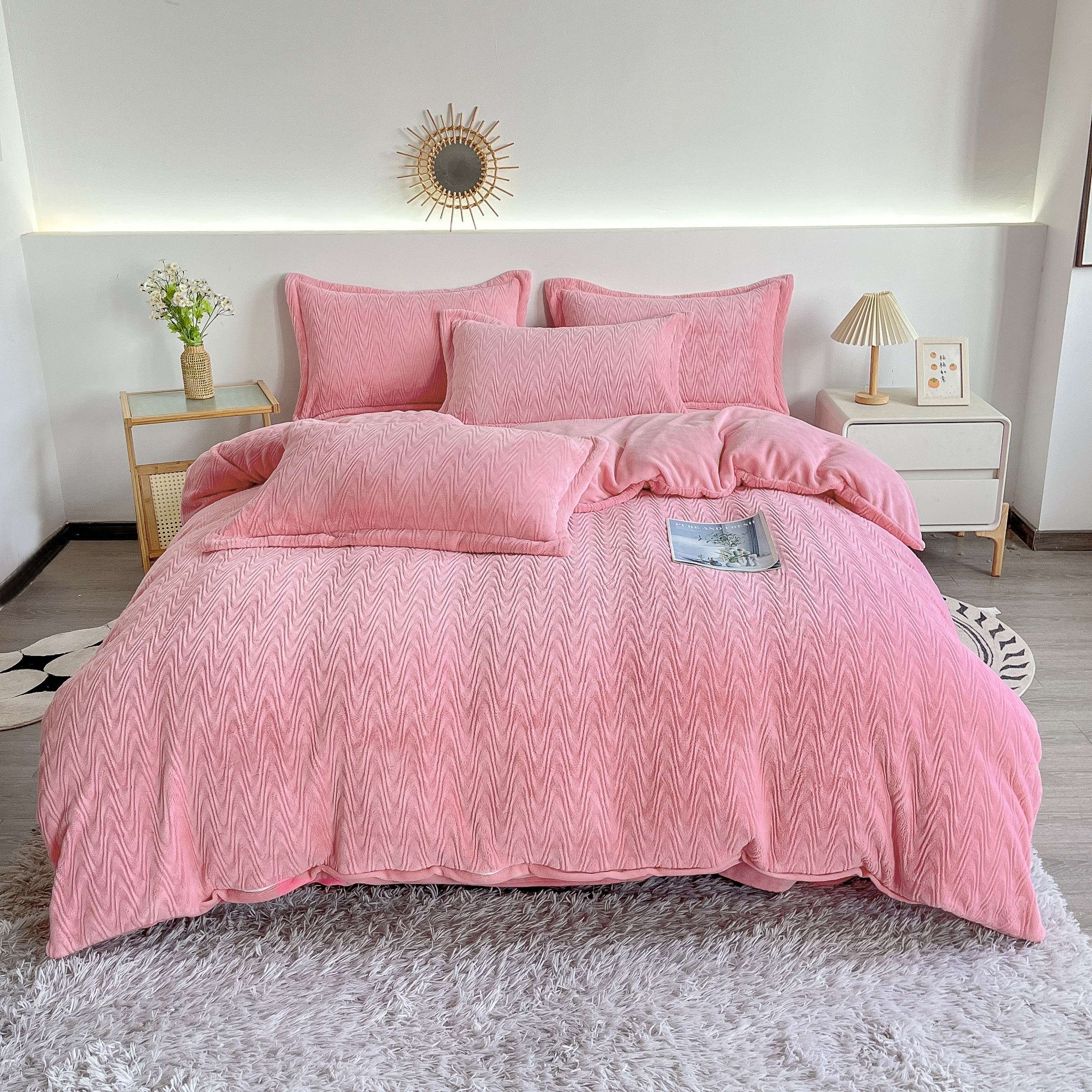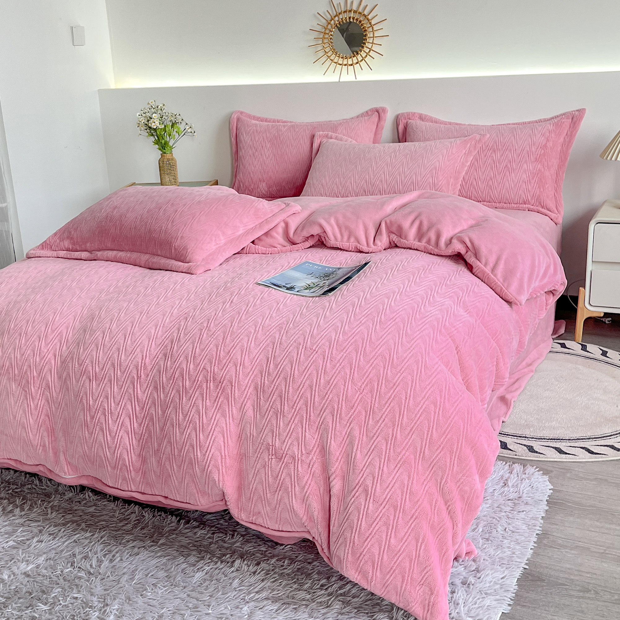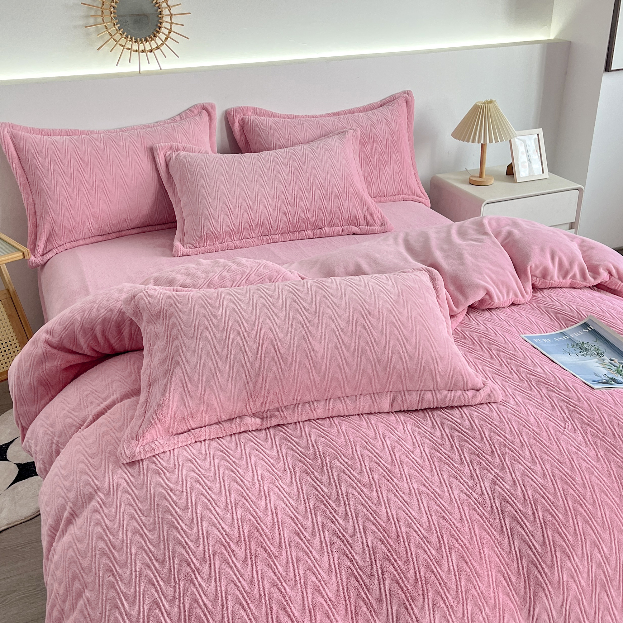 2025新款全消光皮草绒纯色高克重四件套(赠送拎袋)——波纹 仙女粉
