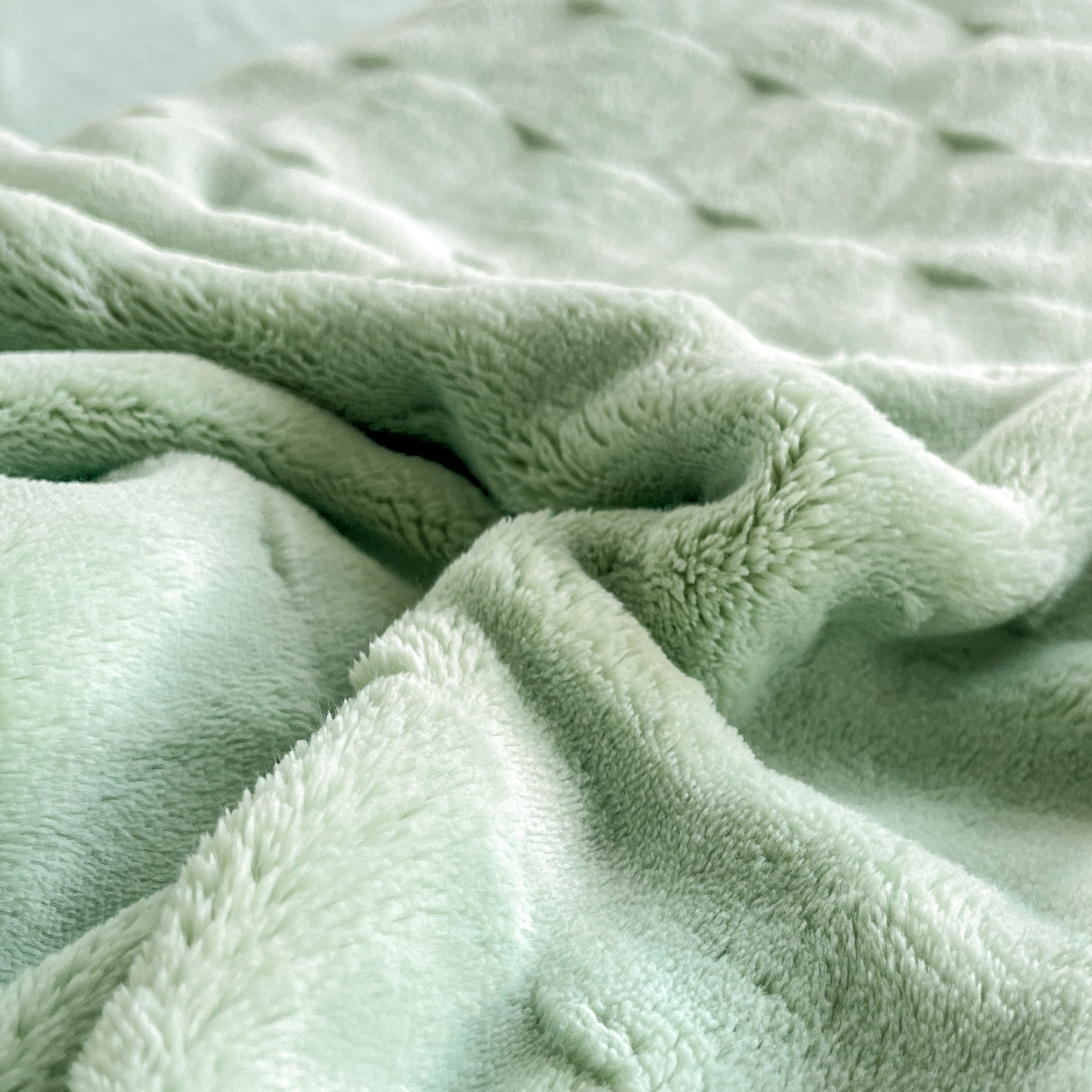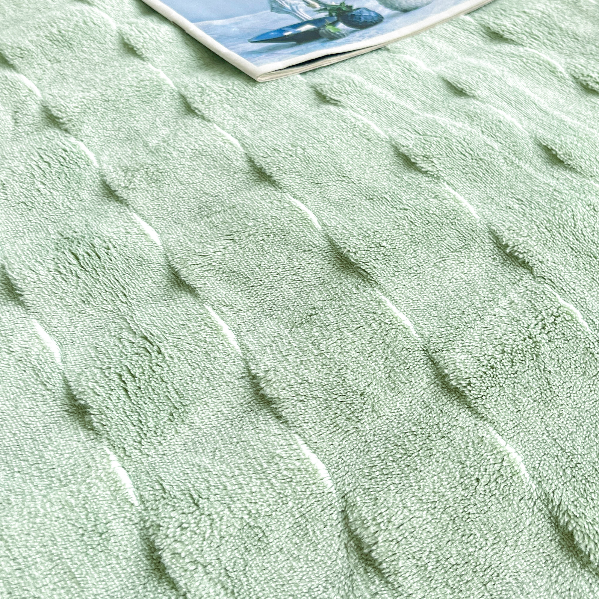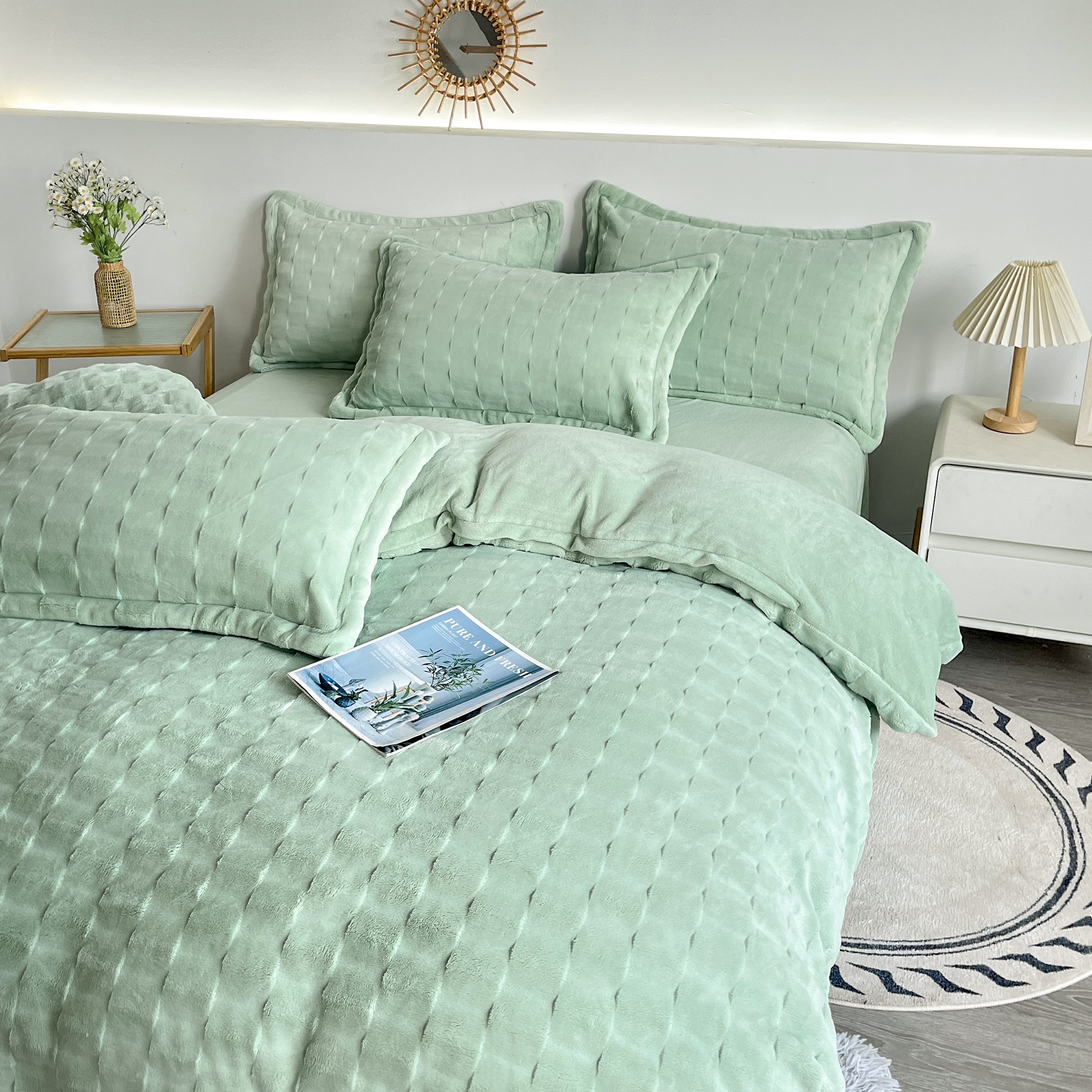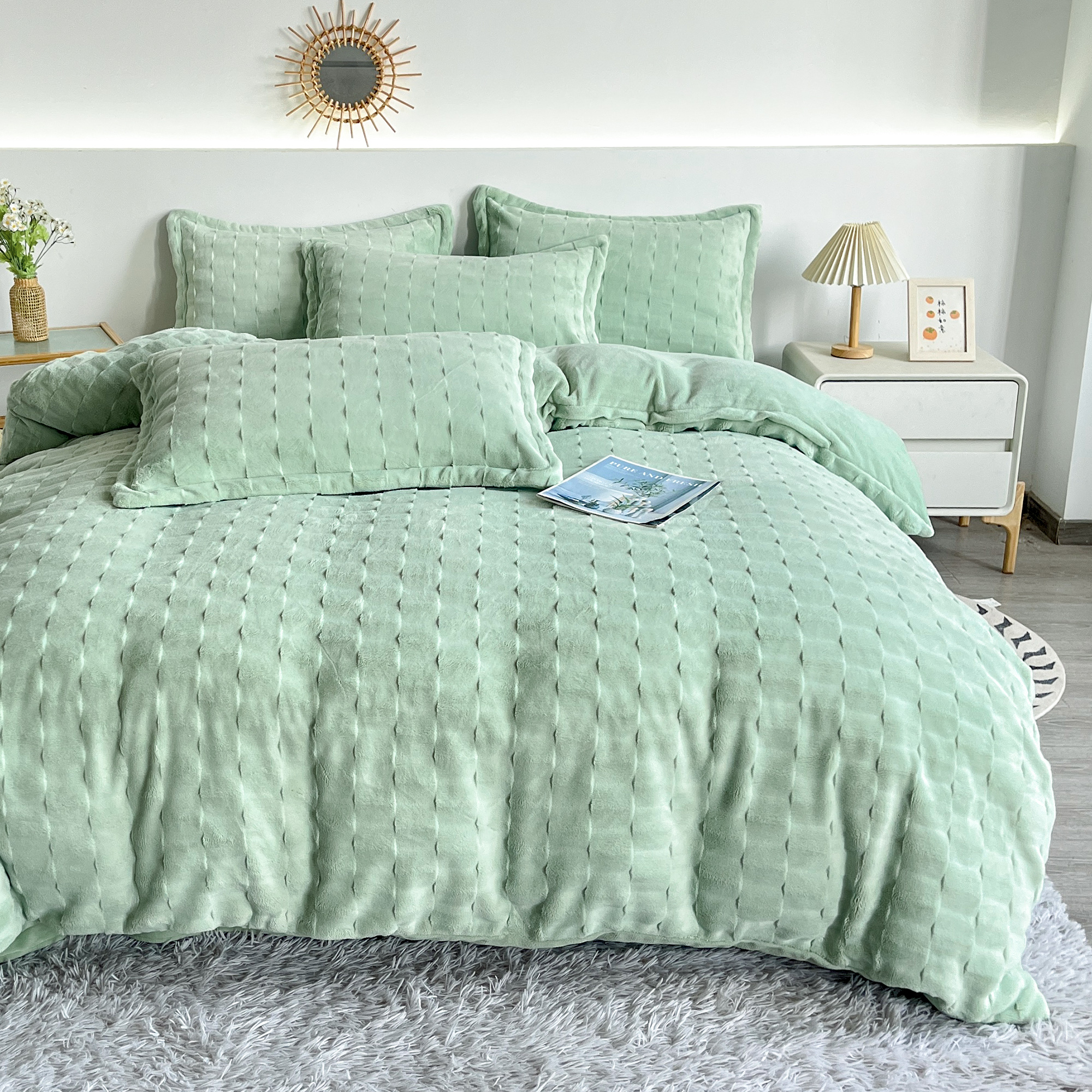 2025新款全消光皮草绒纯色高克重四件套(赠送拎袋)——方格 抹茶绿