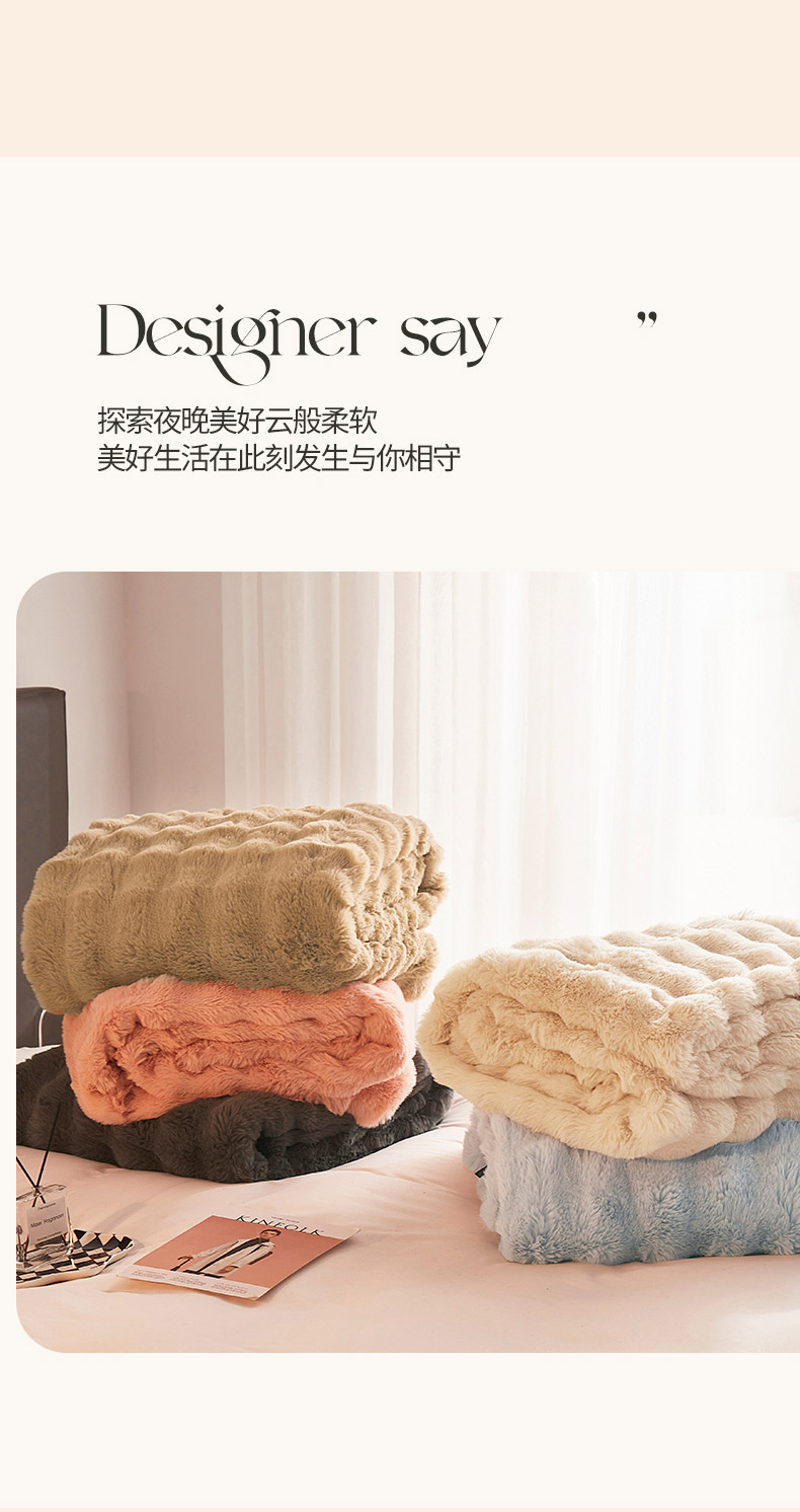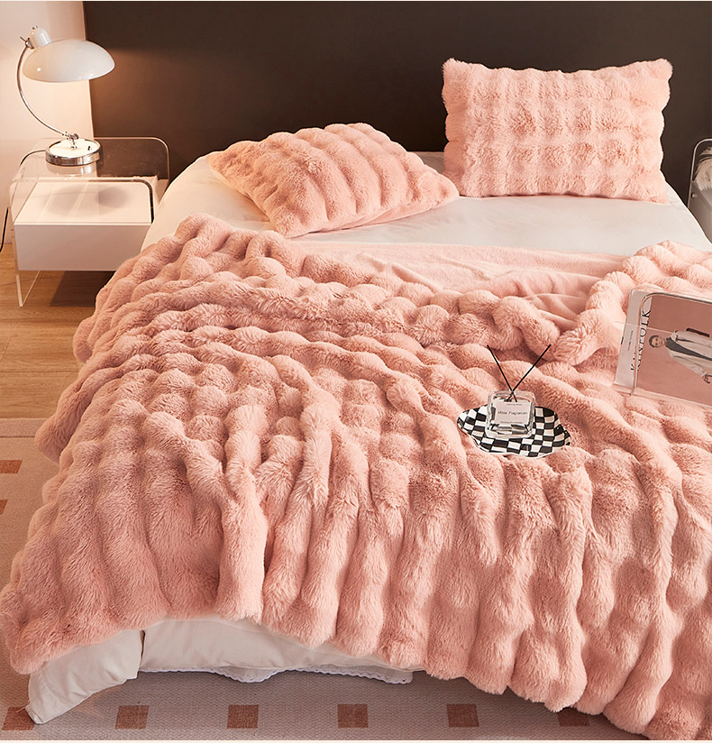 悦织湾家纺 2025新款轻奢纯色托斯卡纳兔毛绒大泡泡绒毛毯双面都是兔毛高密高克重可供跨境外贸出口 托斯-清新玉粉
