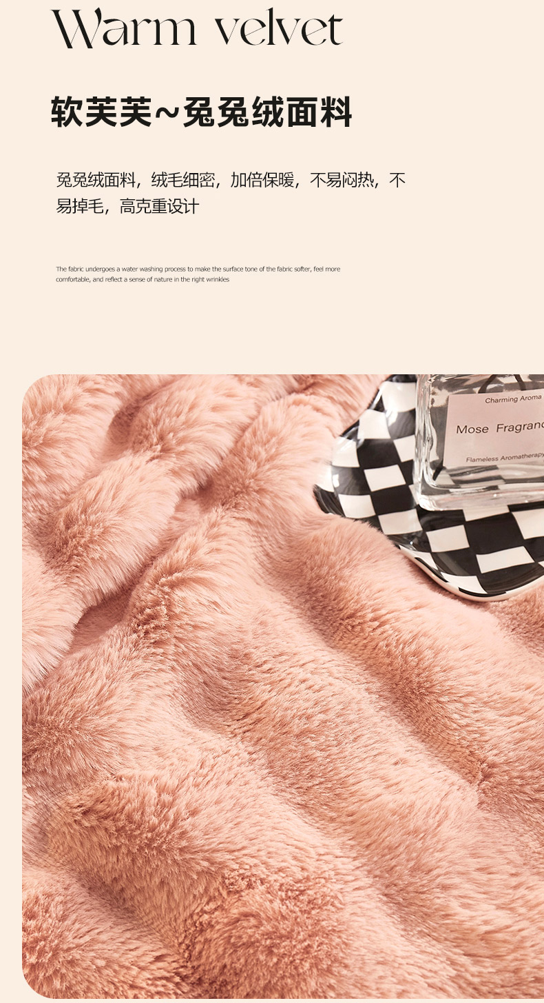 商品名称:悦织湾家纺 2025新款轻奢纯色托斯卡纳兔毛绒大泡泡绒毛毯双面都是兔毛高密高克重可供跨境外贸出口 托斯-清新玉粉