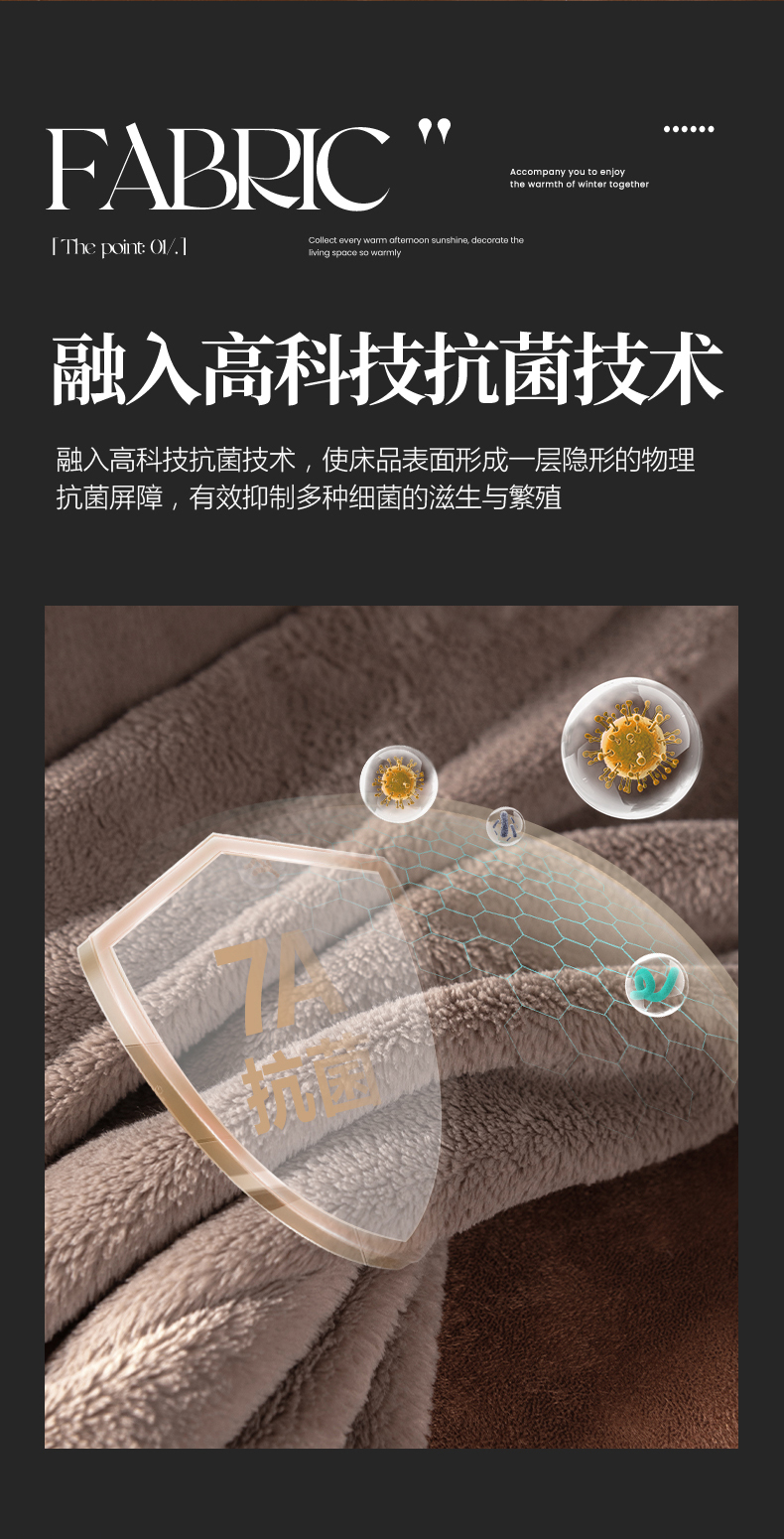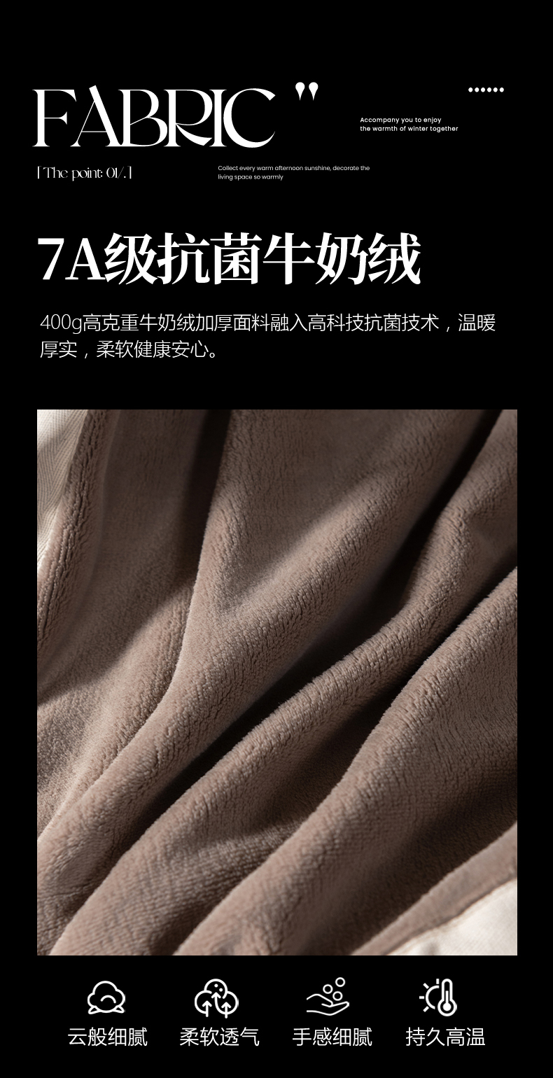 商品名称:网客家纺 2025新款7A抗菌抗静电舒适百搭毛绒毯 7A抗菌毯-泰迪棕
