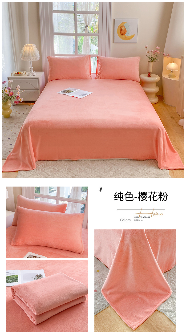 商品名称:优米家纺 2025新款加厚舒适牛奶绒床单床单单件 纯色-樱花粉