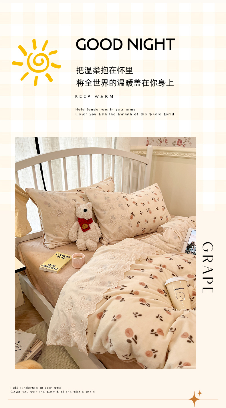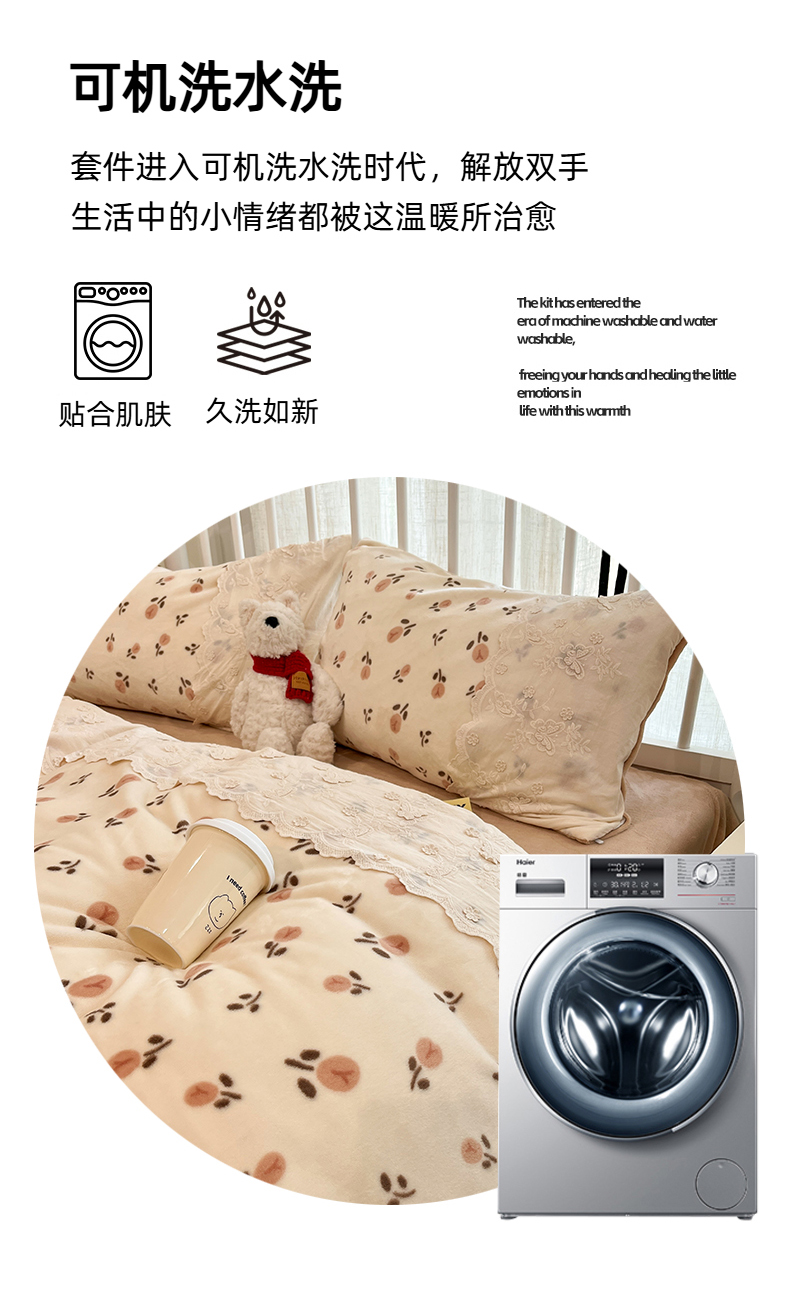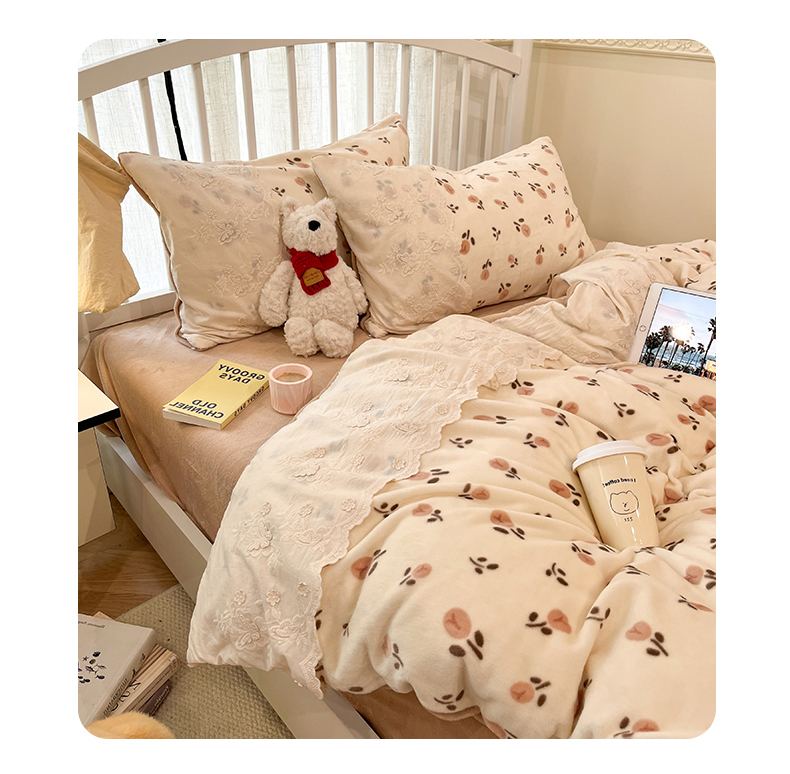 商品名称:(总)首尔家纺 2025新款牛奶绒拼接全棉立体花边款四件套系列