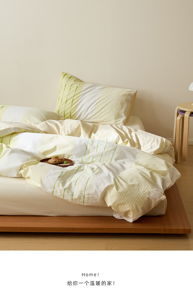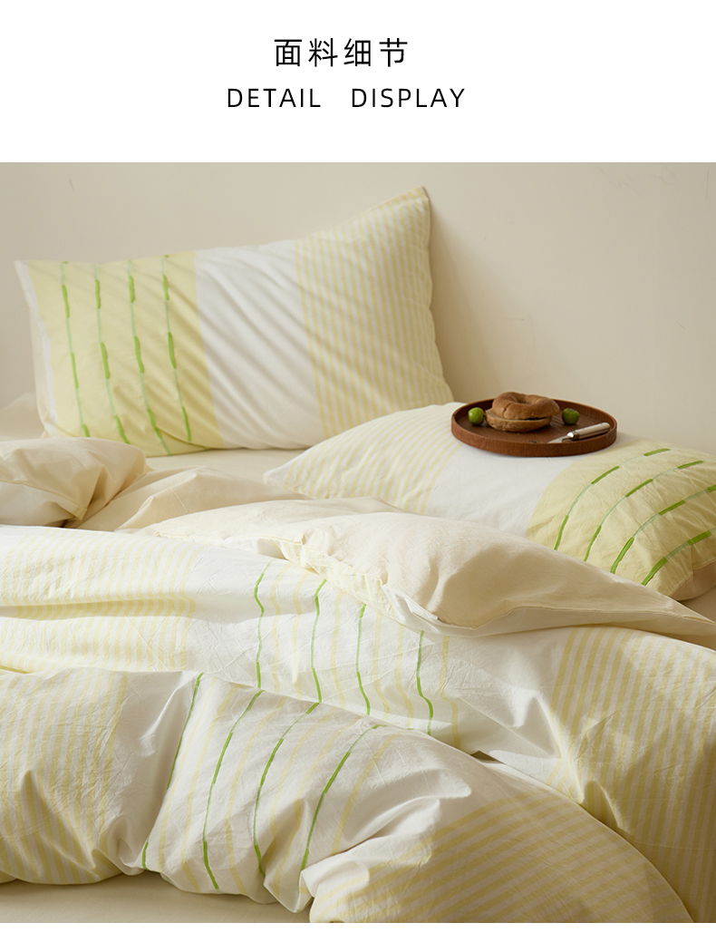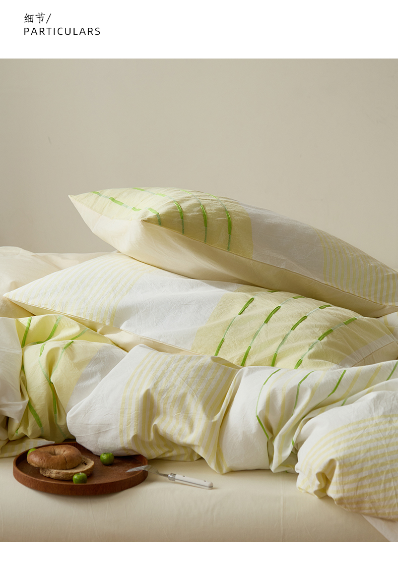 商品名称:Mr.pig猪先生水洗棉 2025新款全棉色织立体四件套 绿黄