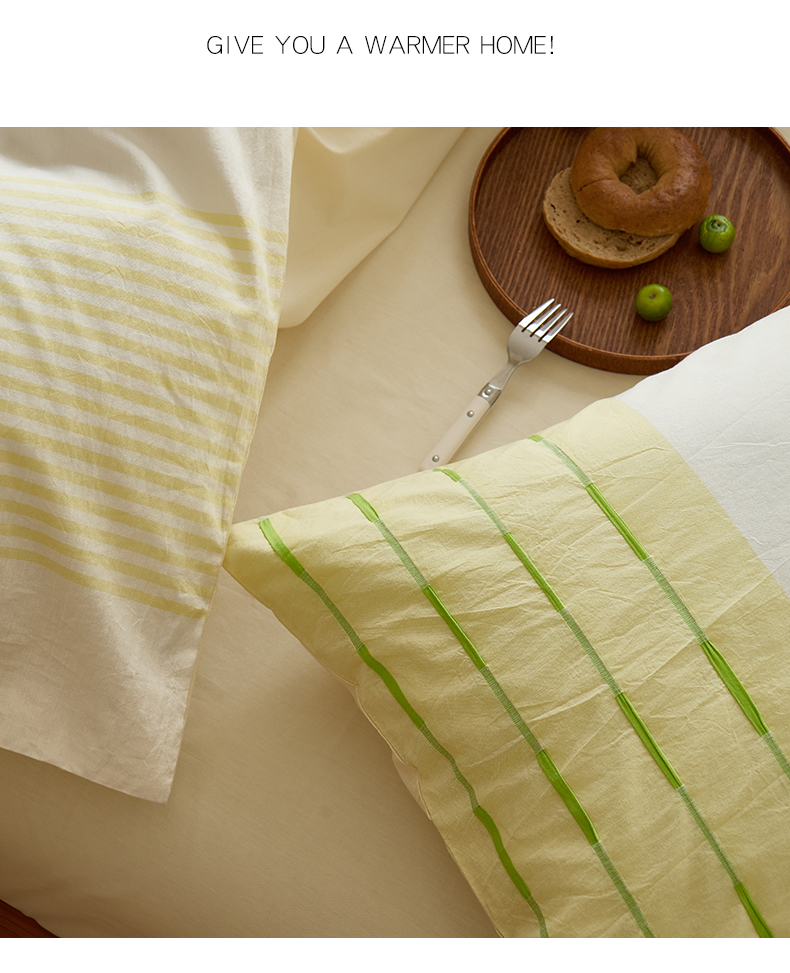 Mr.pig猪先生水洗棉 2025新款全棉色织立体四件套 绿黄