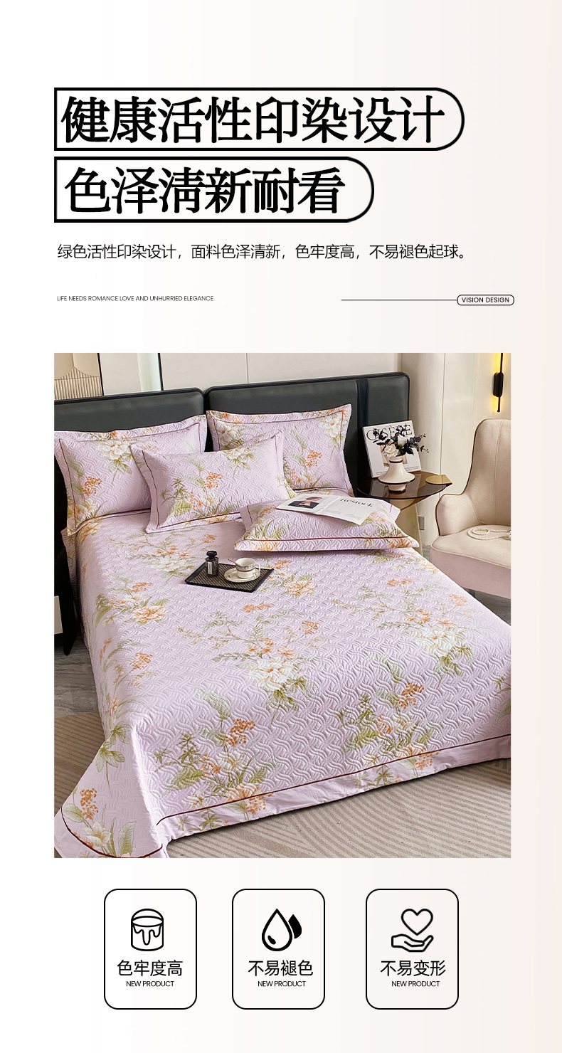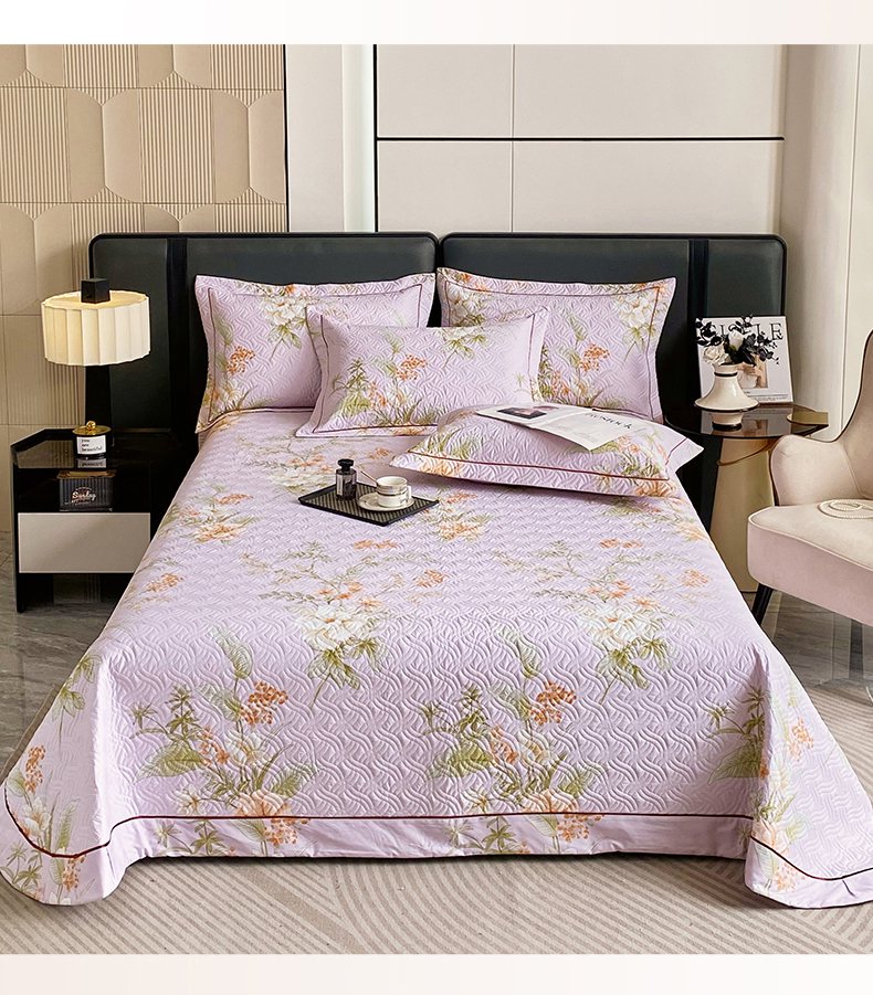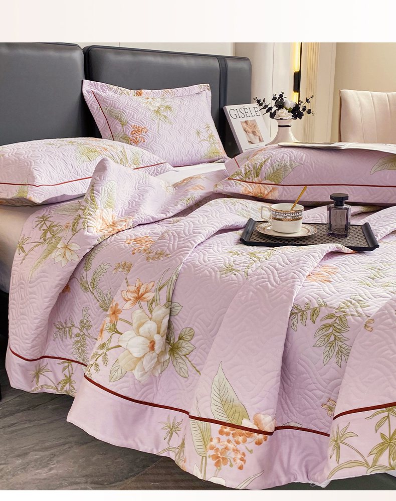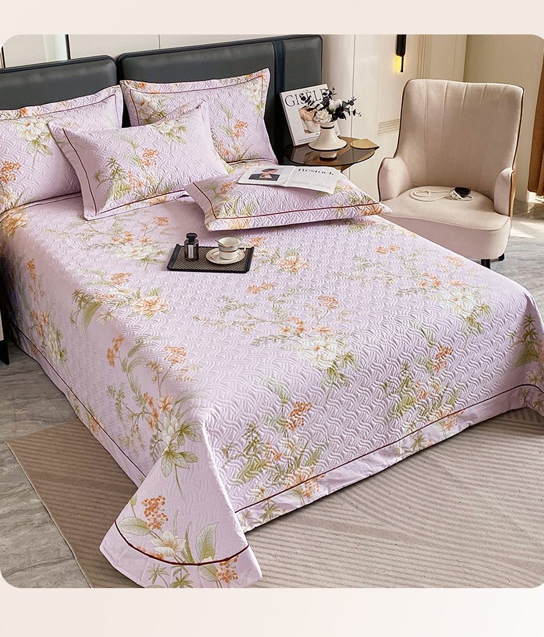 • 91家纺网 家纺一手货源 找家纺 畅畅家纺 2025春夏款13372全棉纯棉活性印花床盖夹棉加厚绗缝防滑床罩 春盛-紫
