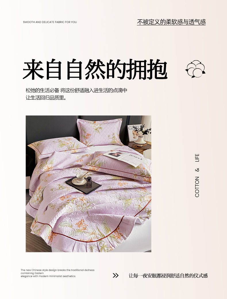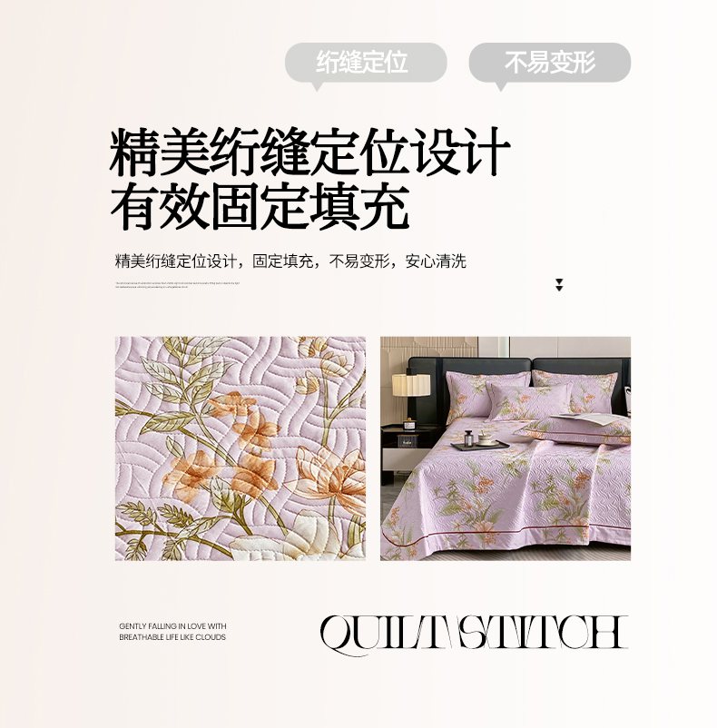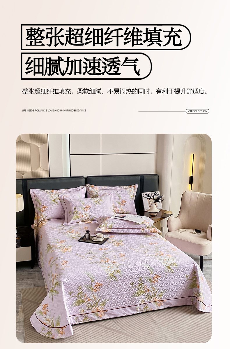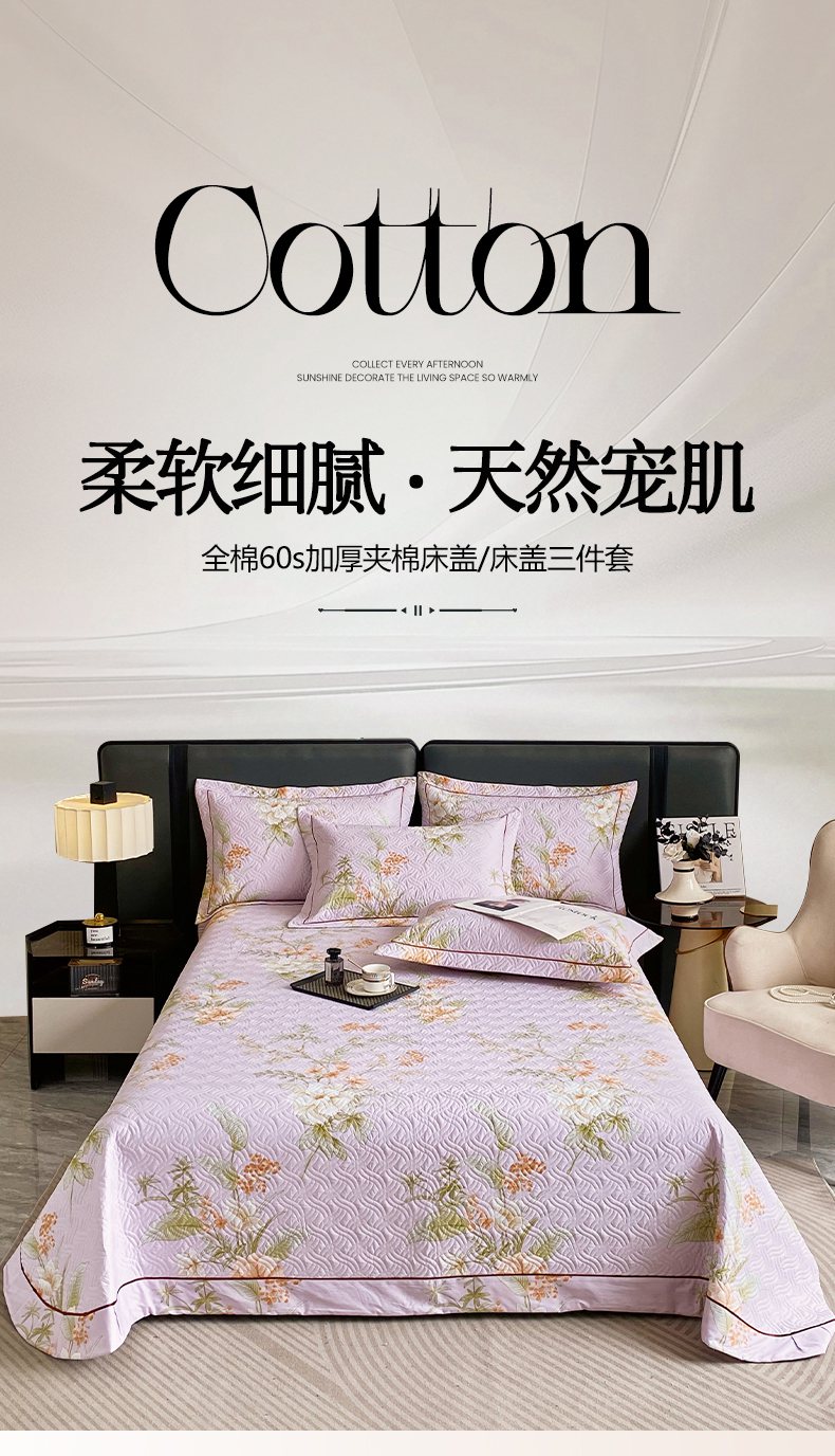 • 91家纺网 家纺一手货源 找家纺 畅畅家纺 2025春夏款13372全棉纯棉活性印花床盖夹棉加厚绗缝防滑床罩 春盛-紫