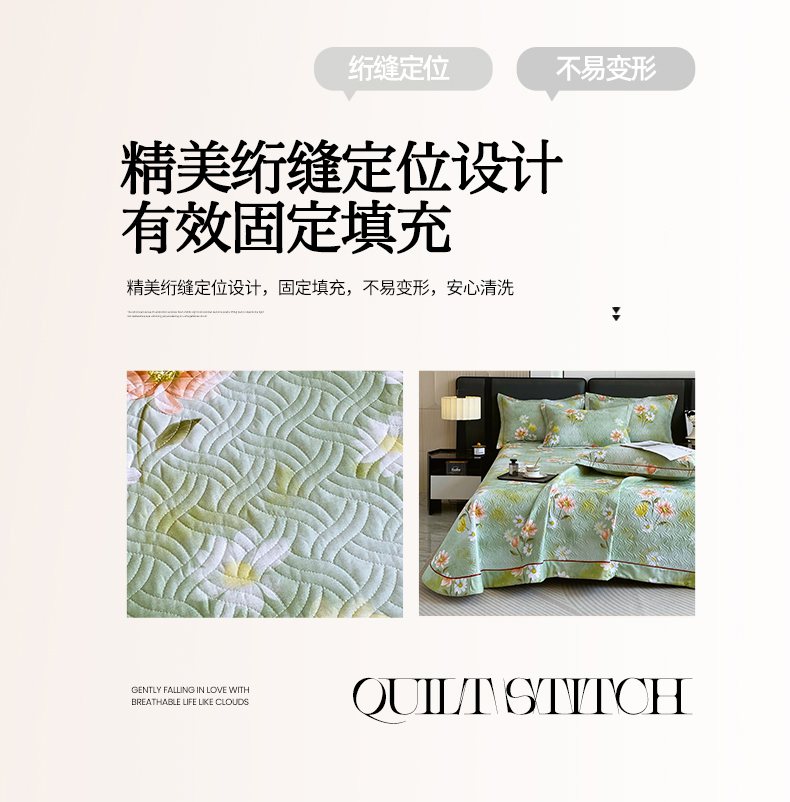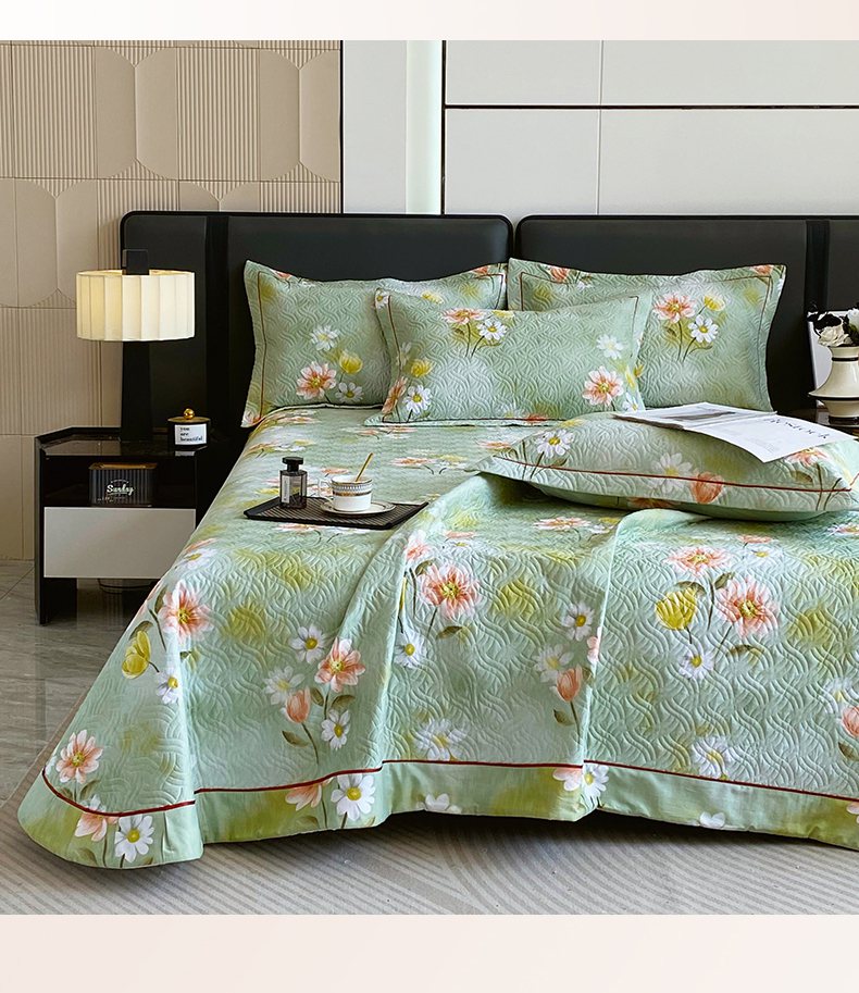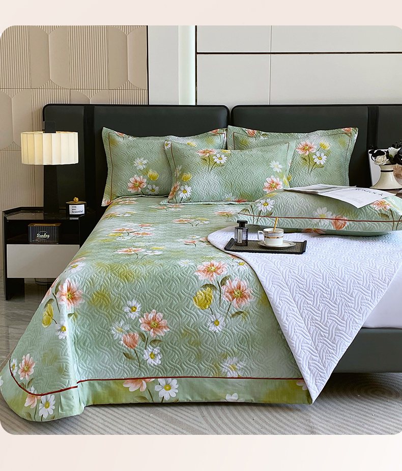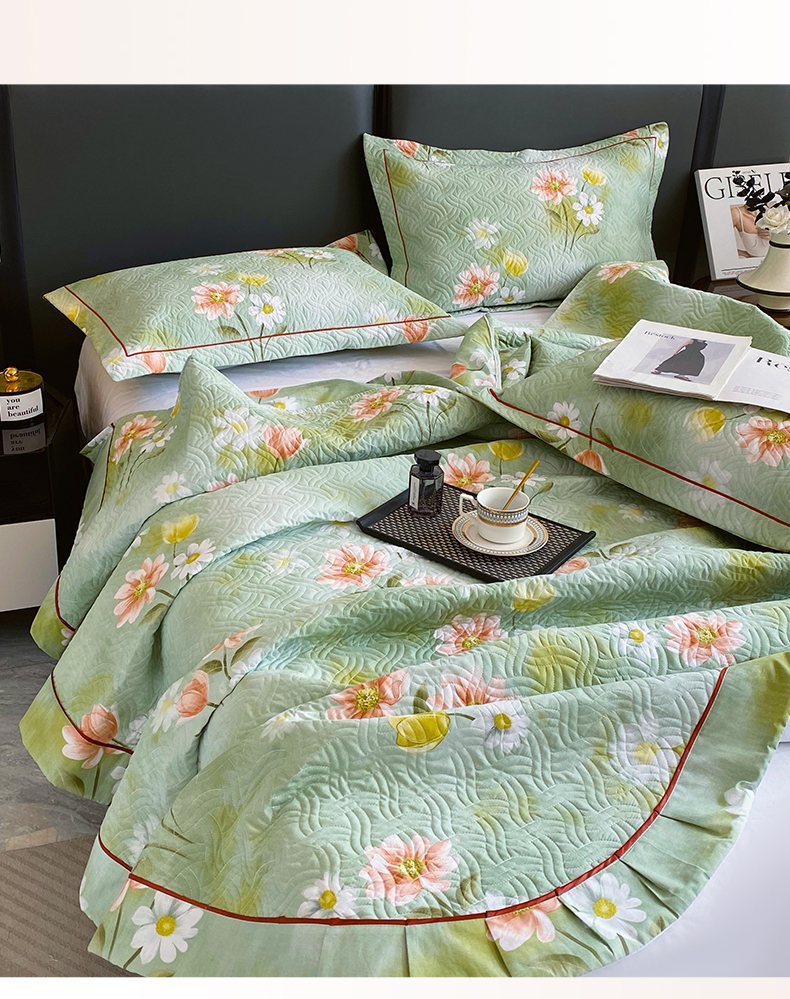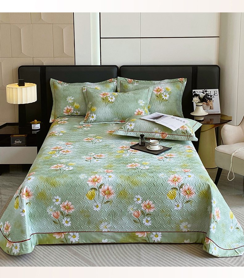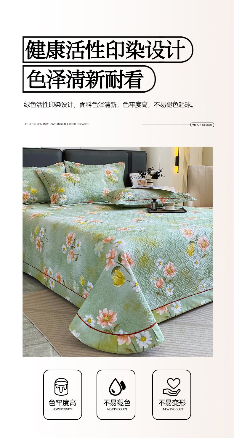 • 91家纺网 家纺一手货源 找家纺 畅畅家纺 2025春夏款13372全棉纯棉活性印花床盖夹棉加厚绗缝防滑床罩 邂逅