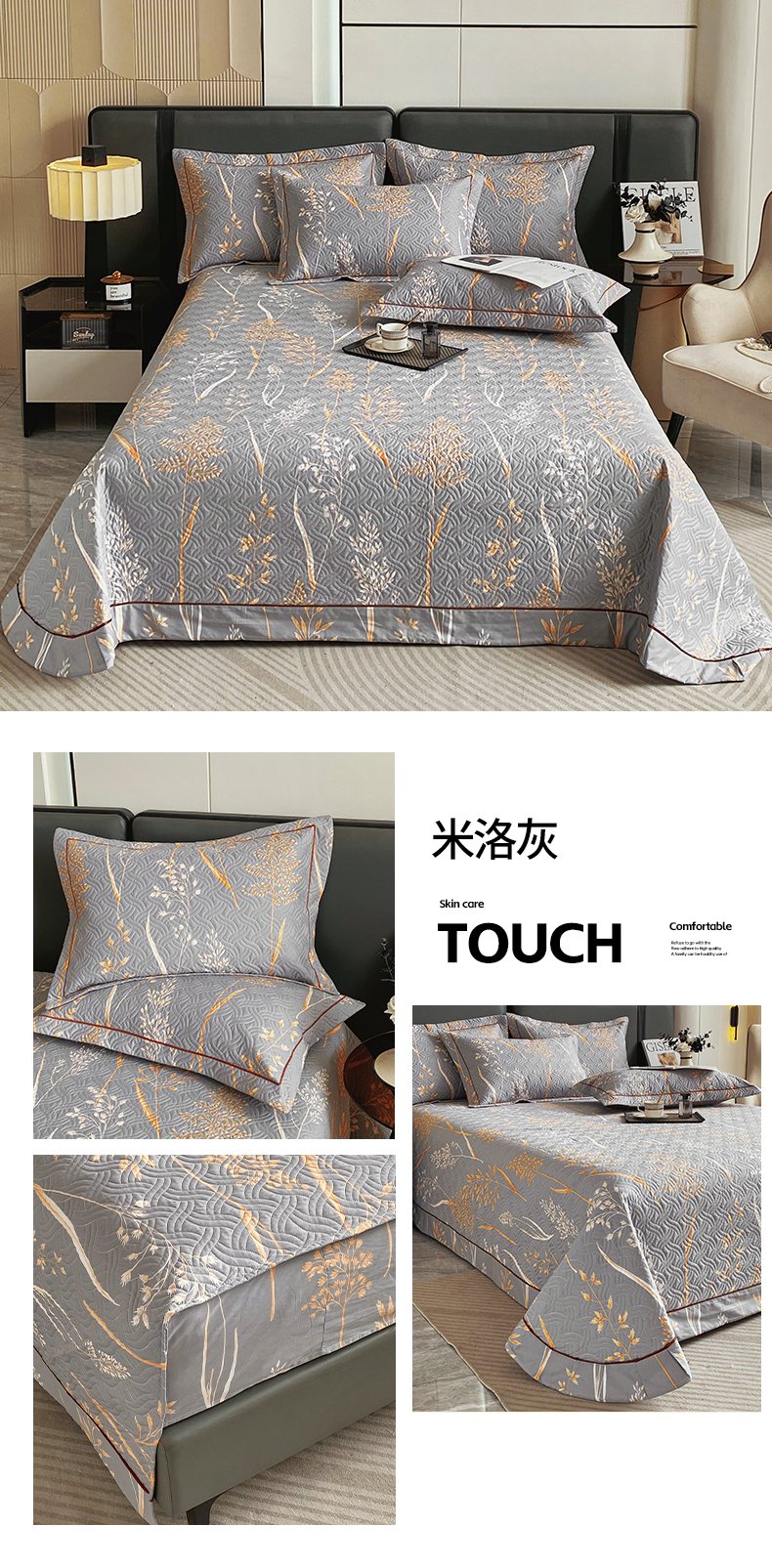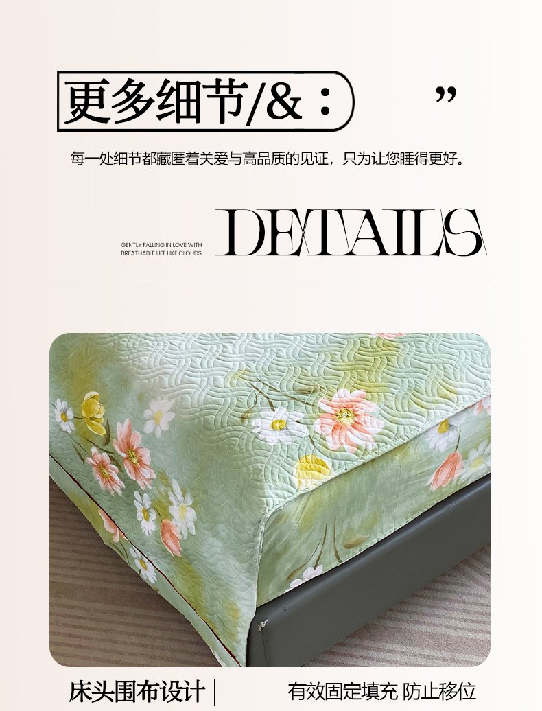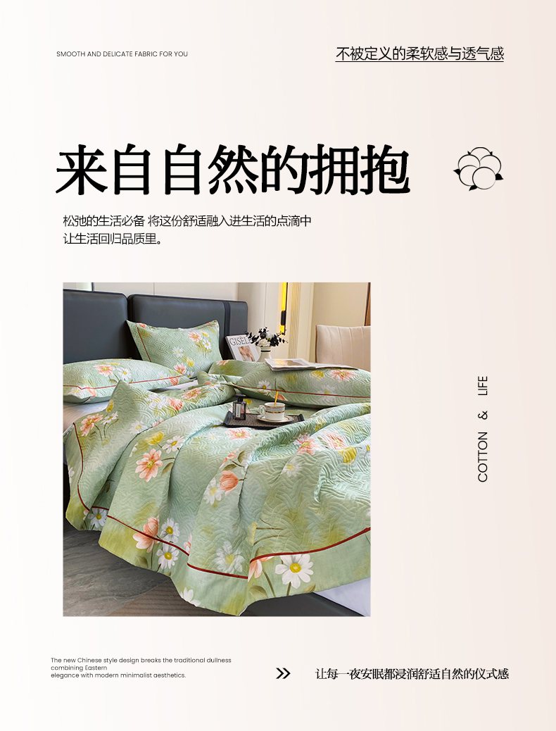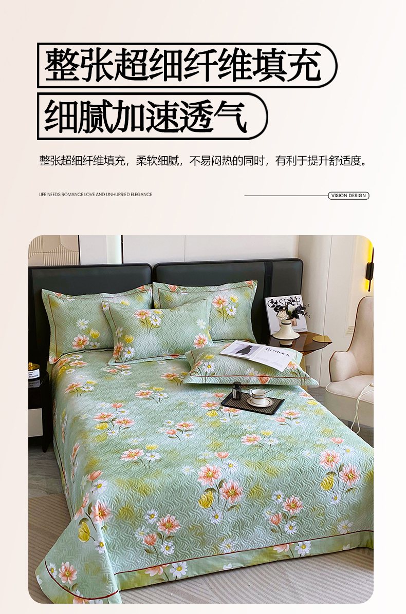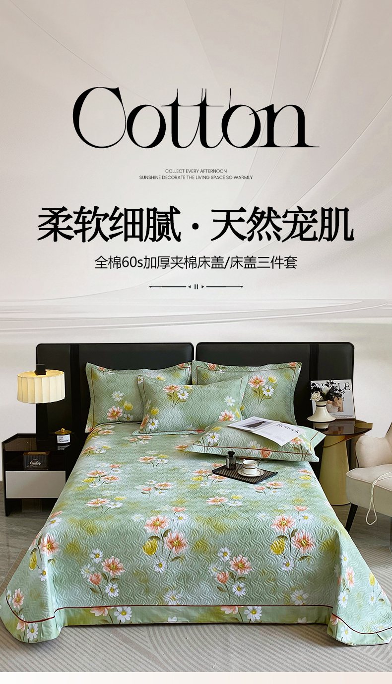 • 91家纺网 家纺一手货源 找家纺 畅畅家纺 2025春夏款13372全棉纯棉活性印花床盖夹棉加厚绗缝防滑床罩 邂逅