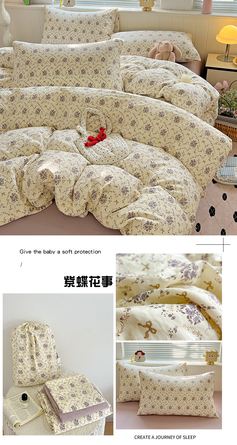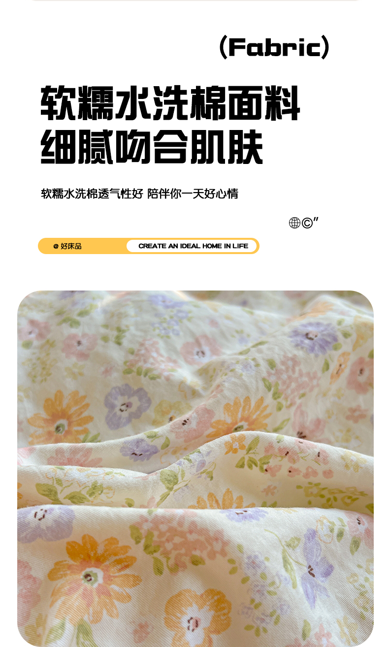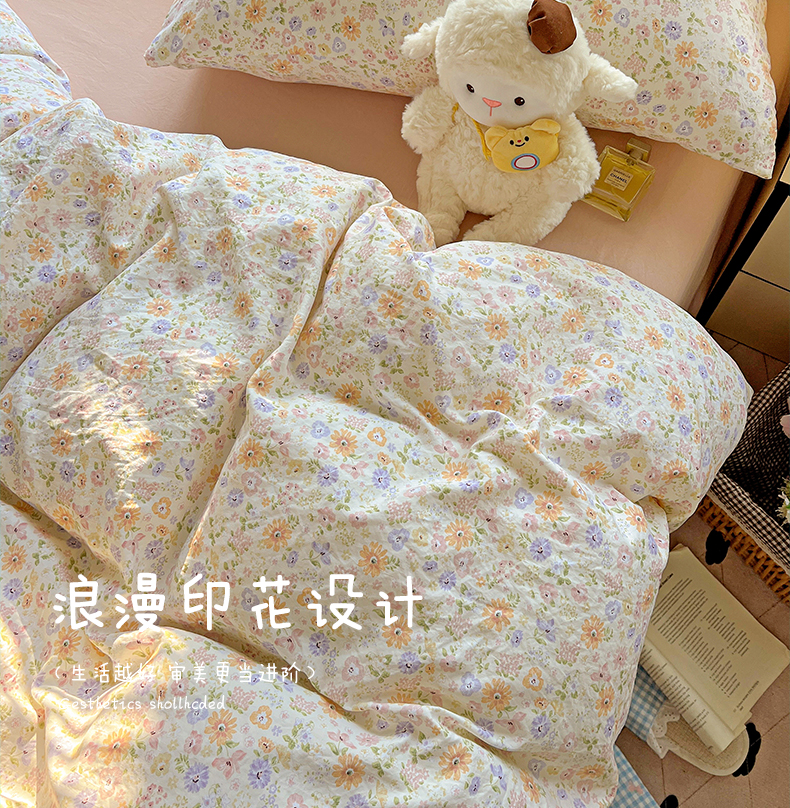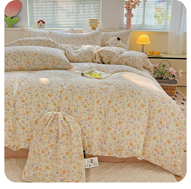 当前位置: 91家纺网 > 商品网购 > 床品套件 > 四件套 > 水洗棉四件套 > 暖芯优选 2025新款加厚爆款小布袋韩国古法水洗棉床单学生三件套床笠款四件套 缤纷花舍