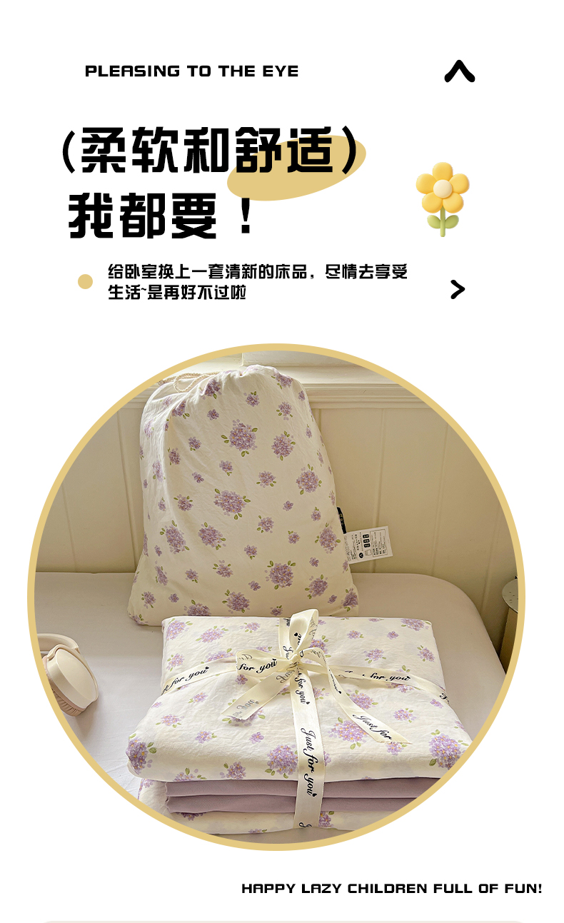商品名称:(总)优选 2025新款加厚爆款小布袋韩国古法高克重水洗棉床单学生三件套床笠款四件套