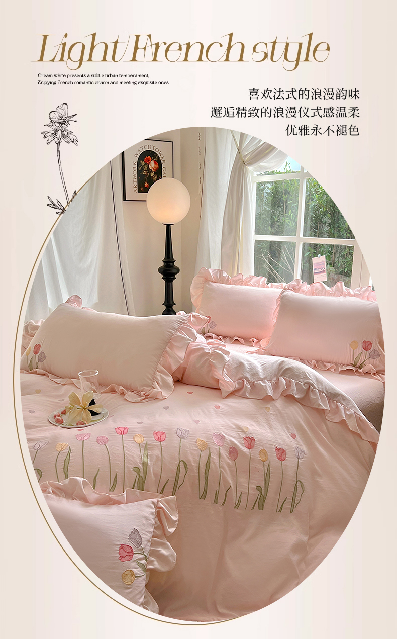 (总)老K (原美阁) 2024新款水洗棉蝴蝶结刺绣韩版水洗棉四件套,小香风-白黑,小香风-奶油黄,小香风-香芋紫,小香风-樱花粉,小香风-优雅灰,小香风-珍珠白