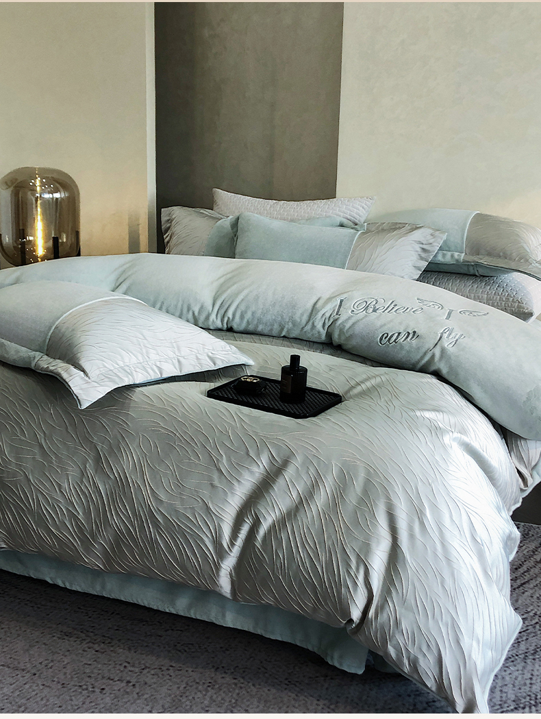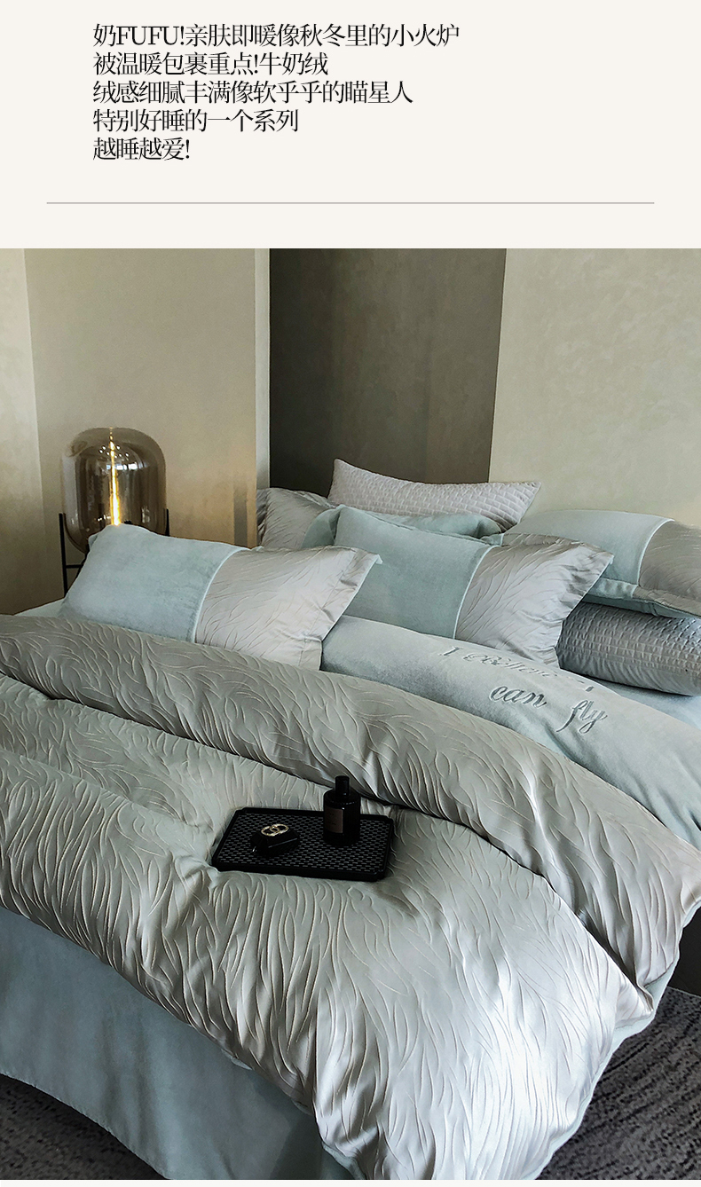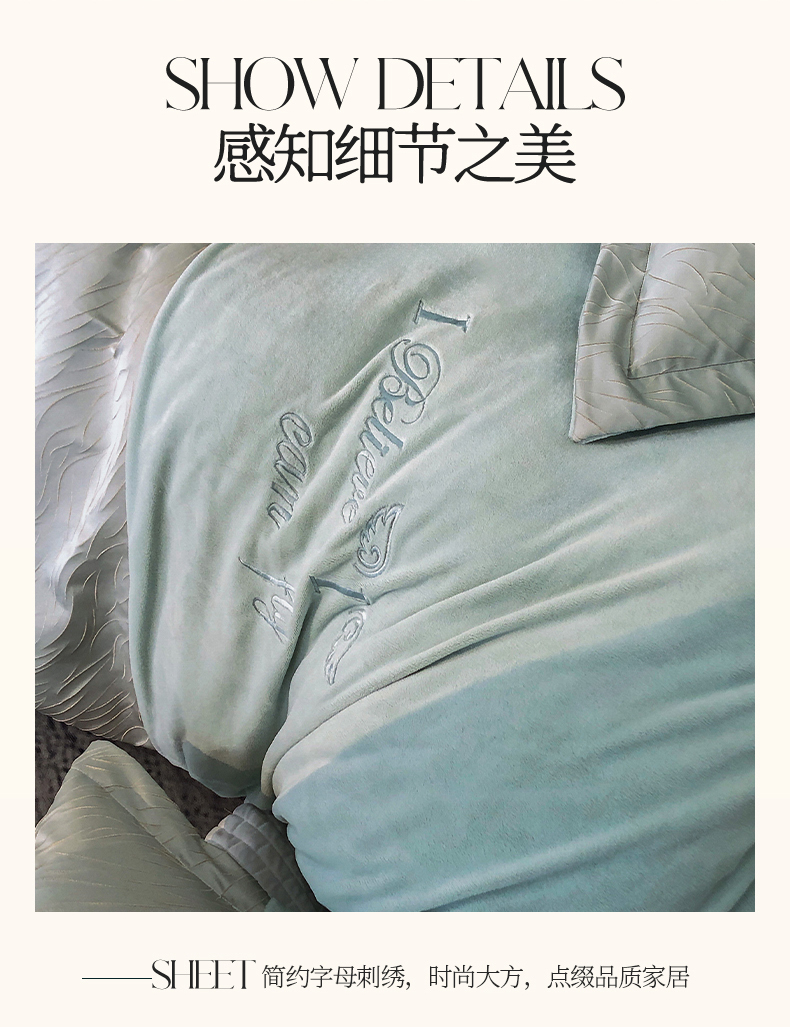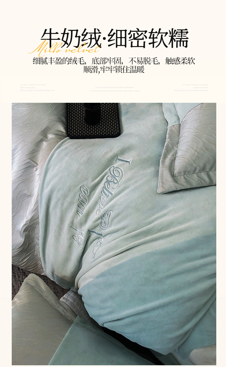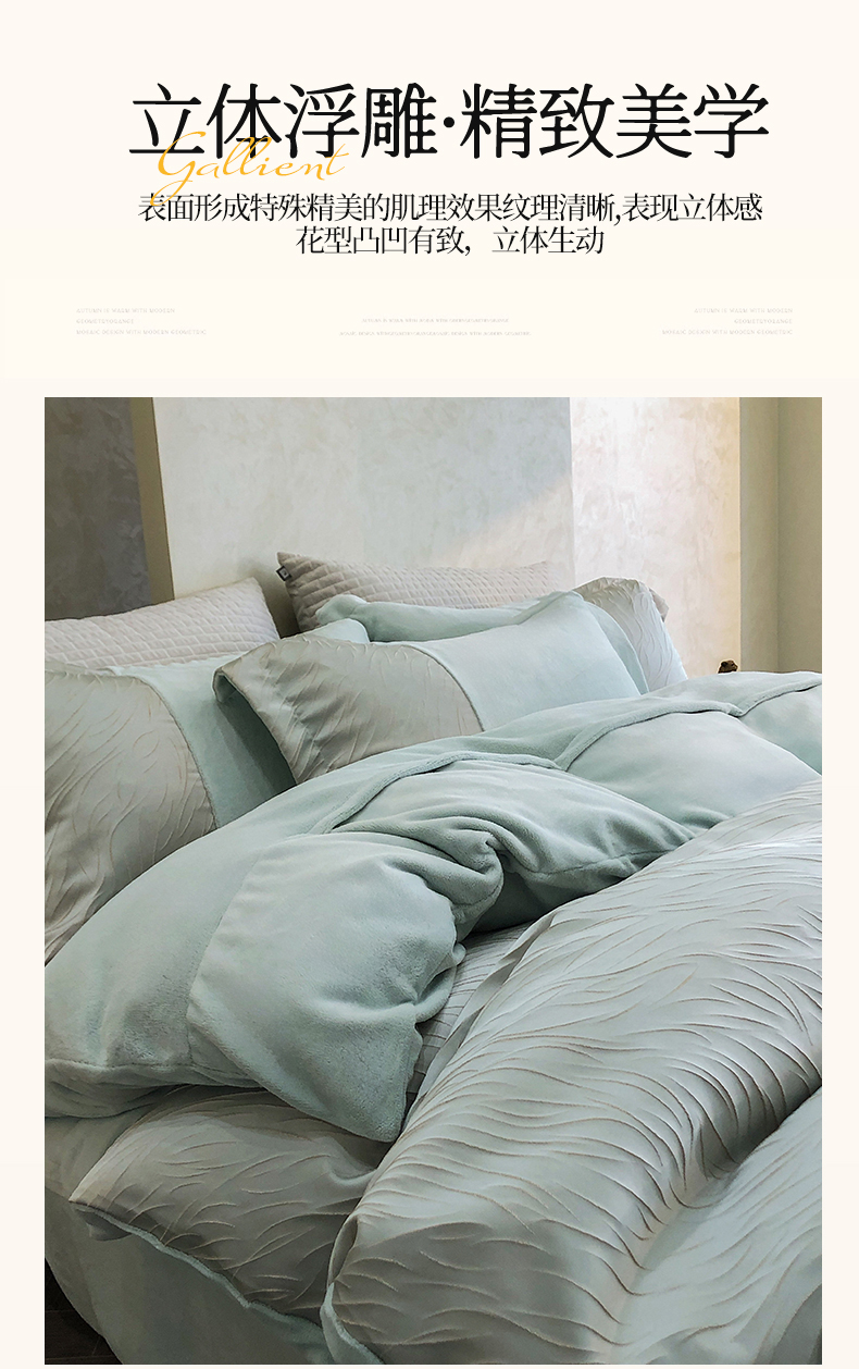 商品名称:换种生活 2025新款A类浮雕牛奶绒刺绣四件套 流动-绿