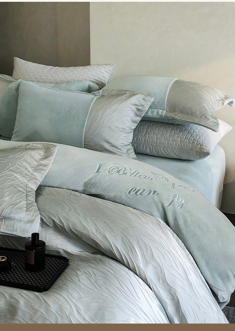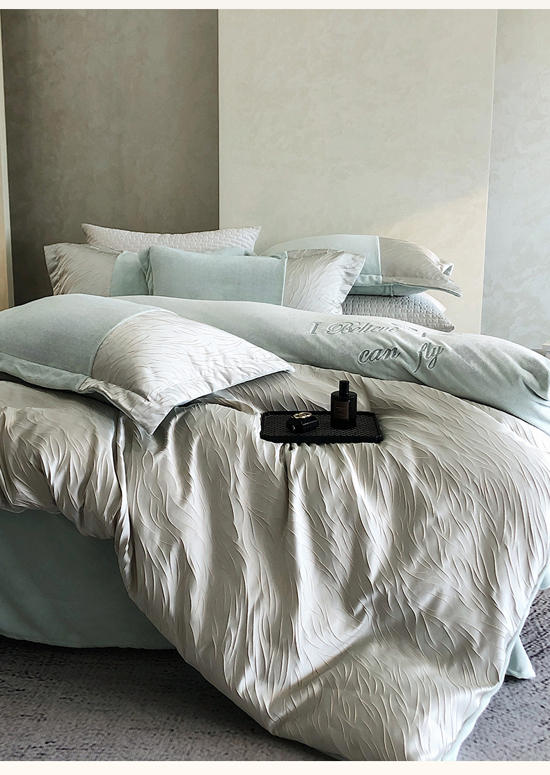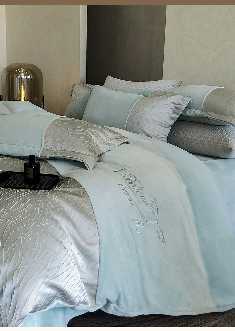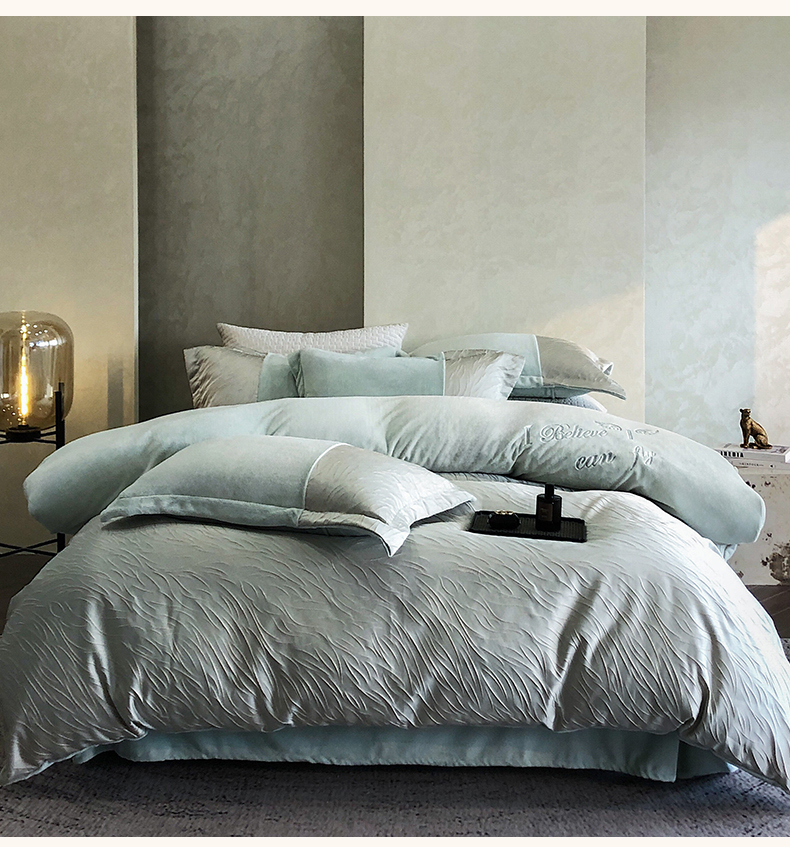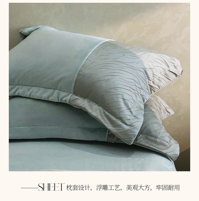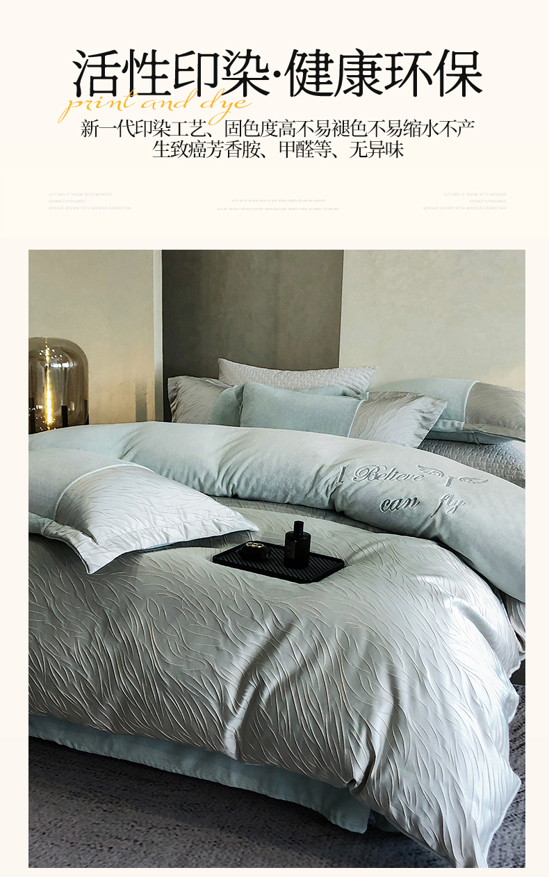 商品名称:换种生活 2025新款A类浮雕牛奶绒刺绣四件套 流动-绿