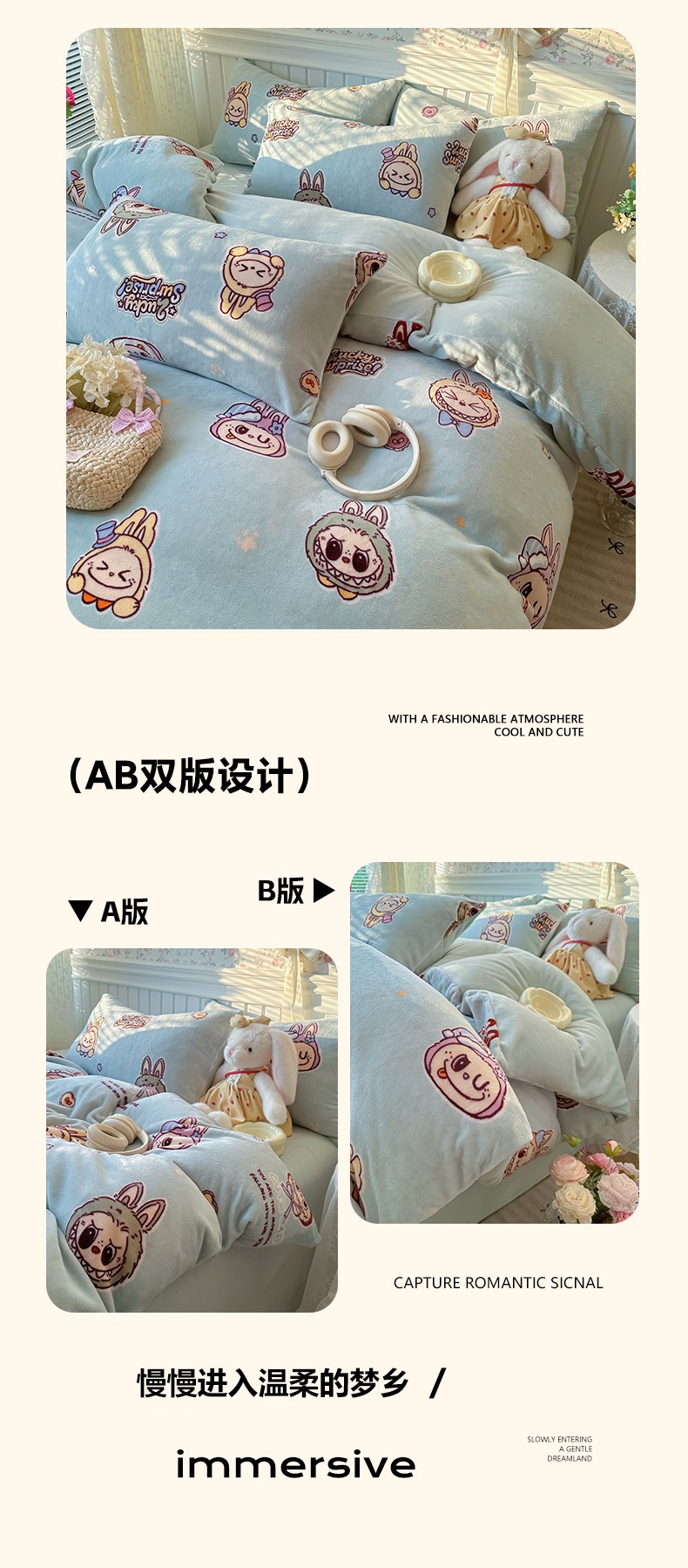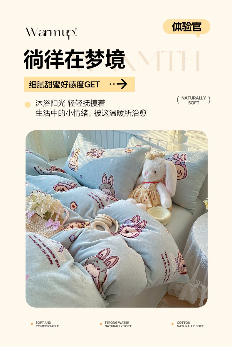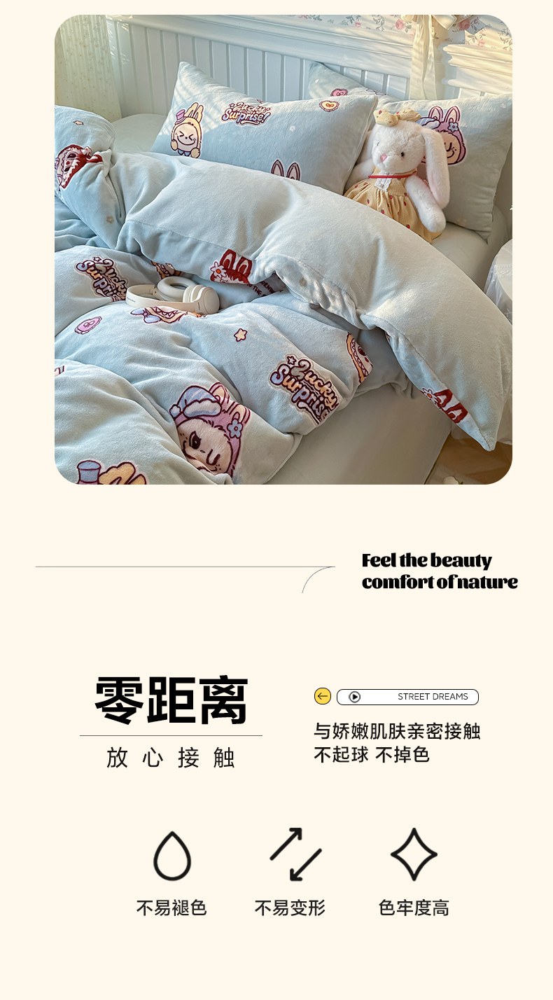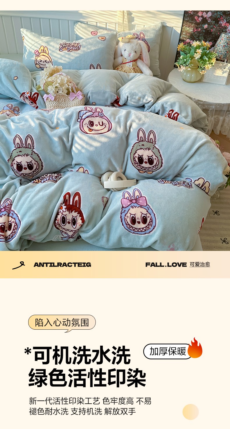 当前位置: 91家纺网 > 商品网购 > 床品套件 > 四件套 > 牛奶绒四件套 > 韩巢家纺 2025新款高克重印花牛奶绒床品四件套 拉布布