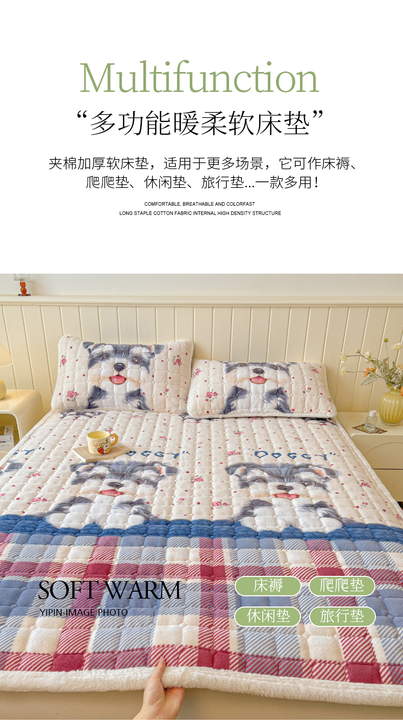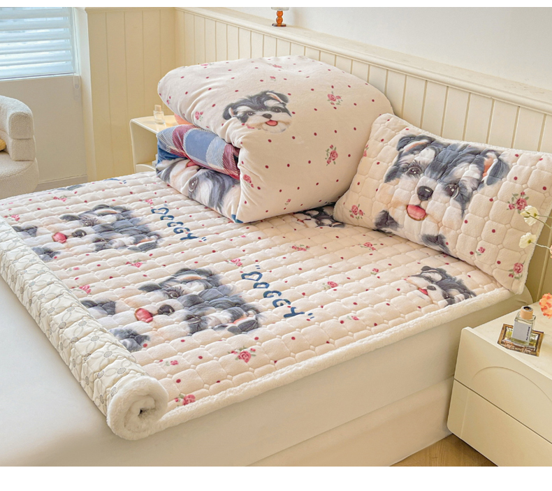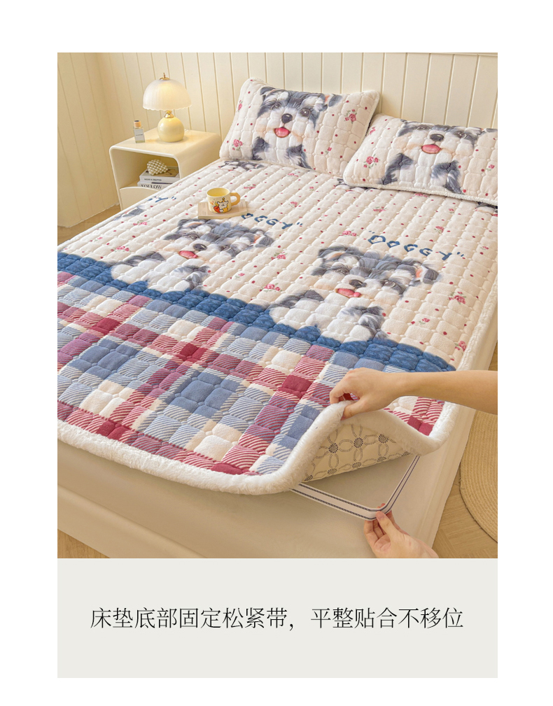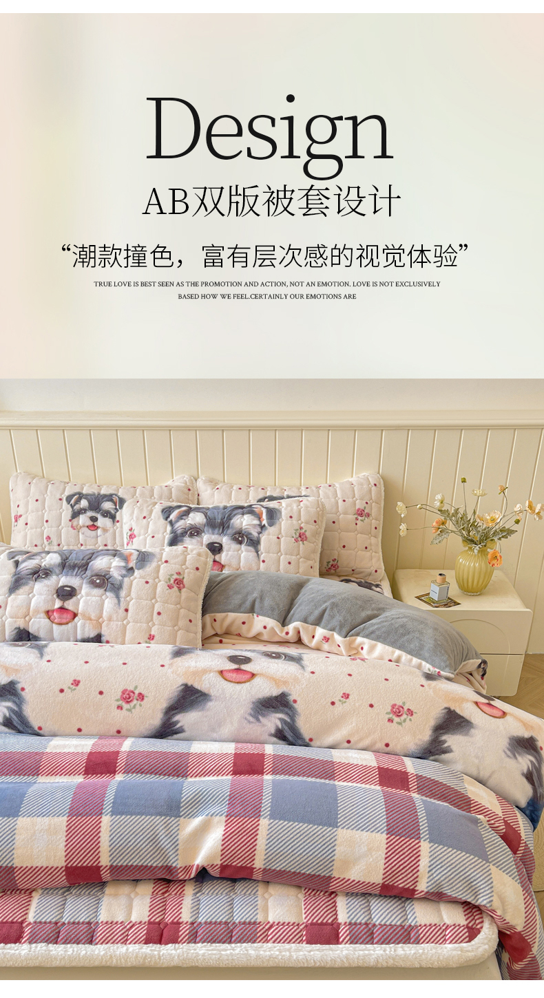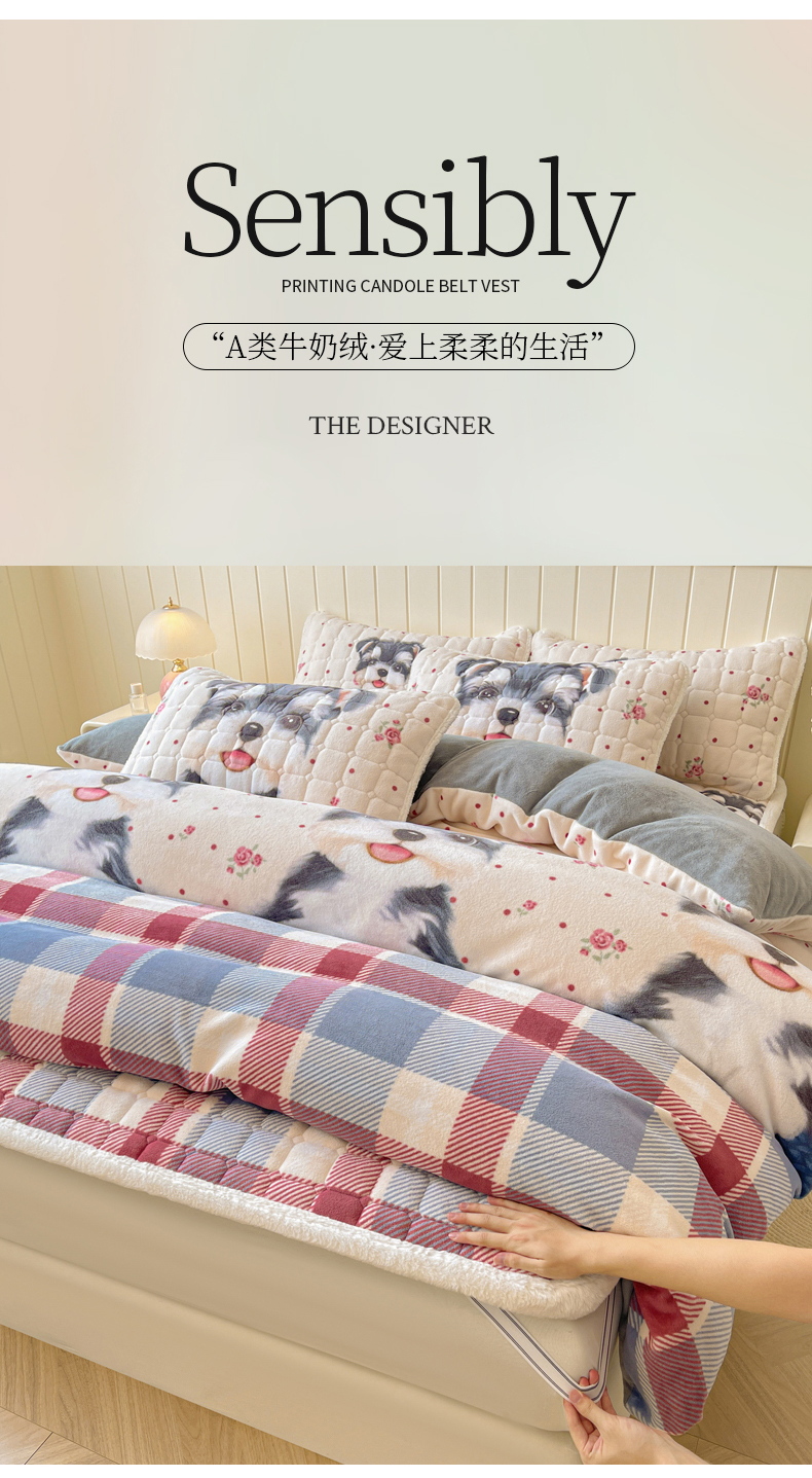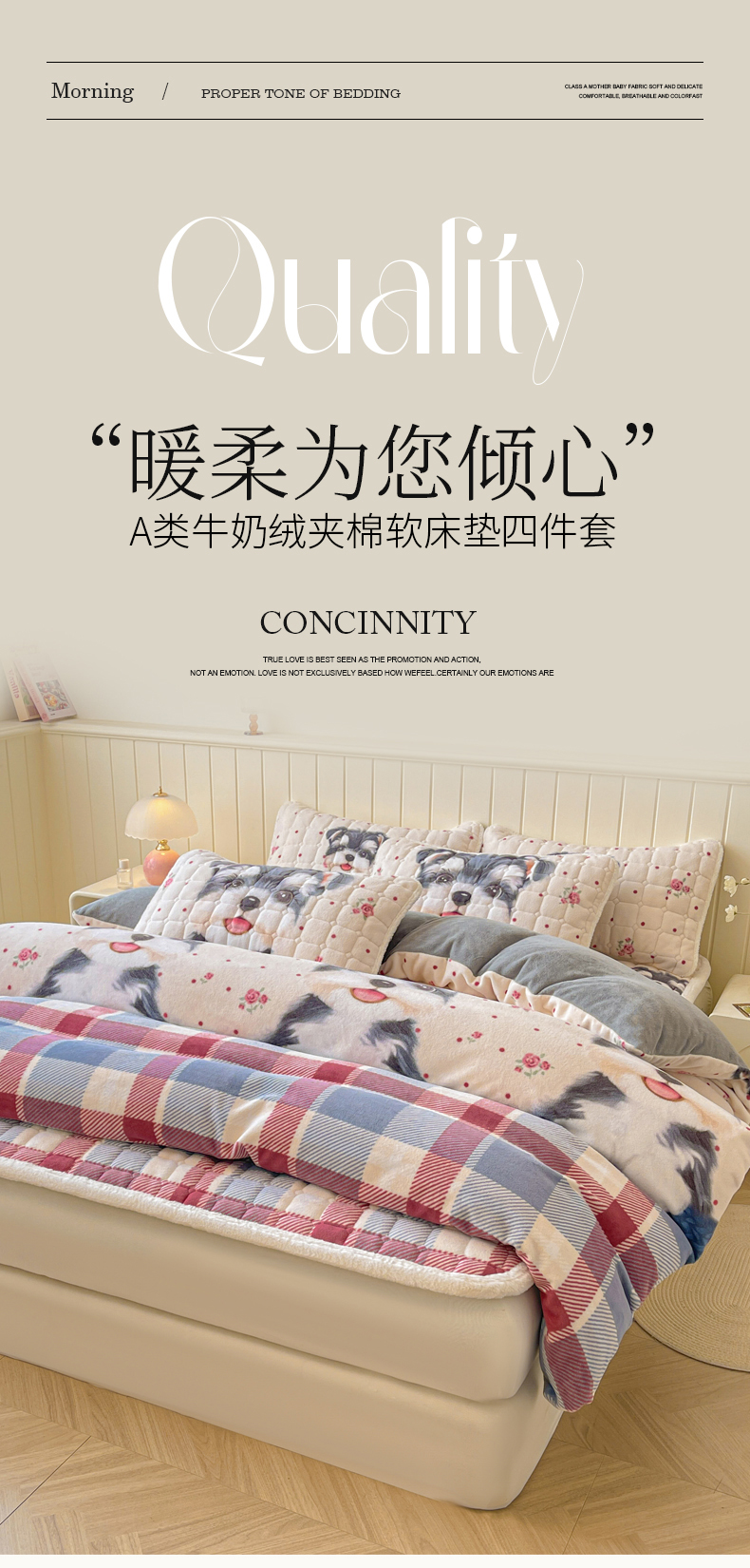 商品名称:LIFE.丽芙 2025秋冬新款A类牛奶绒加厚夹棉床褥垫+被套组合四件套 修狗
