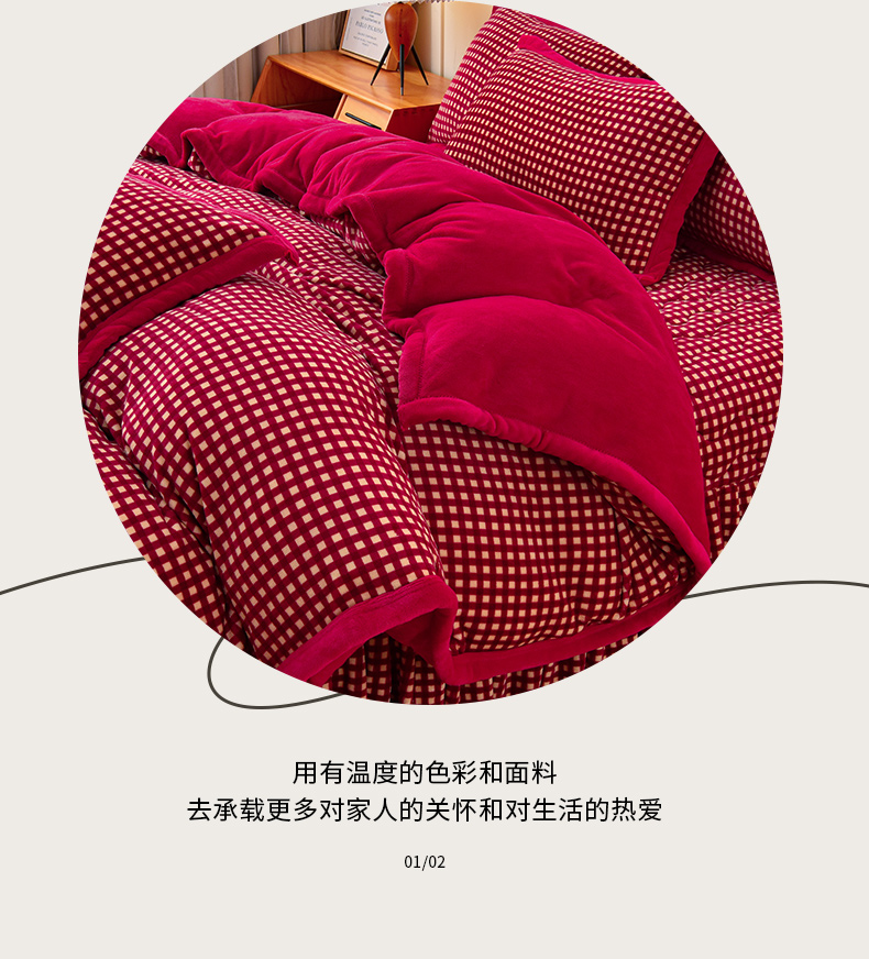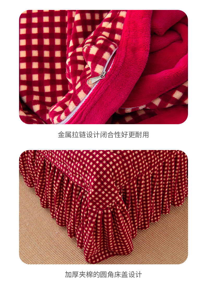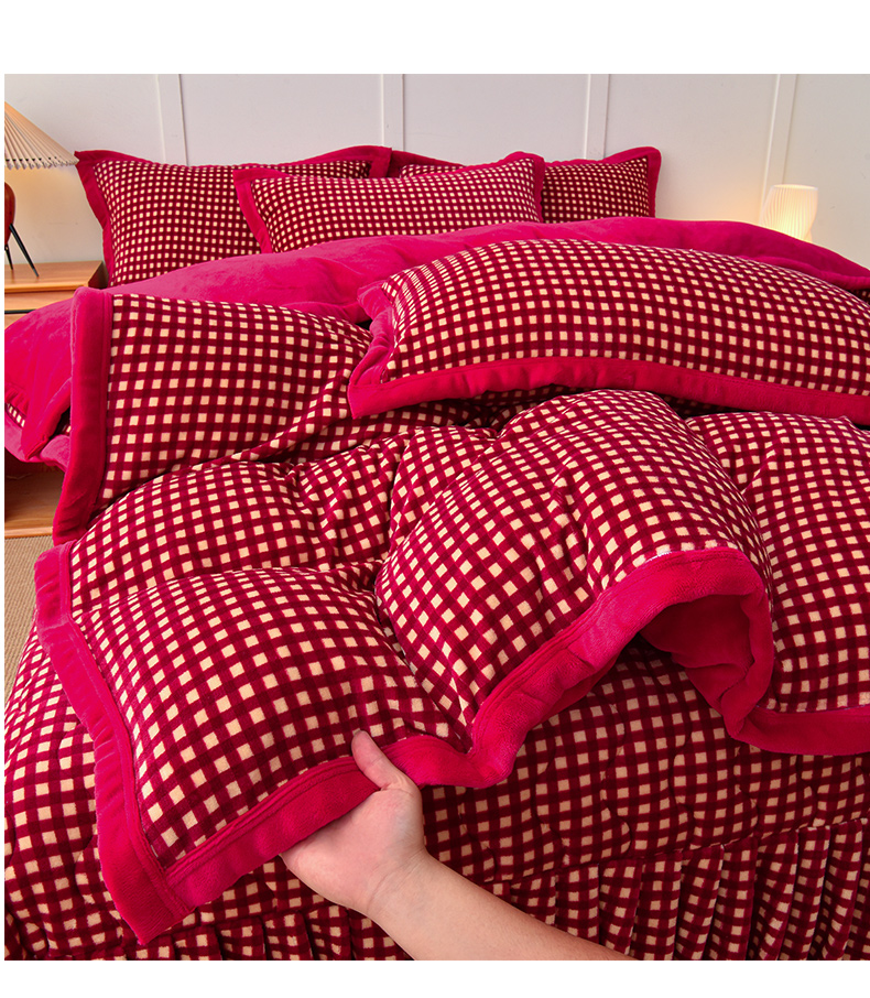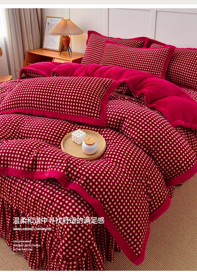 当前位置: 91家纺网 > 商品网购 > 床品套件 > 四件套 > 牛奶绒四件套 > 茉保家纺 2024新款无印风款牛奶绒床盖四件套 红小格
