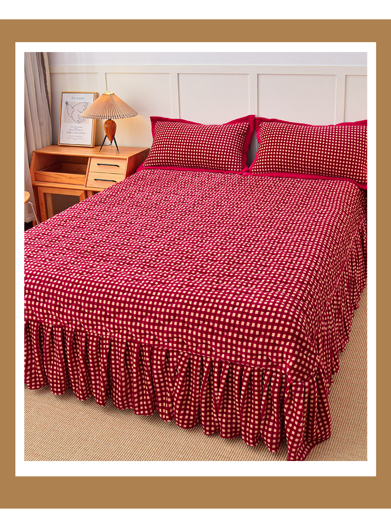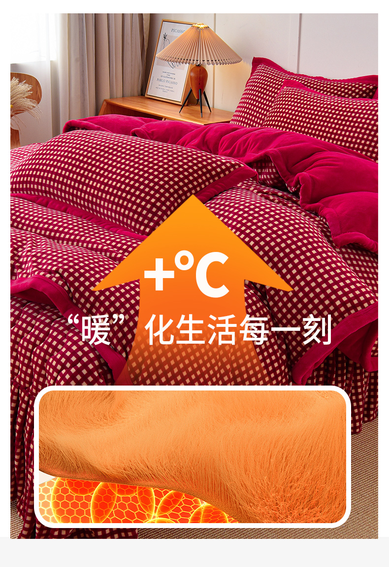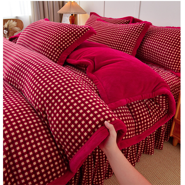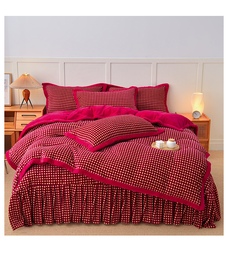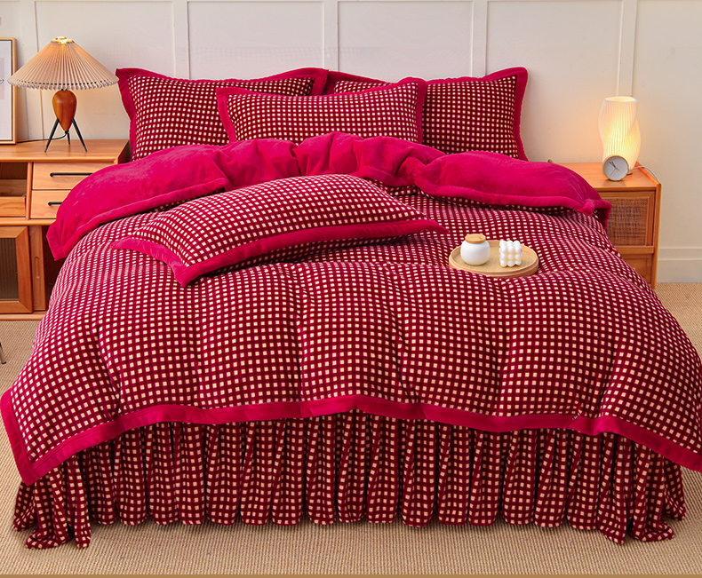 当前位置: 91家纺网 > 商品网购 > 床品套件 > 四件套 > 牛奶绒四件套 > 茉保家纺 2024新款无印风款牛奶绒床盖四件套 红小格