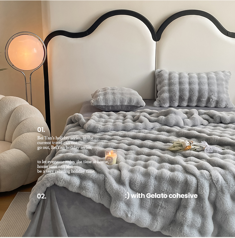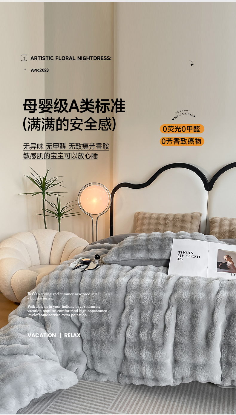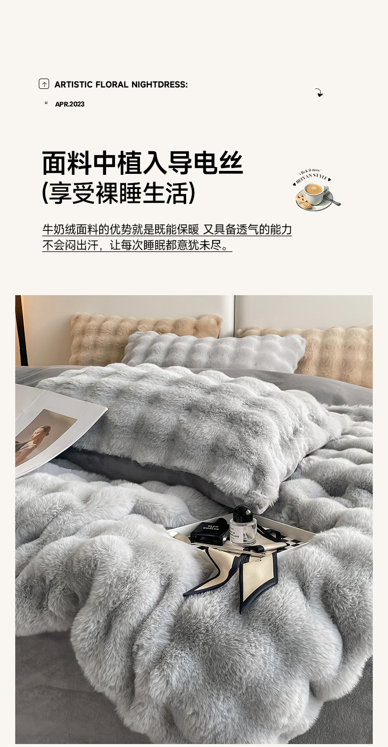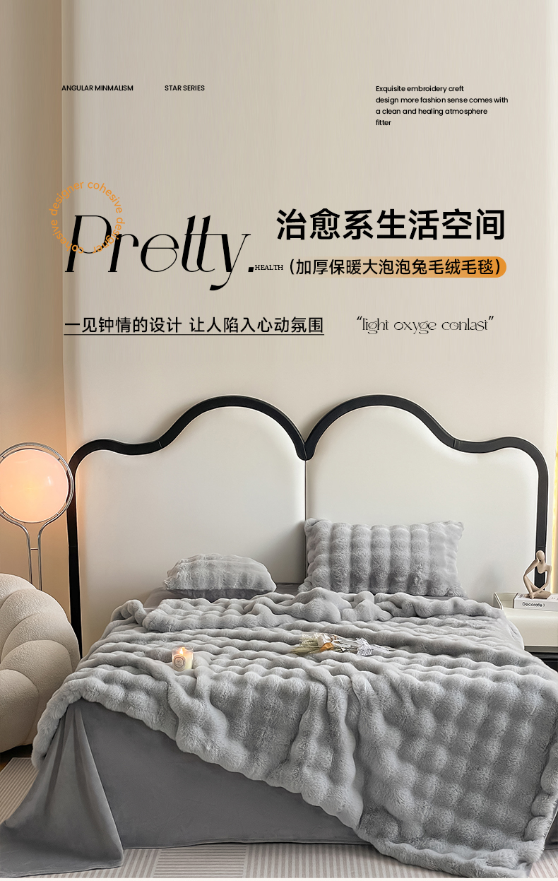 商品名称:大元 2025新款A类280g大泡泡兔毛绒多功能被套毯 极地灰