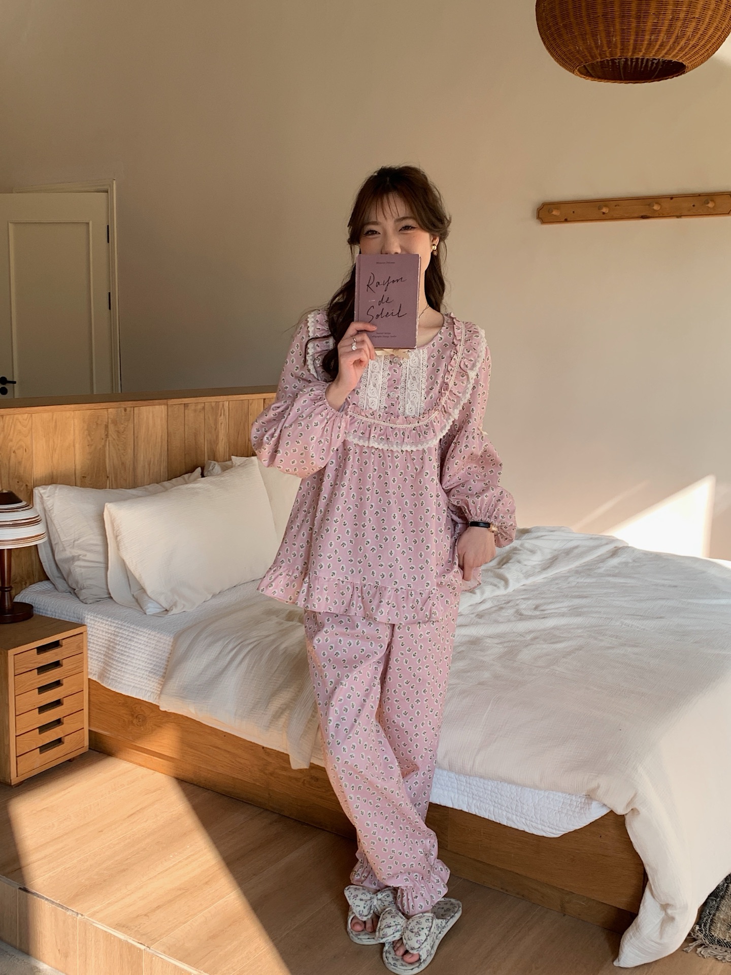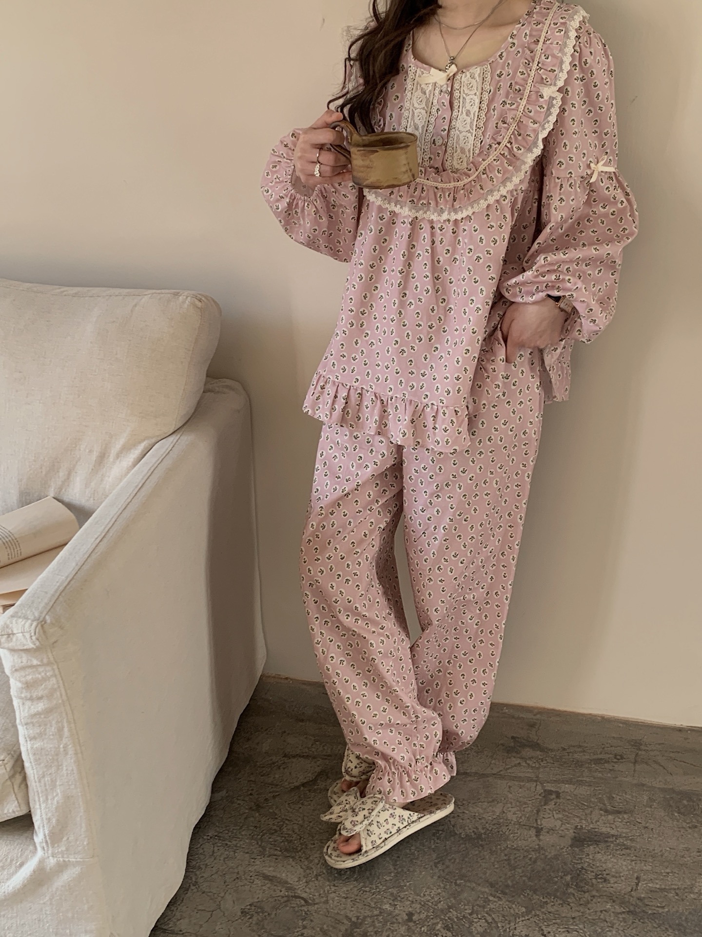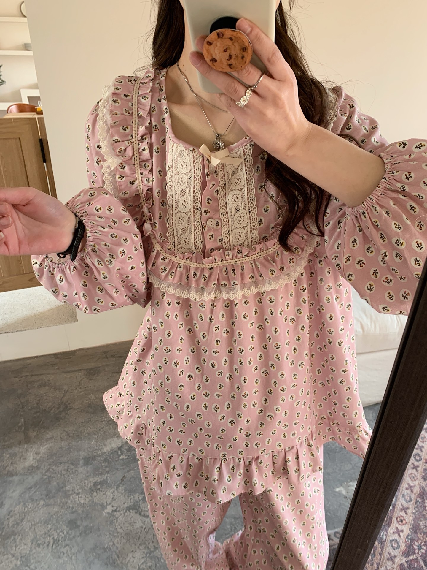 (总)妍景家居生活馆 2025新款韩系25012-韩系圆领碎花套装粉