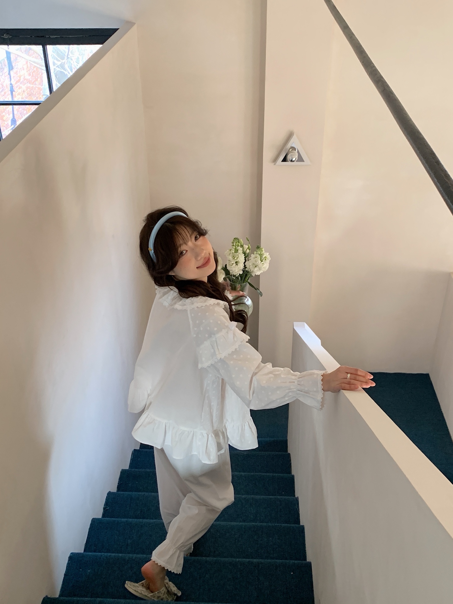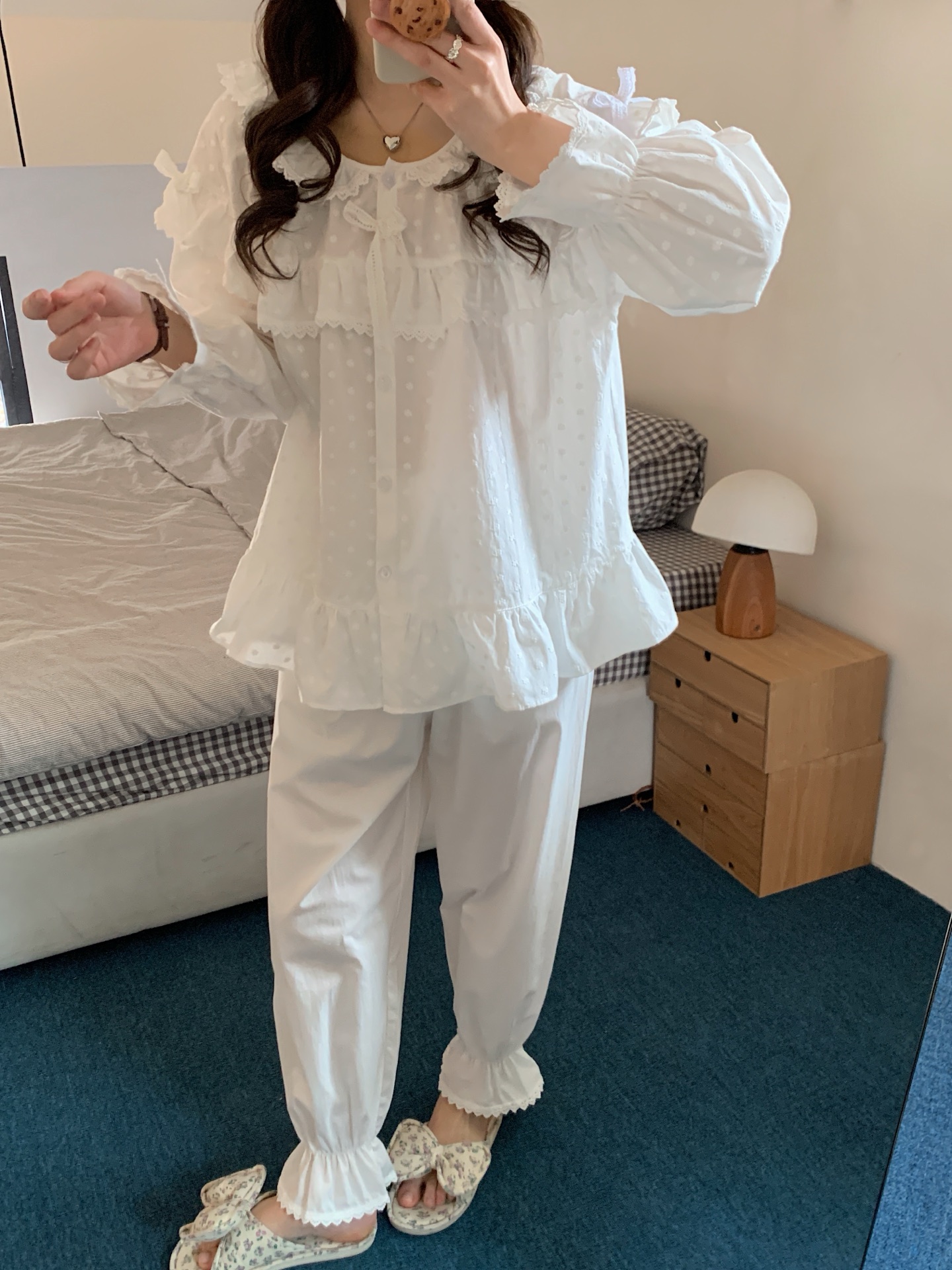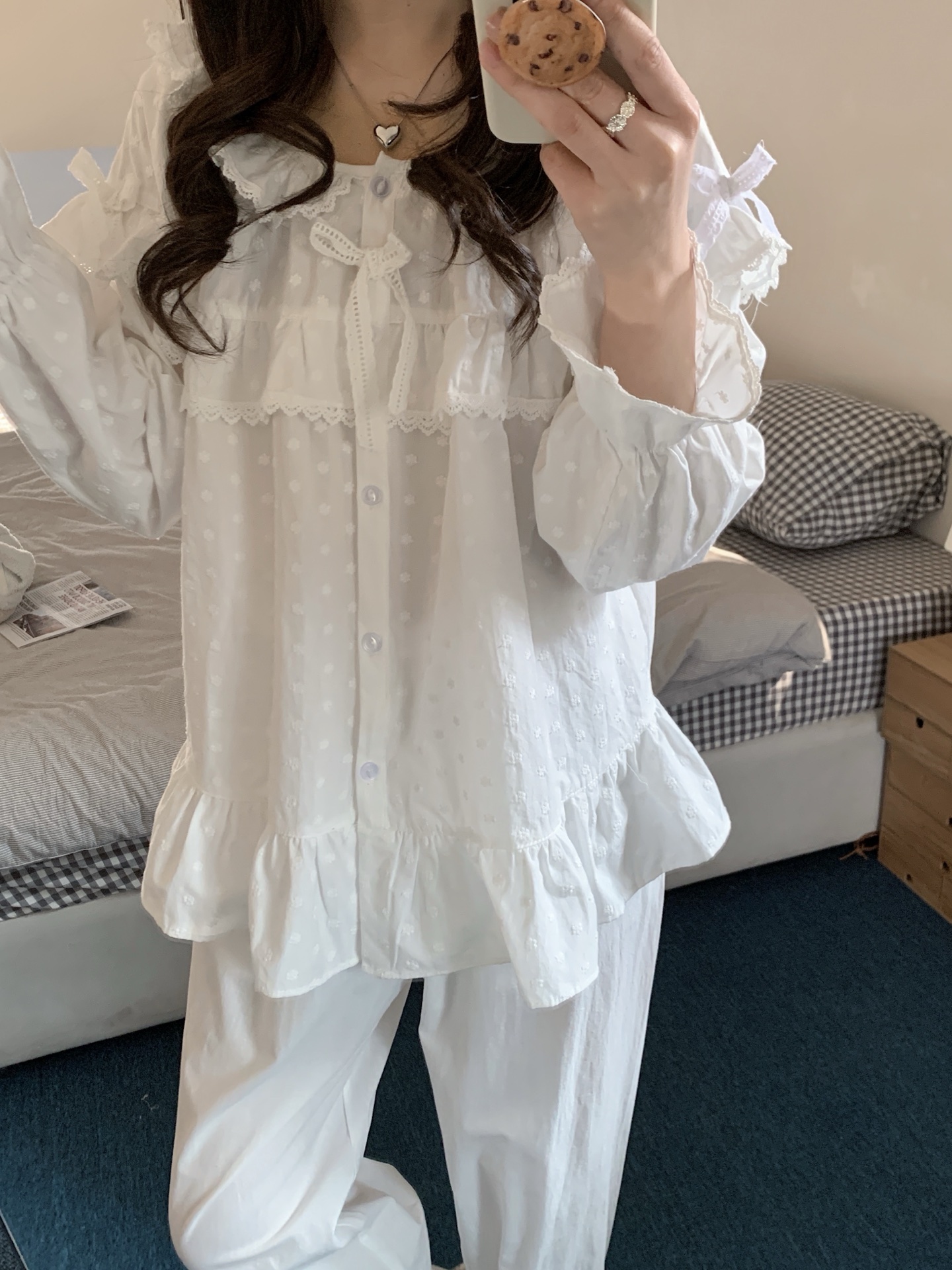 当前位置: 91家纺网 > 商品网购 > 居家日用 > 睡衣 > (总)妍景家居生活馆 2025新款韩系25058-韩系刺绣花边豆豆套装
