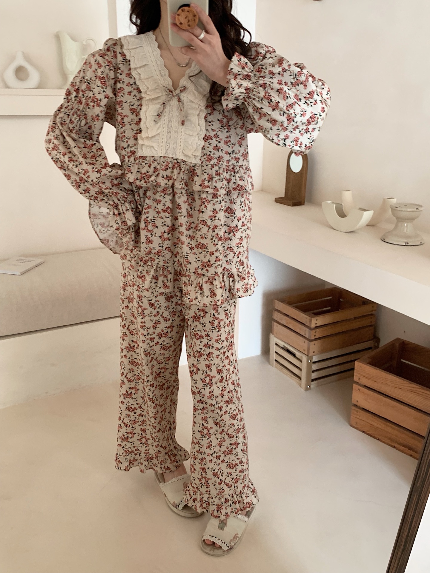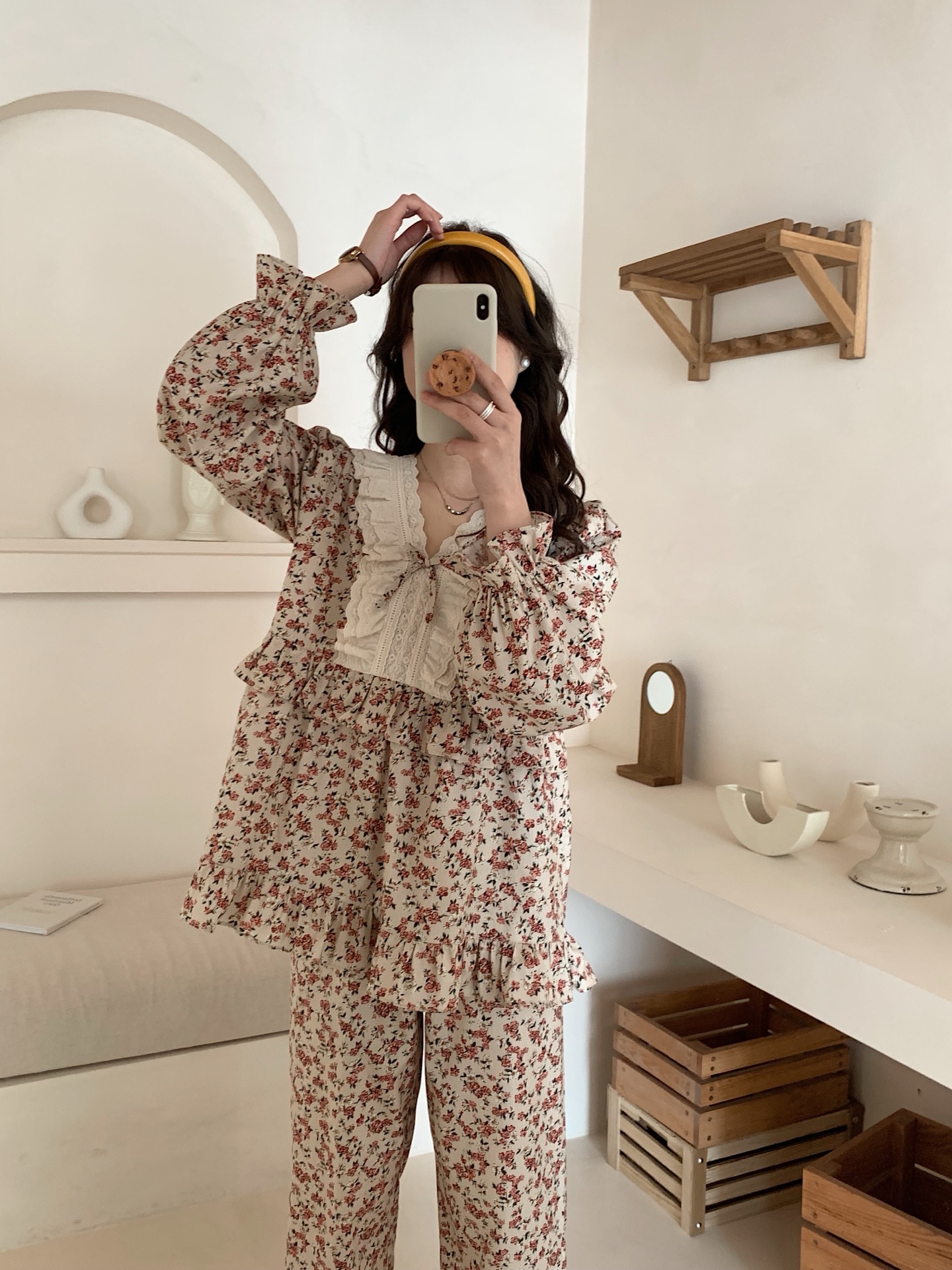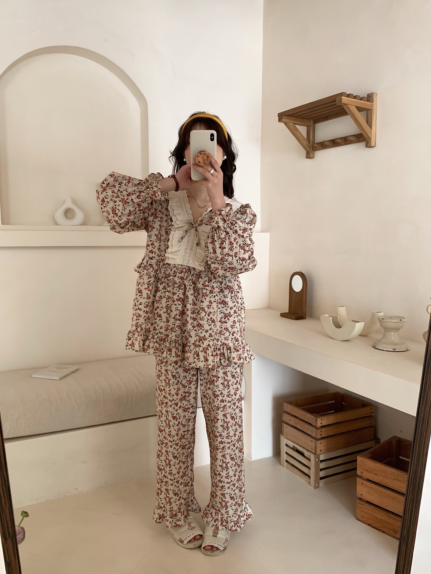 (总)妍景家居生活馆 2025新款韩系25063-韩系V领小碎花套装