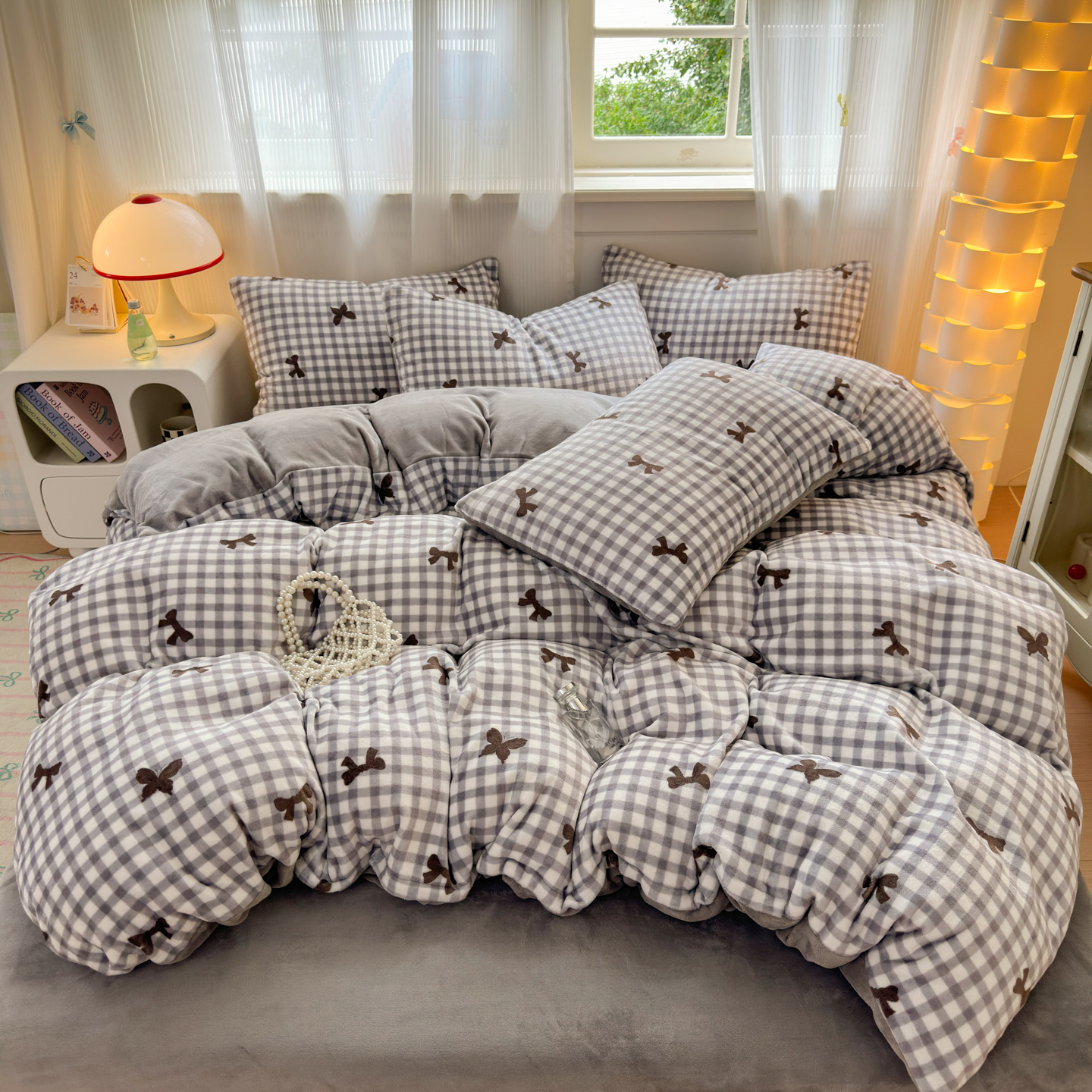 德比尔斯 2025新款暗合印花牛奶绒四件套 蝴蝶结-灰