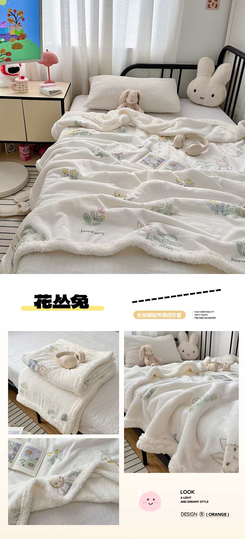 商品名称:航途席业 2025新款200g牛奶绒羊羔绒毛毯 牛角包小熊