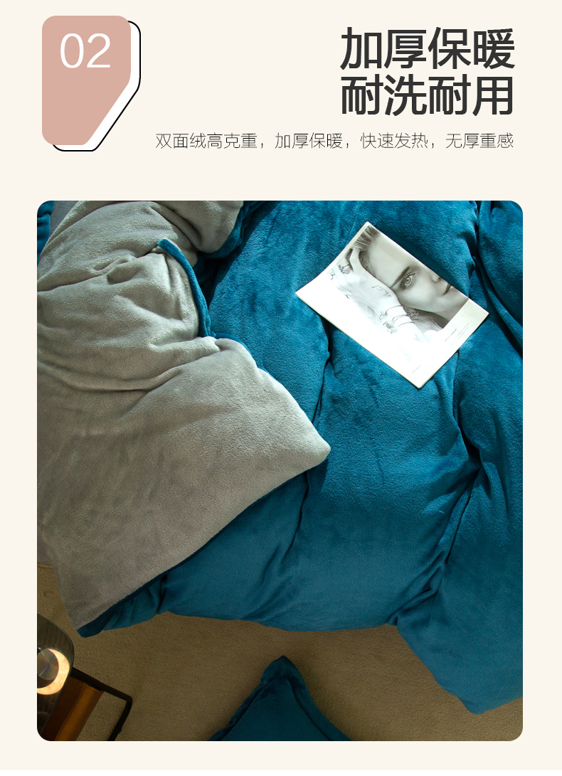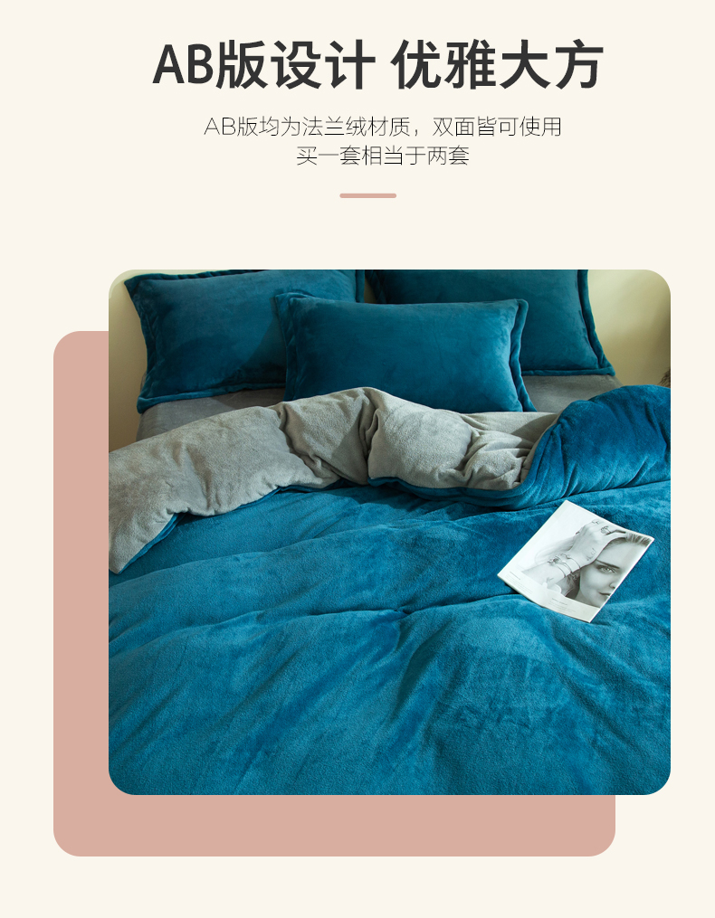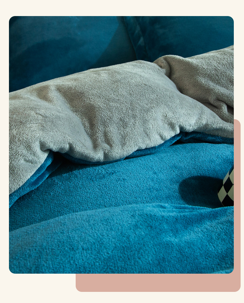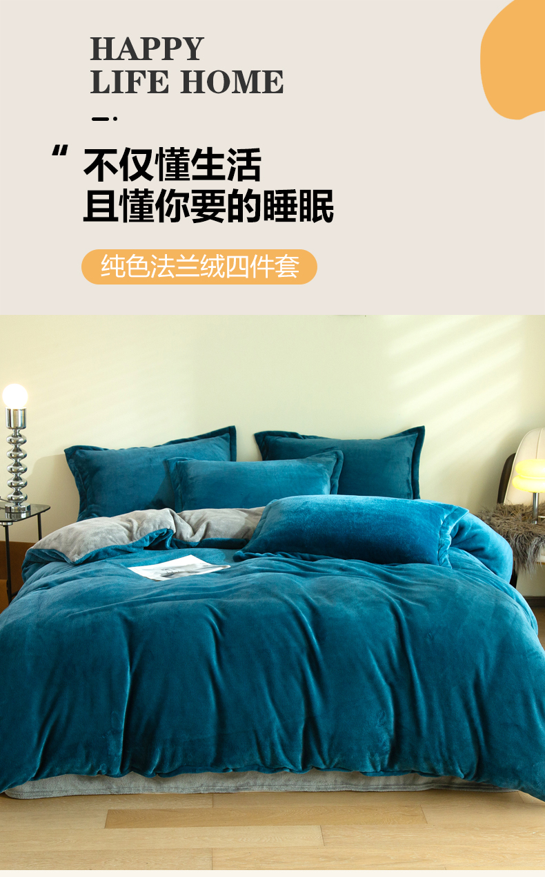 当前位置: 91家纺网 > 商品网购 > 床品套件 > 四件套 > 牛奶绒四件套 > 兰紫橙家纺 2025新款双面绒纯色双拼牛奶绒四件套 孔雀蓝+浅灰