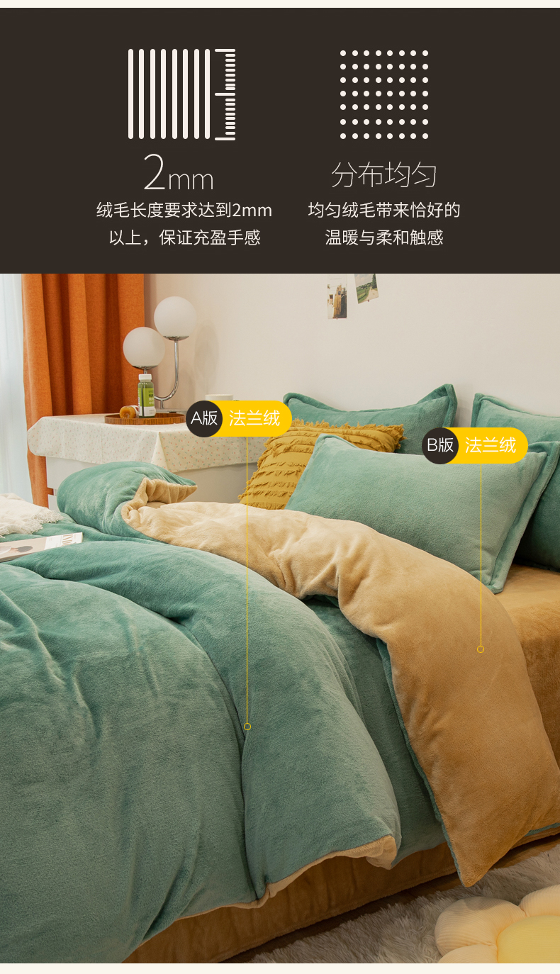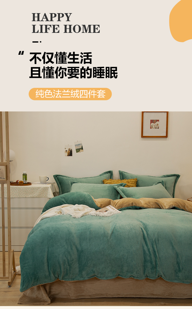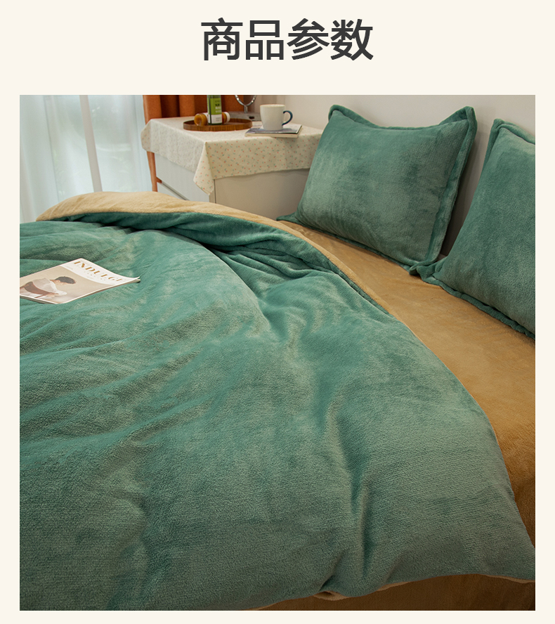 当前位置: 91家纺网 > 商品网购 > 床品套件 > 四件套 > 牛奶绒四件套 > 兰紫橙家纺 2025新款双面绒纯色双拼牛奶绒四件套 竹青+驼色
