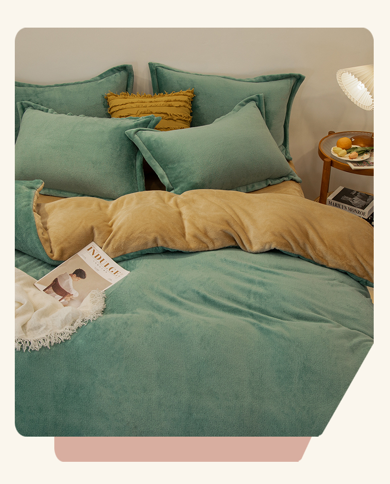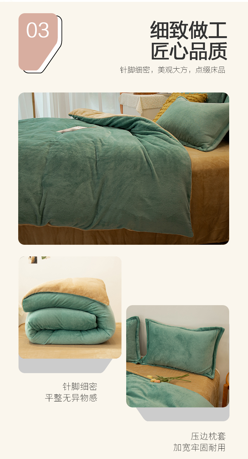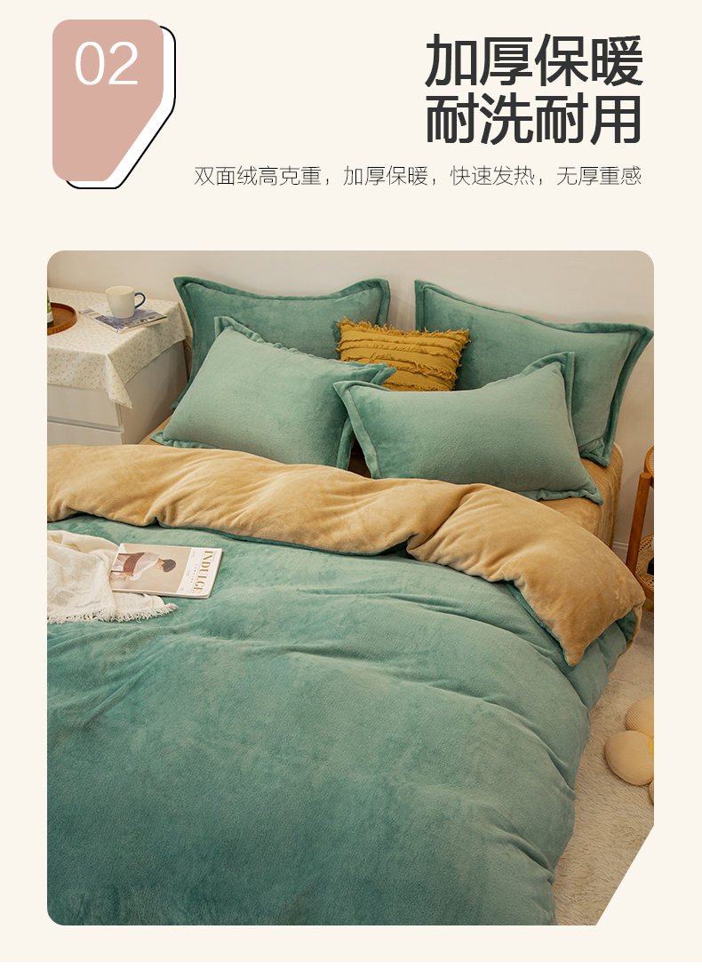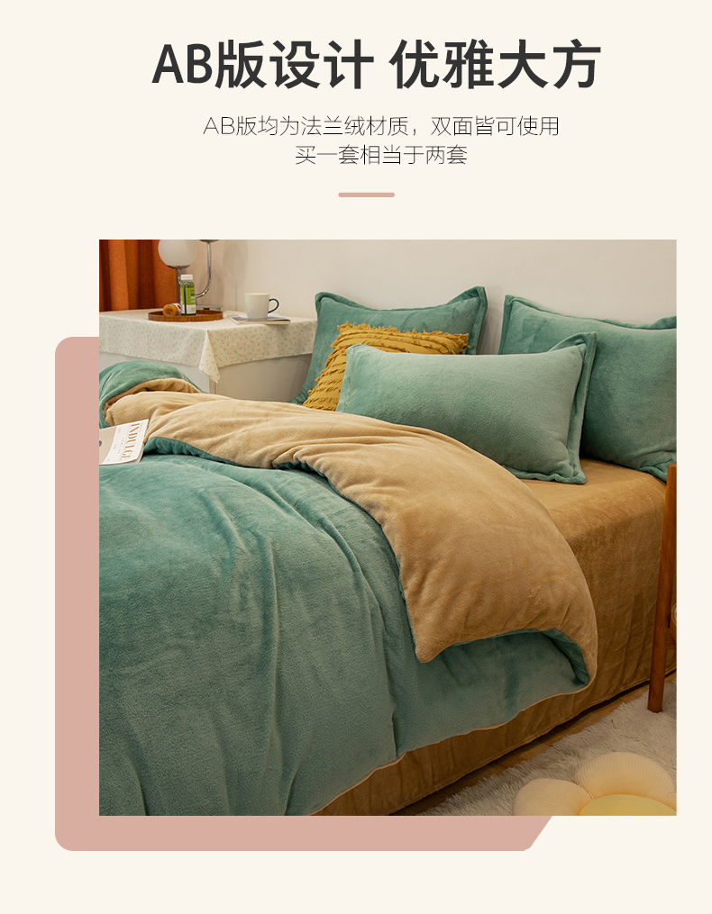 当前位置: 91家纺网 > 商品网购 > 床品套件 > 四件套 > 牛奶绒四件套 > 兰紫橙家纺 2025新款双面绒纯色双拼牛奶绒四件套 竹青+驼色