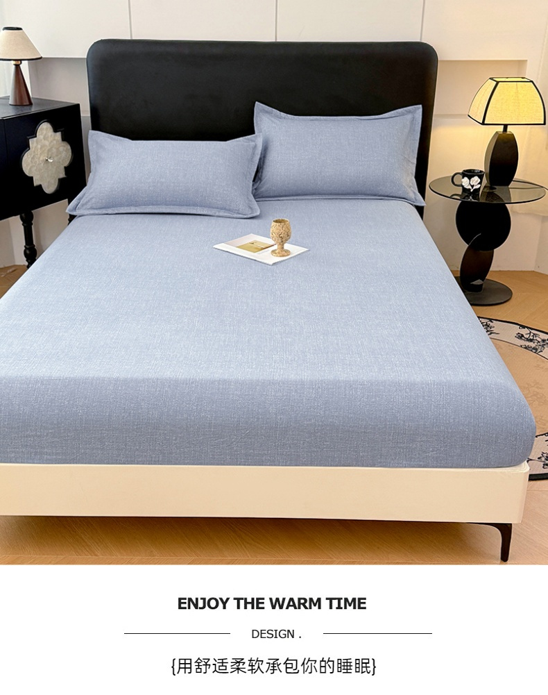 圣比熊 2025新款原麻床笠机洗家用防滑透气四季款床罩床垫床单保护套 帝都蓝