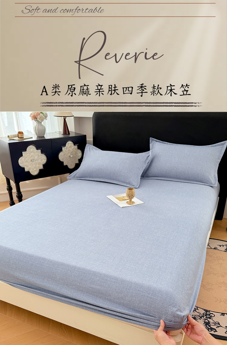 • 91家纺网 家纺一手货源 找家纺 圣比熊 2025新款原麻床笠机洗家用防滑透气四季款床罩床垫床单保护套 帝都蓝